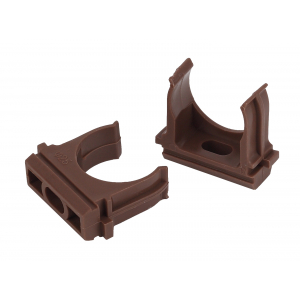 Используется для крепления гофрированных и гладких труб к поверхности стен или потолка. Для крепления к поверхности в крепёж-клипсе предусмотрено технологическое отверстие под саморез или дюбель.