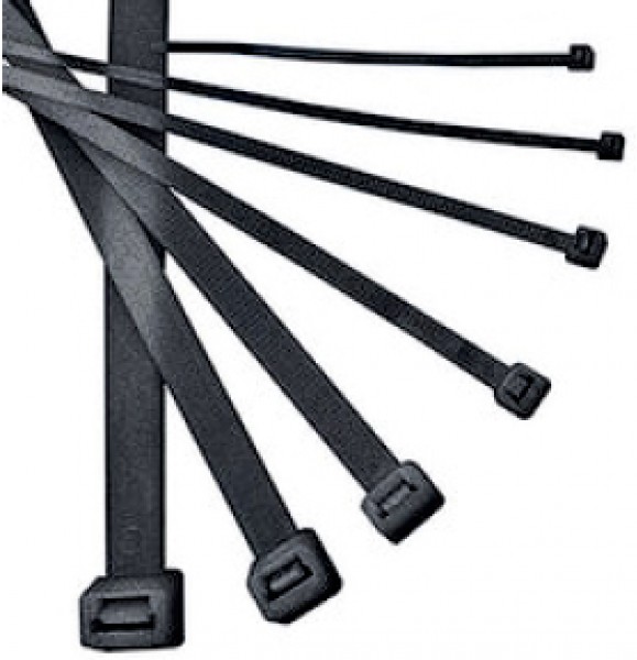 Нейлоновой хомут предназначен для увязки кабелей и проводов в пучок при монтаже кабельных линий, также применяется для крепления и соединения между собой различных предметов при ремонтных и электромонтажных работах. Изготовлен хомут из нейлона 6.6, который обладает высокой устойчивостью к маслам, смазкам, масляным производным, хлоридным растворителям, устойчивостью к слабым кислотам. При производстве хомутов черного цвета добавляется угольный порошок, он улучшает физические свойства стяжке в сто
