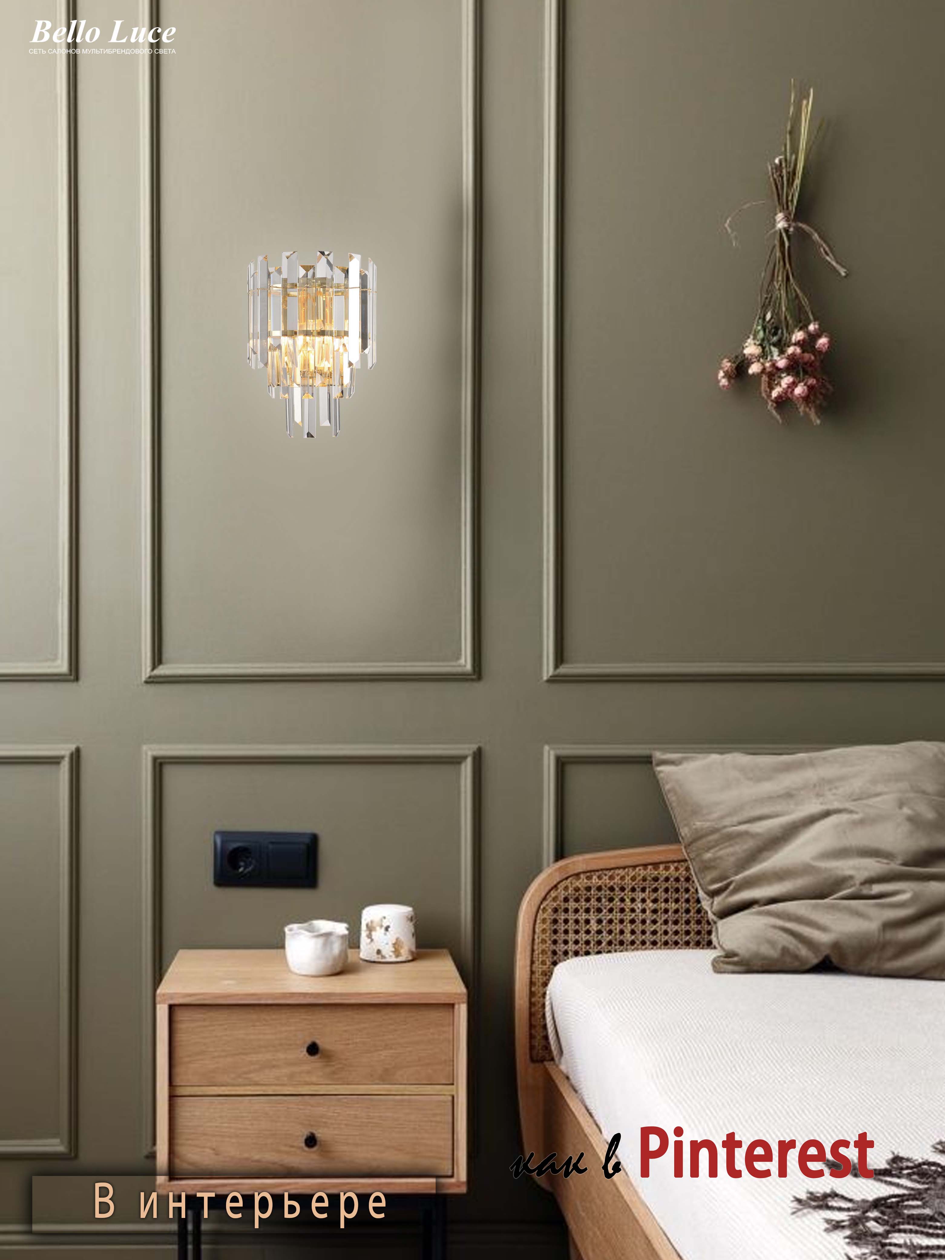 Настенный светильник станет отличным решением для создания уютной атмосферы в вашем интерьере. Изумительный хрусталь и элегантная отделка придают элементам роскоши и изысканности, делая его привлекательным акцентом любого помещения.