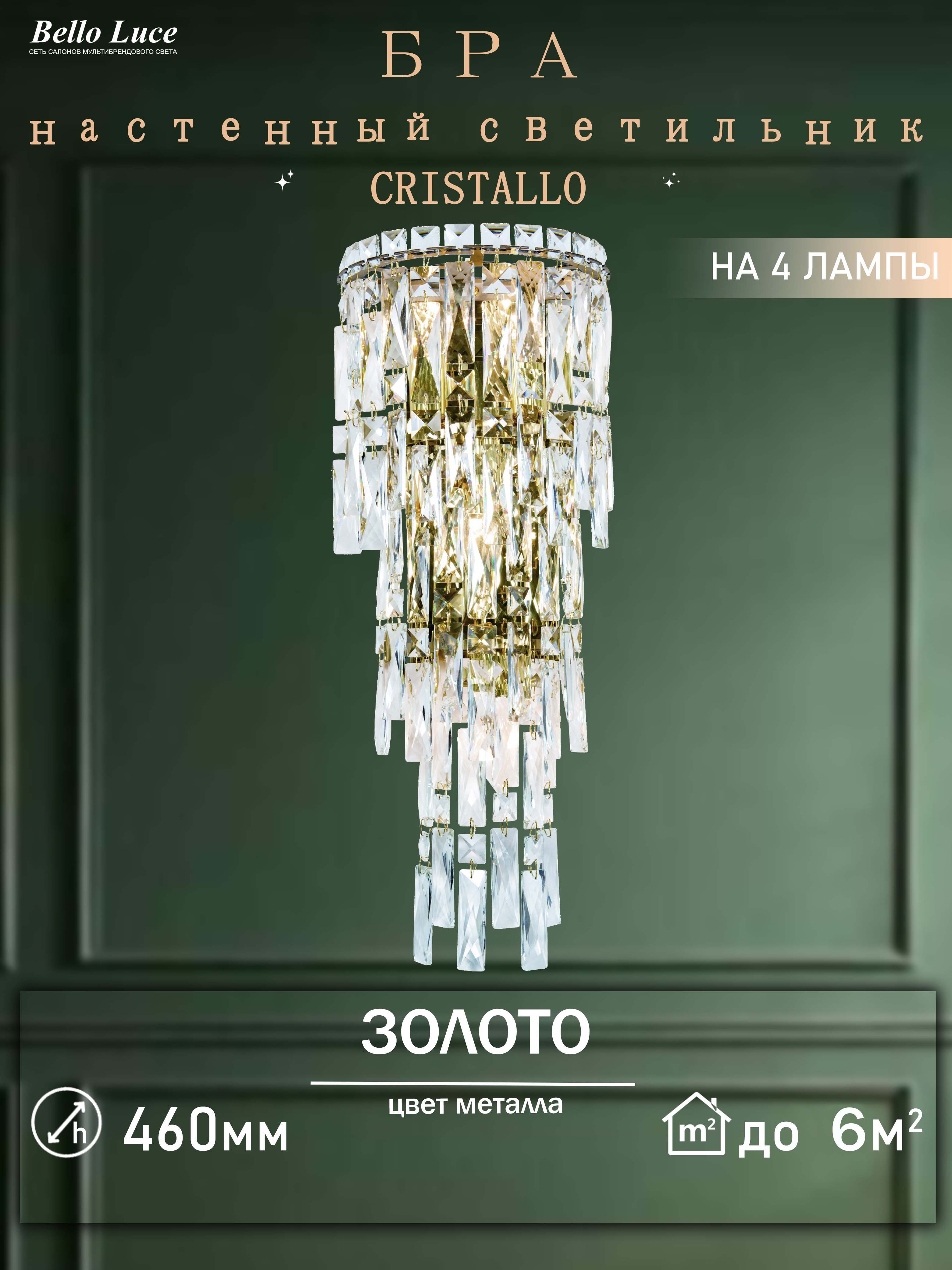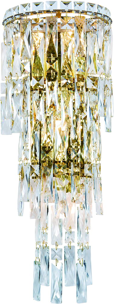 Компания Мегасвет предлагает вам оптом и в розницу Светильник Cristallo хрустальный золото настенный с прозрачными хрустальными подвесками бра на 4 лампы E14 по цене 8280 рублей.