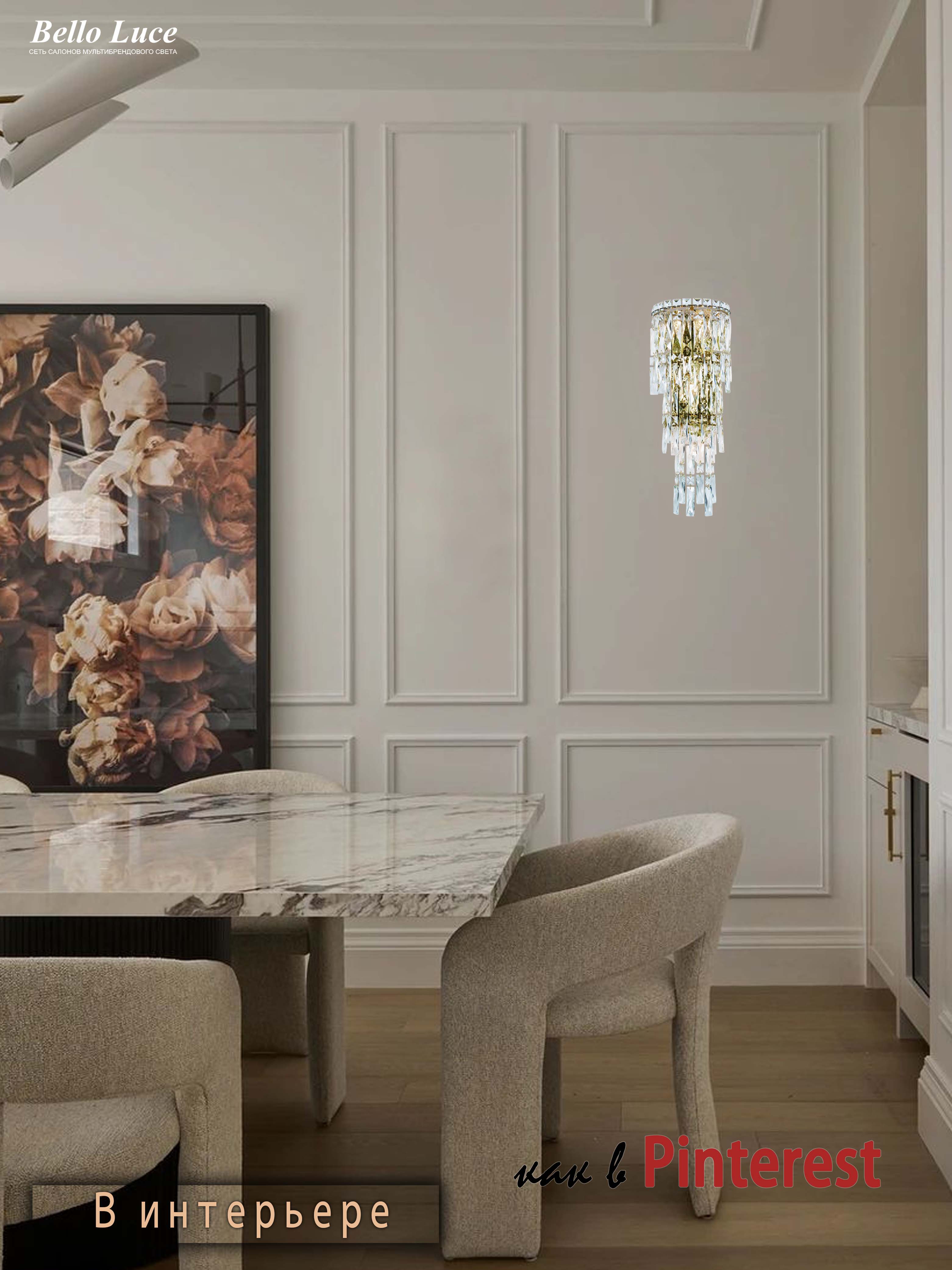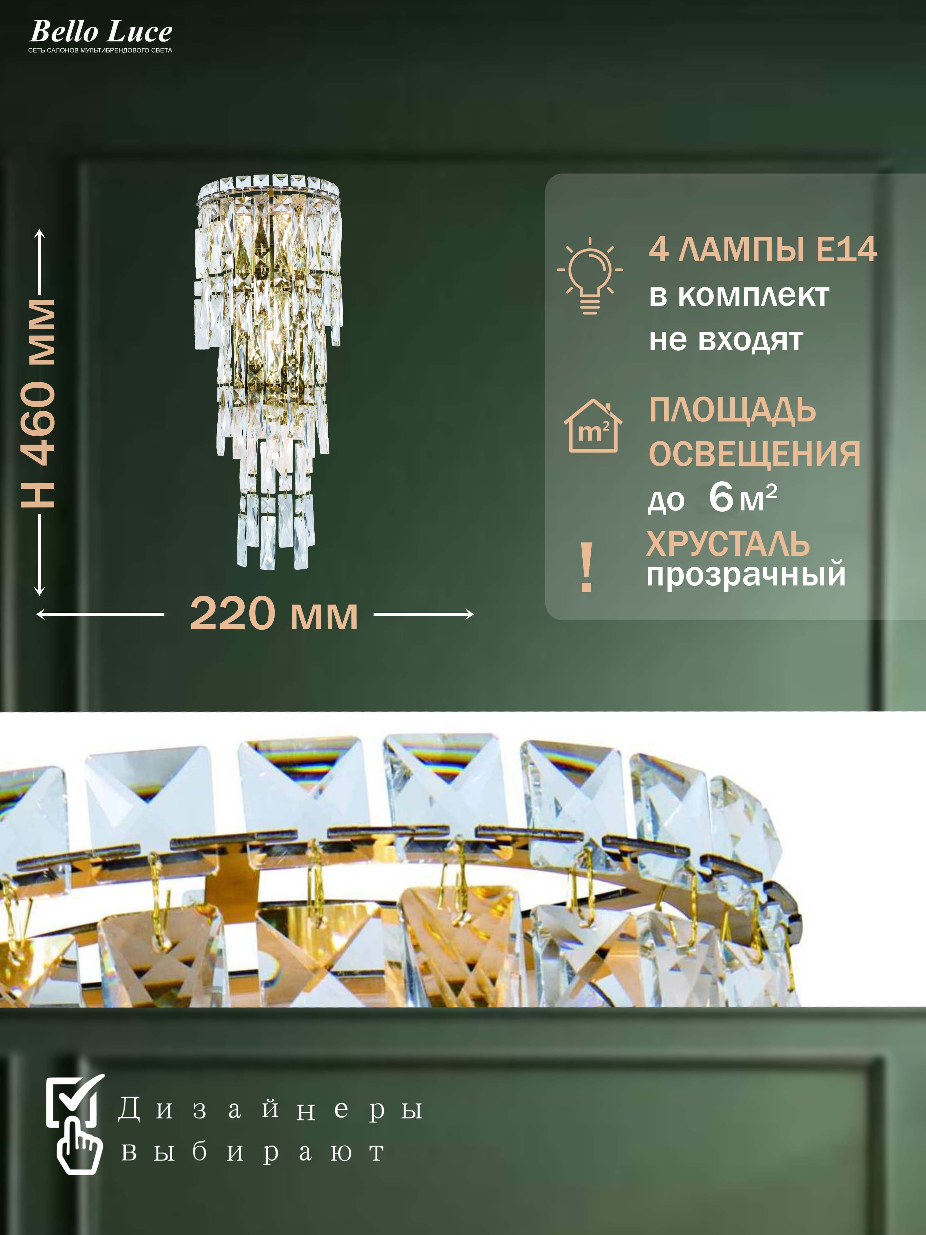 Представляем вашему вниманию элегантный хрустальный настенный светильник, это идеальный выбор для тех, кто ценит современный и стильный дизайн в интерьере. Изумительный хрусталь и элегантная отделка придают элементам роскоши и изысканности, делая его привлекательным акцентом любого помещения.