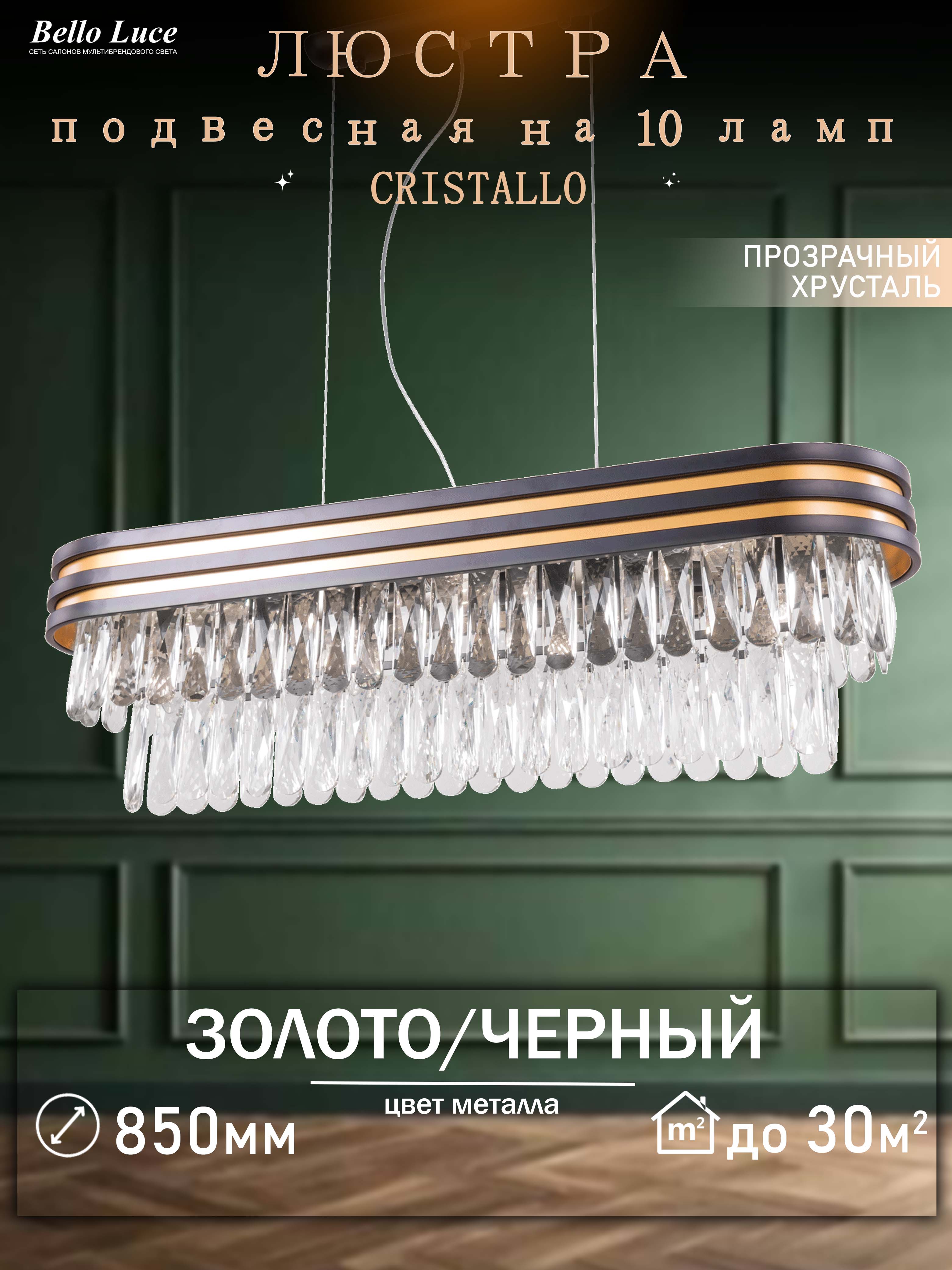 Компания Мегасвет предлагает вам оптом и в розницу Люстра Cristallo хрустальная подвесная овальная золото+черный с прозрачными хрустальными подвесками на 10 ламп E14, регулировка по высоте по цене 22110 рублей.