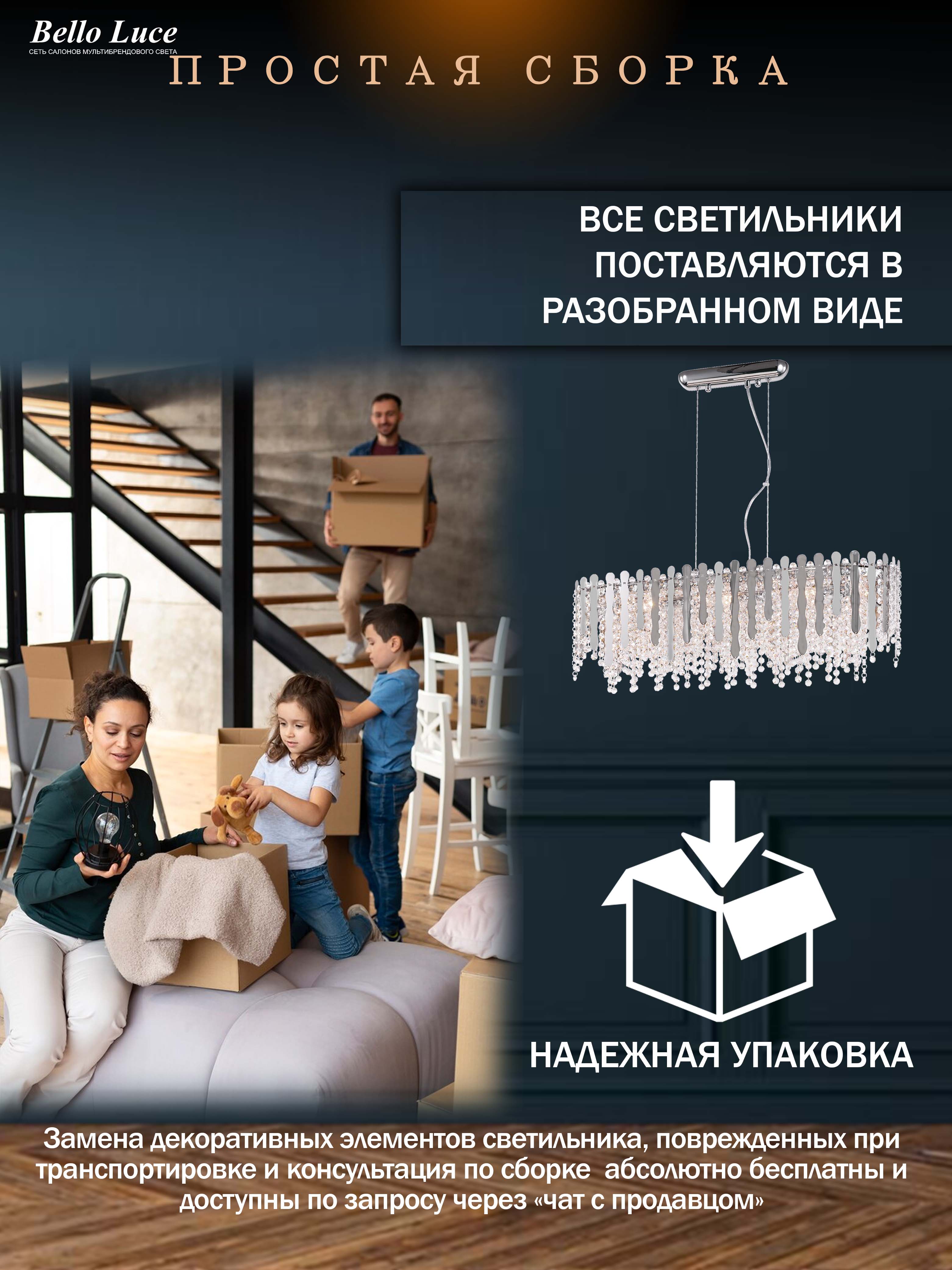 Благодаря своему лаконичному дизайну, люстра будет прекрасно смотреться как в гостиной, так и в спальне или кухне. Она не только освещает пространство, но и выступает в роли художественного элемента, способного преобразить любой уголок вашего дома. Она станет отличным дополнением к современному интерьеру, придавая ему завершенность.