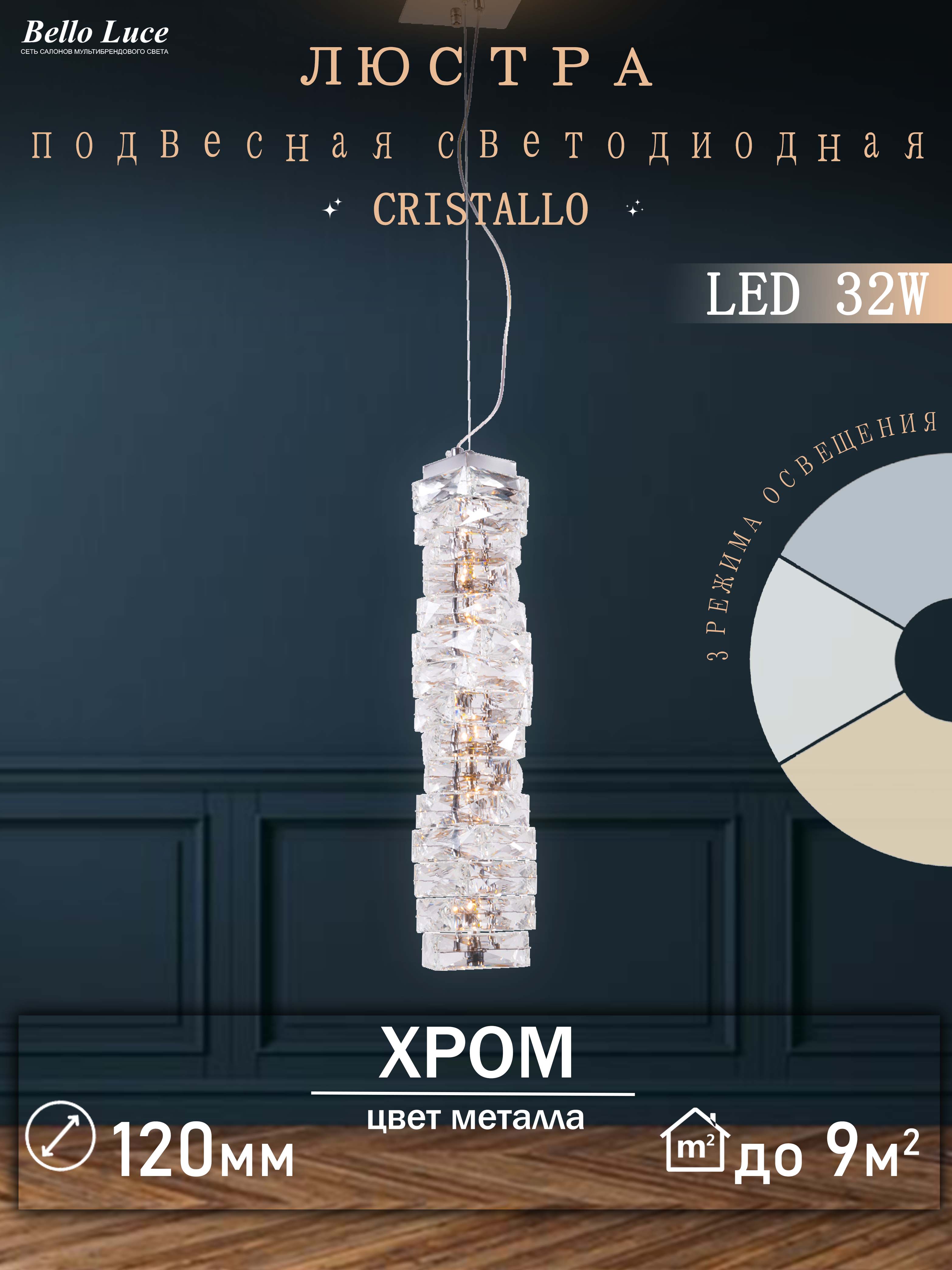 Представляем вам стильный и современный подвесной светильник с хрустальными элементами, который станет украшением любого интерьера. Эта светодиодная модель мощностью 32W обеспечит яркое и равномерное освещение, создавая атмосферу уюта и изысканности в вашем доме или офисе.