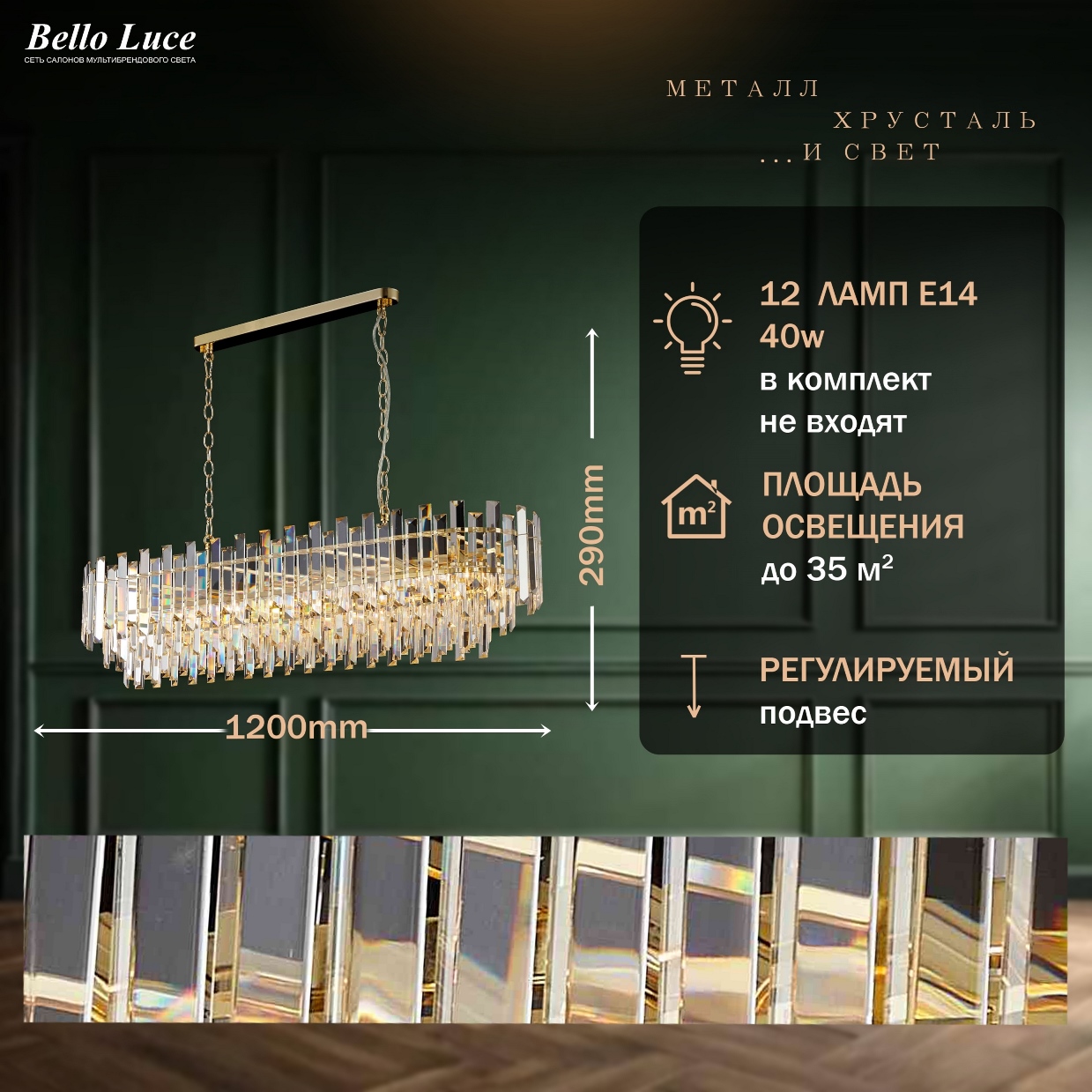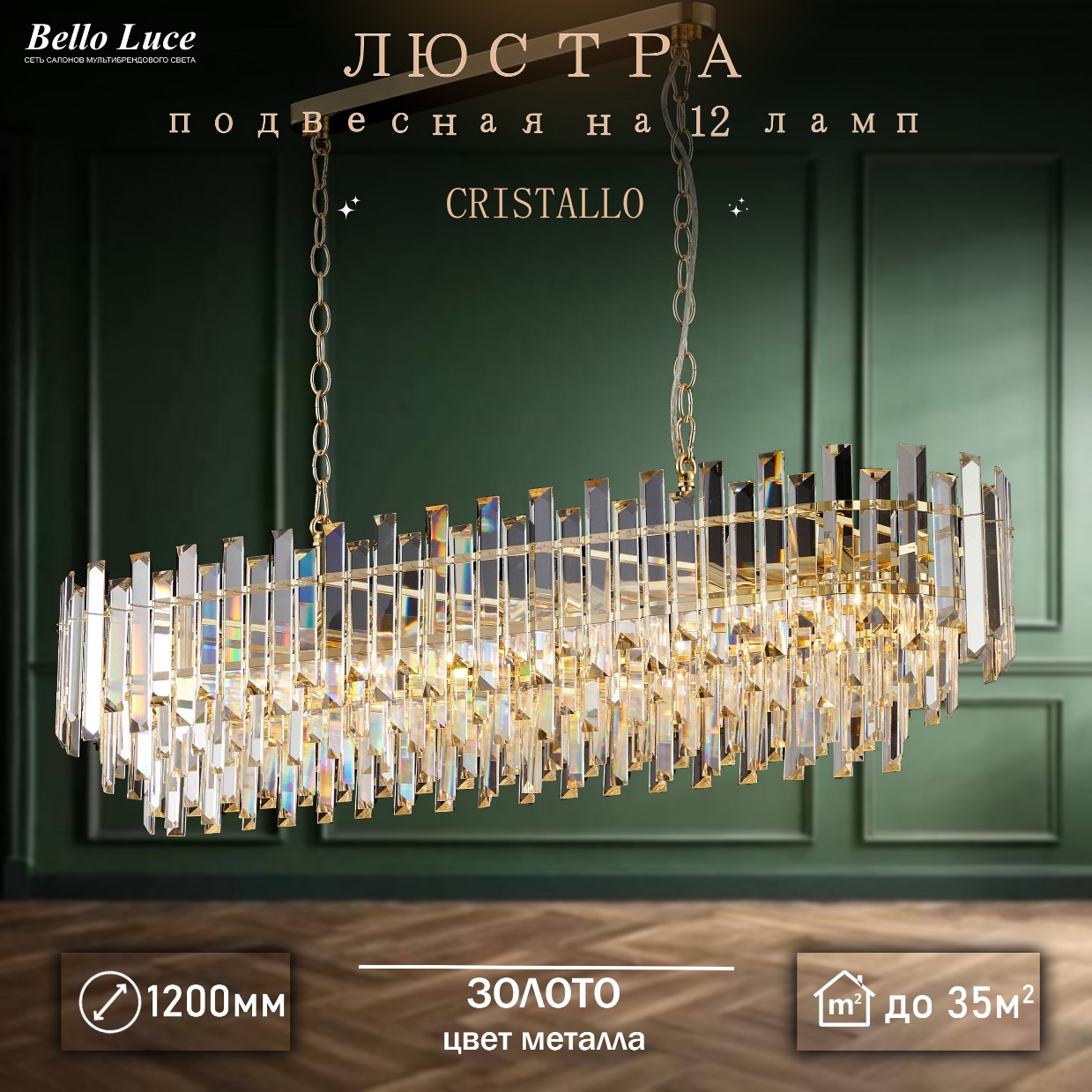 Компания Мегасвет предлагает вам оптом и в розницу Люстра Cristallo хрустальная золото овальная подвесная с прозрачными хрустальными подвесками на 12 ламп E14, регулировка по высоте по цене 38988 рублей.