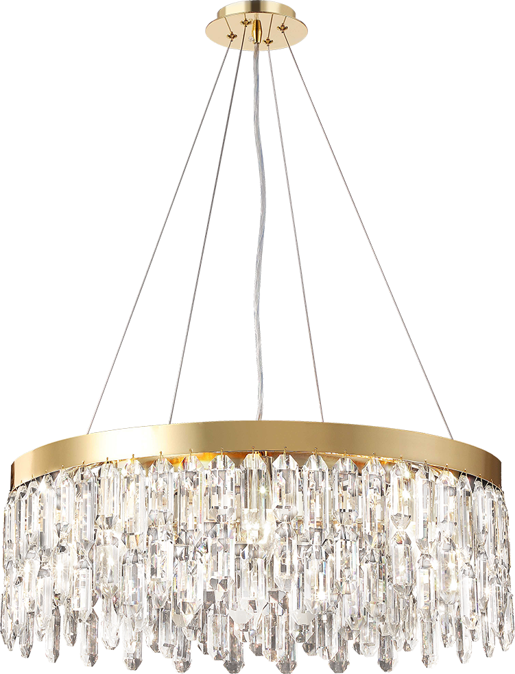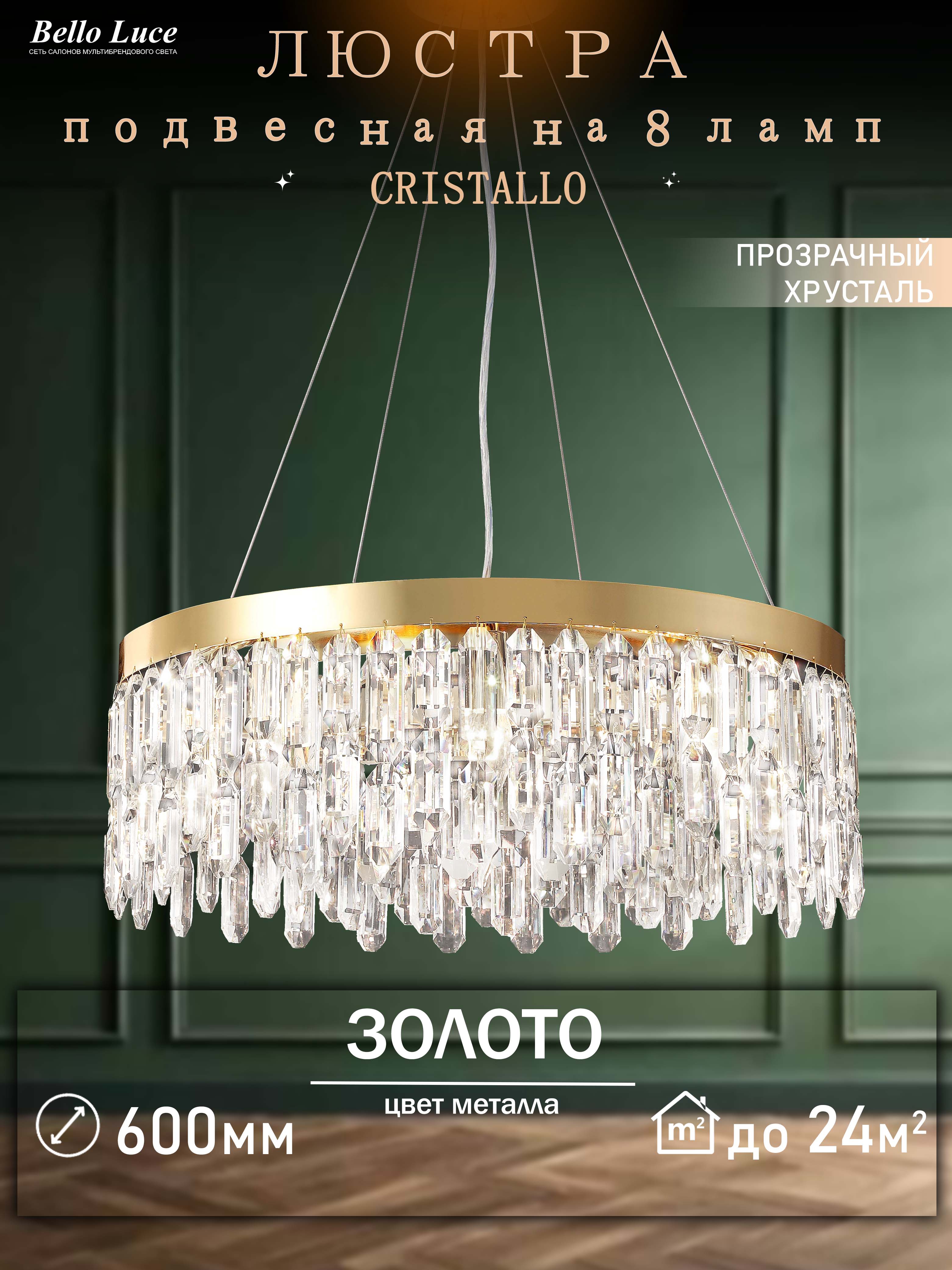 Компания Мегасвет предлагает вам оптом и в розницу Люстра Cristallo хрустальная круглая золото подвесная с прозрачными хрустальными подвесками на 8 ламп E14, регулировка по высоте по цене 25784 рублей.