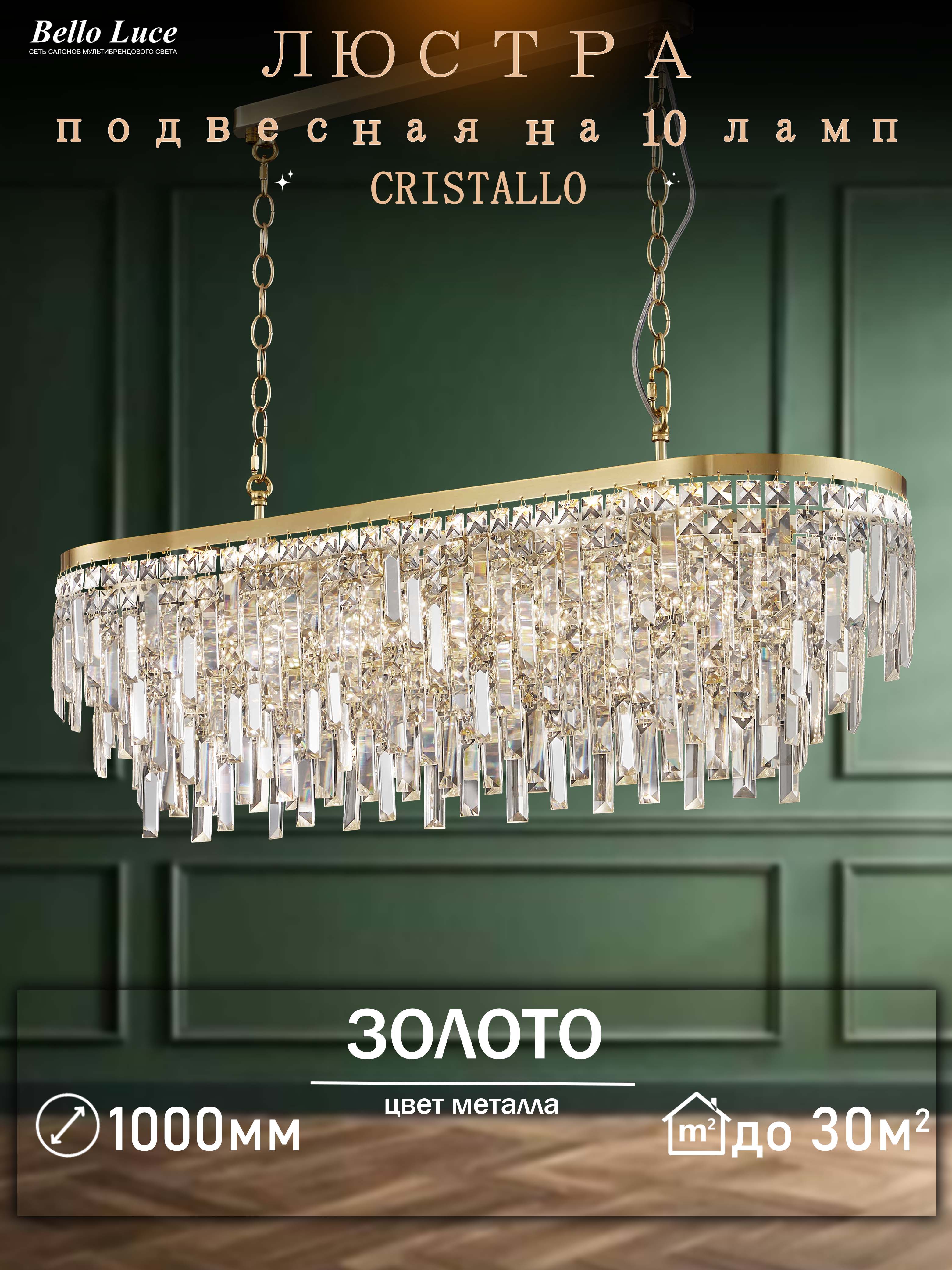 Компания Мегасвет предлагает вам оптом и в розницу Люстра Cristallo хрустальная золото подвесная овал с прозрачными хрустальными подвесками на 10 ламп E14, регулировка по высоте по цене 40095 рублей.
