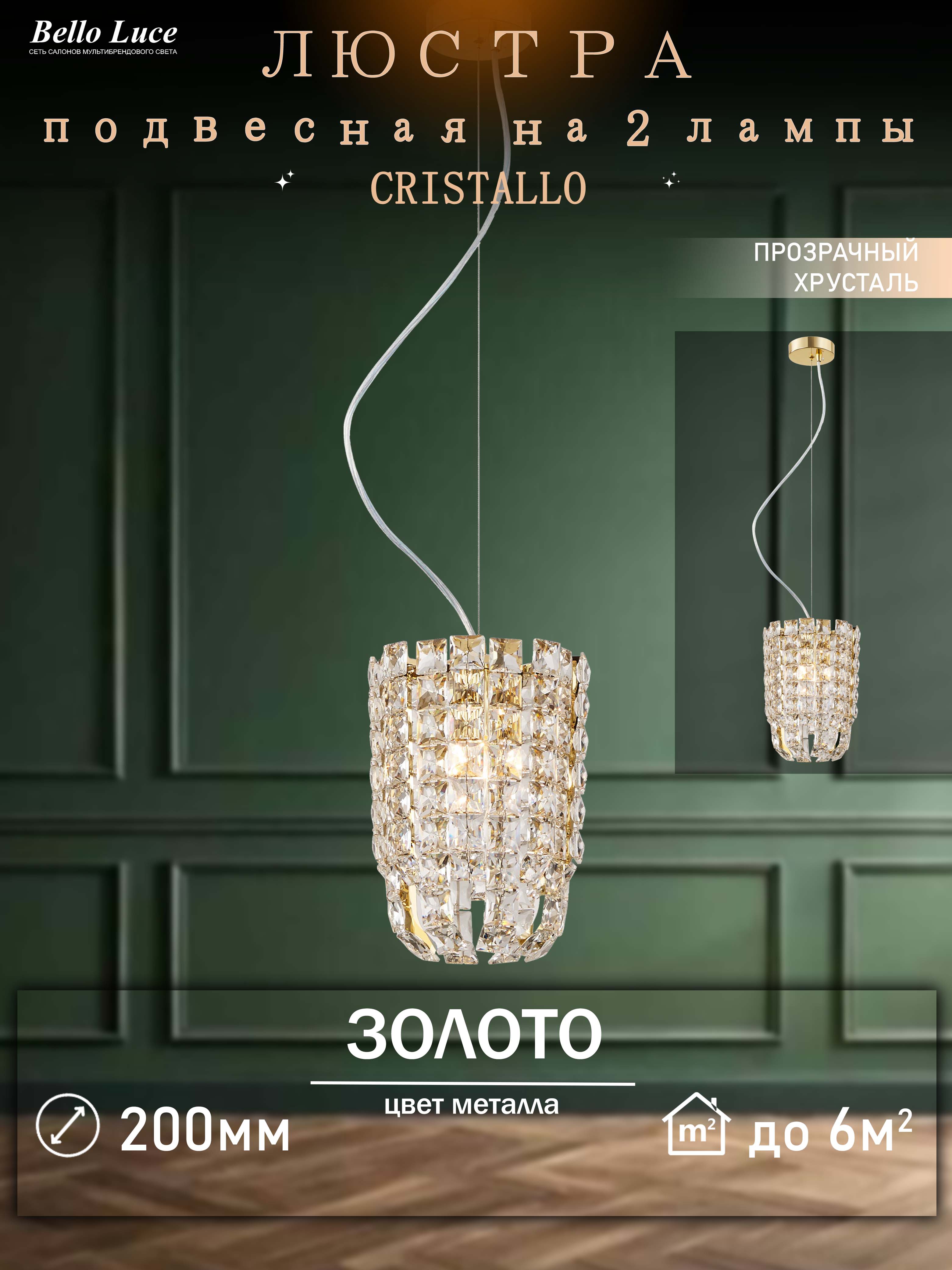Компания Мегасвет предлагает вам оптом и в розницу Люстра Cristallo хрустальная подвесная круглая золото с прозрачным хрустальным декором на 2 лампы E14, регулировка по высоте по цене 9810 рублей.