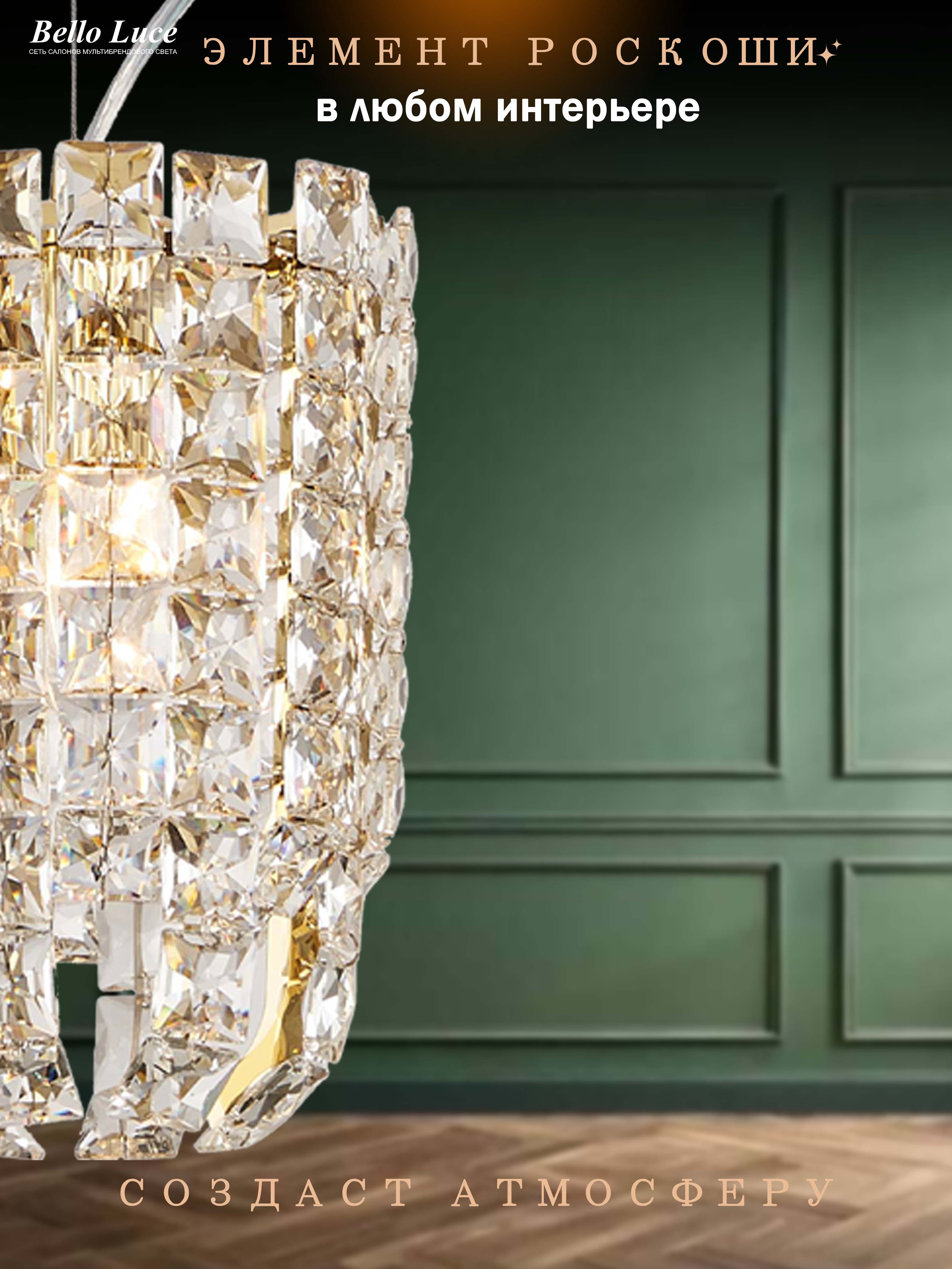 Представляем вашему вниманию роскошную хрустальную подвесную люстру, которая станет ярким акцентом в любом интерьере. Эта стильная модель выполнена в современном дизайне с элементами престижа, что делает её идеальным выбором для тех, кто ценит изысканность и оригинальность.