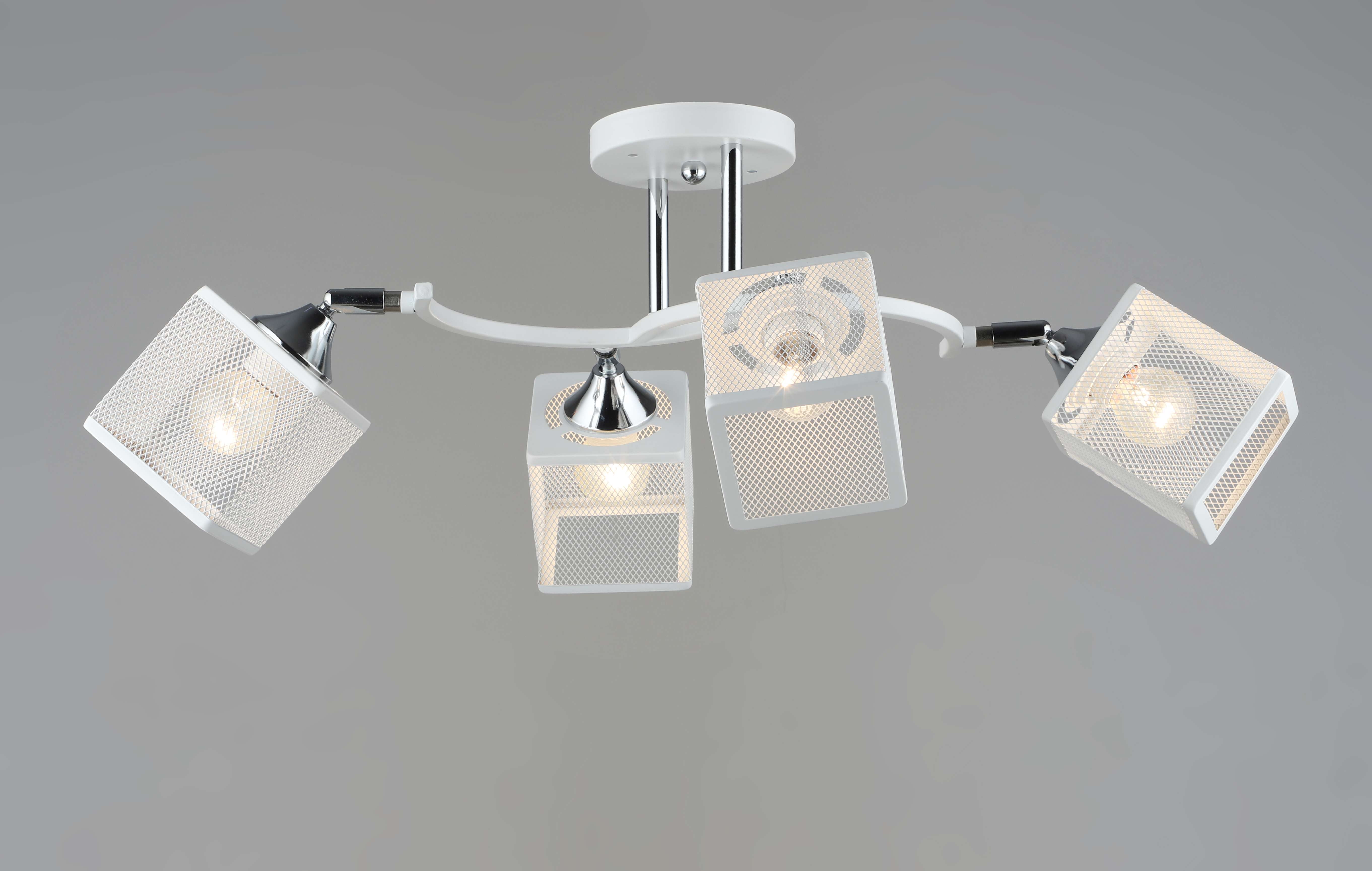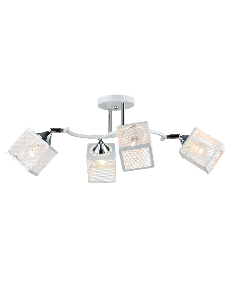 Компания Мегасвет предлагает вам оптом и в розницу Люстра Престиж белая/хром потолочная с плафонами металлическая сетка на 4 лампы E27 по цене 3402 рублей.