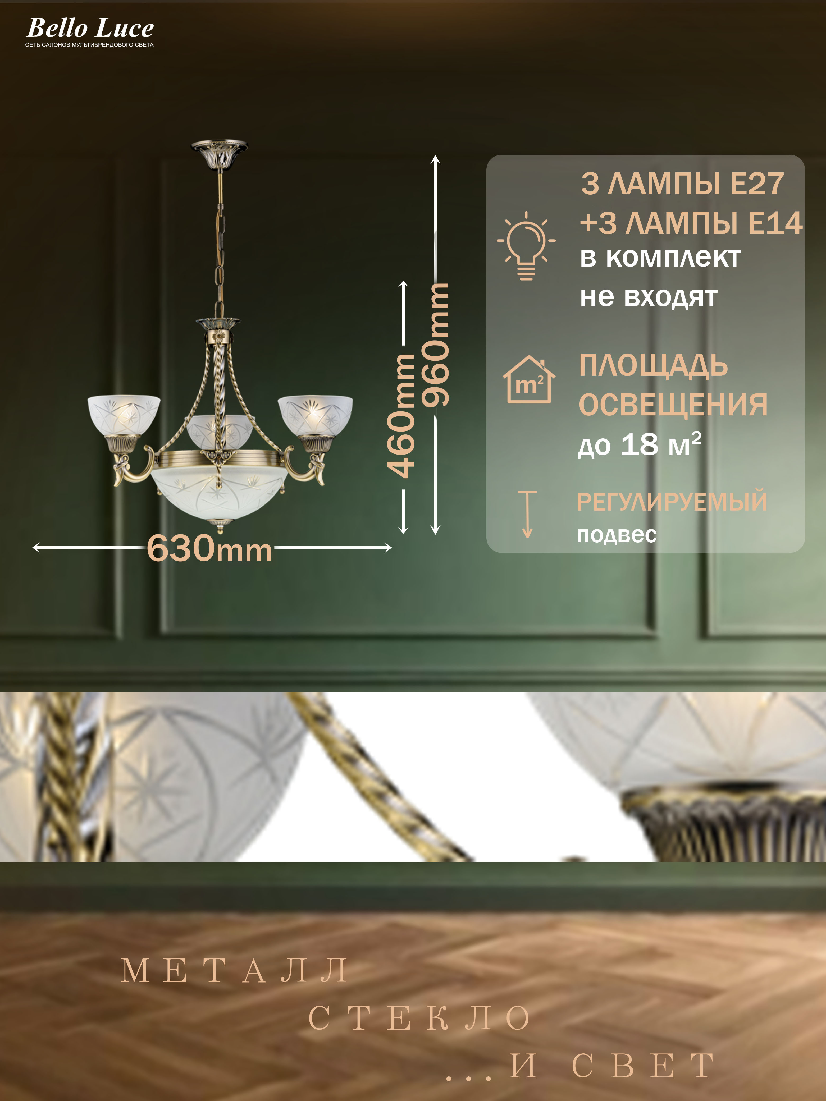 Модель подходит для стандартных ламп с цоколем E27 и E14, что предоставляет вам возможность выбрать источники света по вашему вкусу. Люстра имеет превосходные эстетические качества и выполнена из высококачественных материалов, что гарантирует долговечность и стабильную эксплуатацию в течение многих лет.