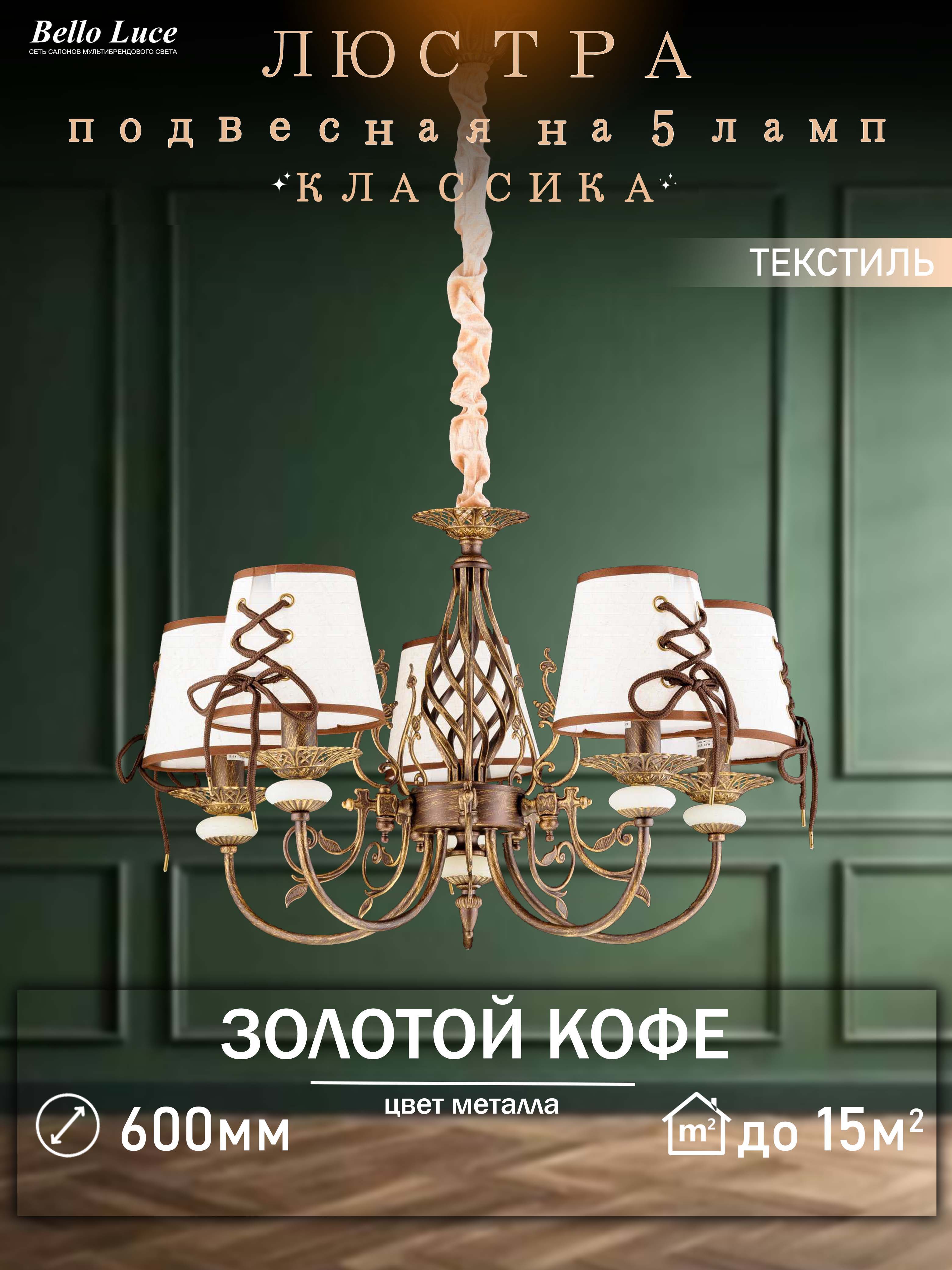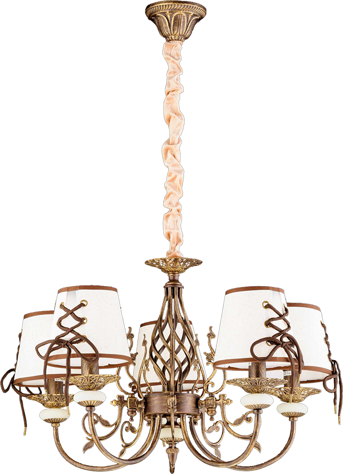 Компания Мегасвет предлагает вам оптом и в розницу Люстра Классика коричневый с золотом подвесная с бежевым текстильным абажуром на 5 ламп E14, регулировка по высоте по цене 8500 рублей.