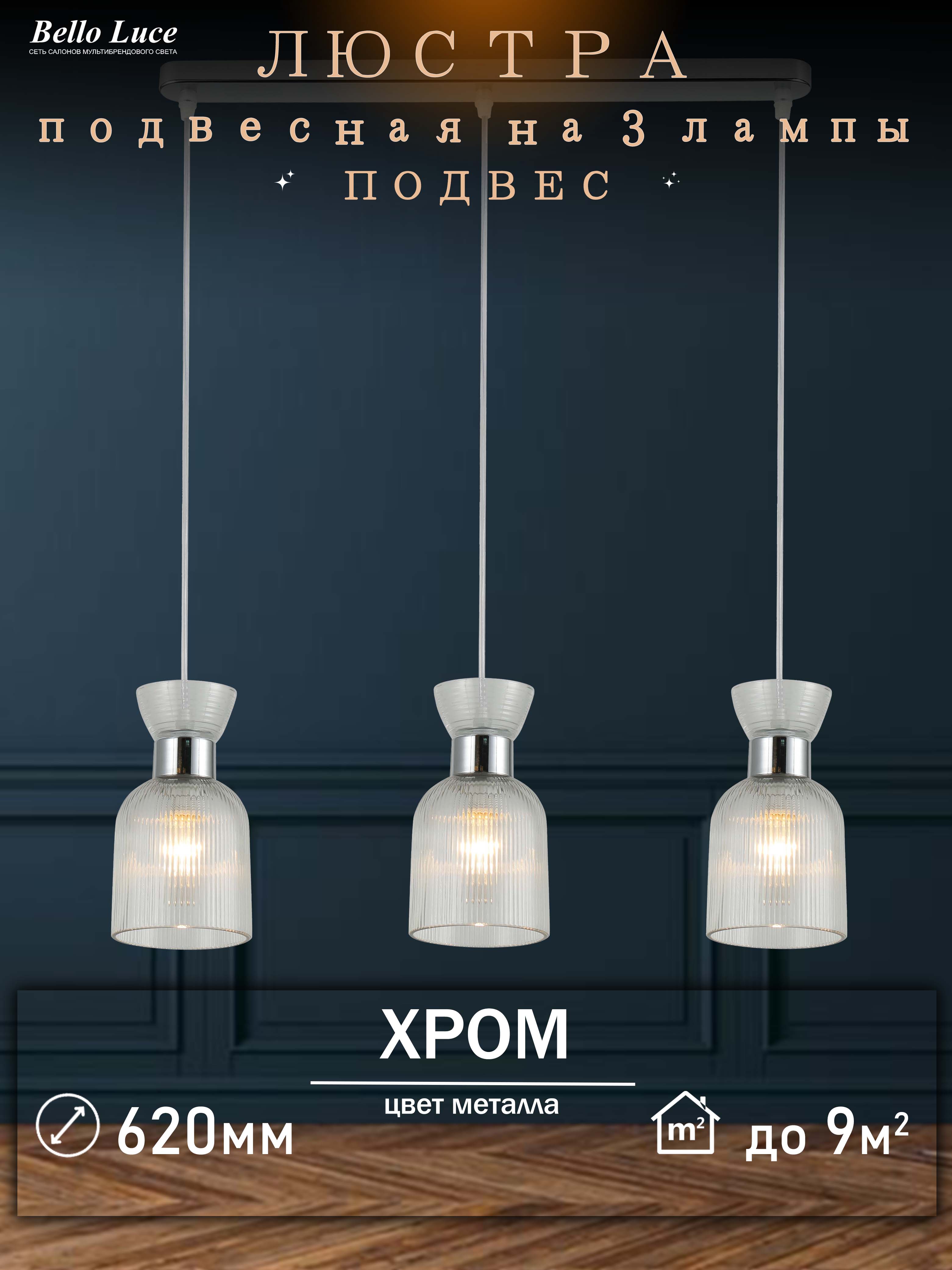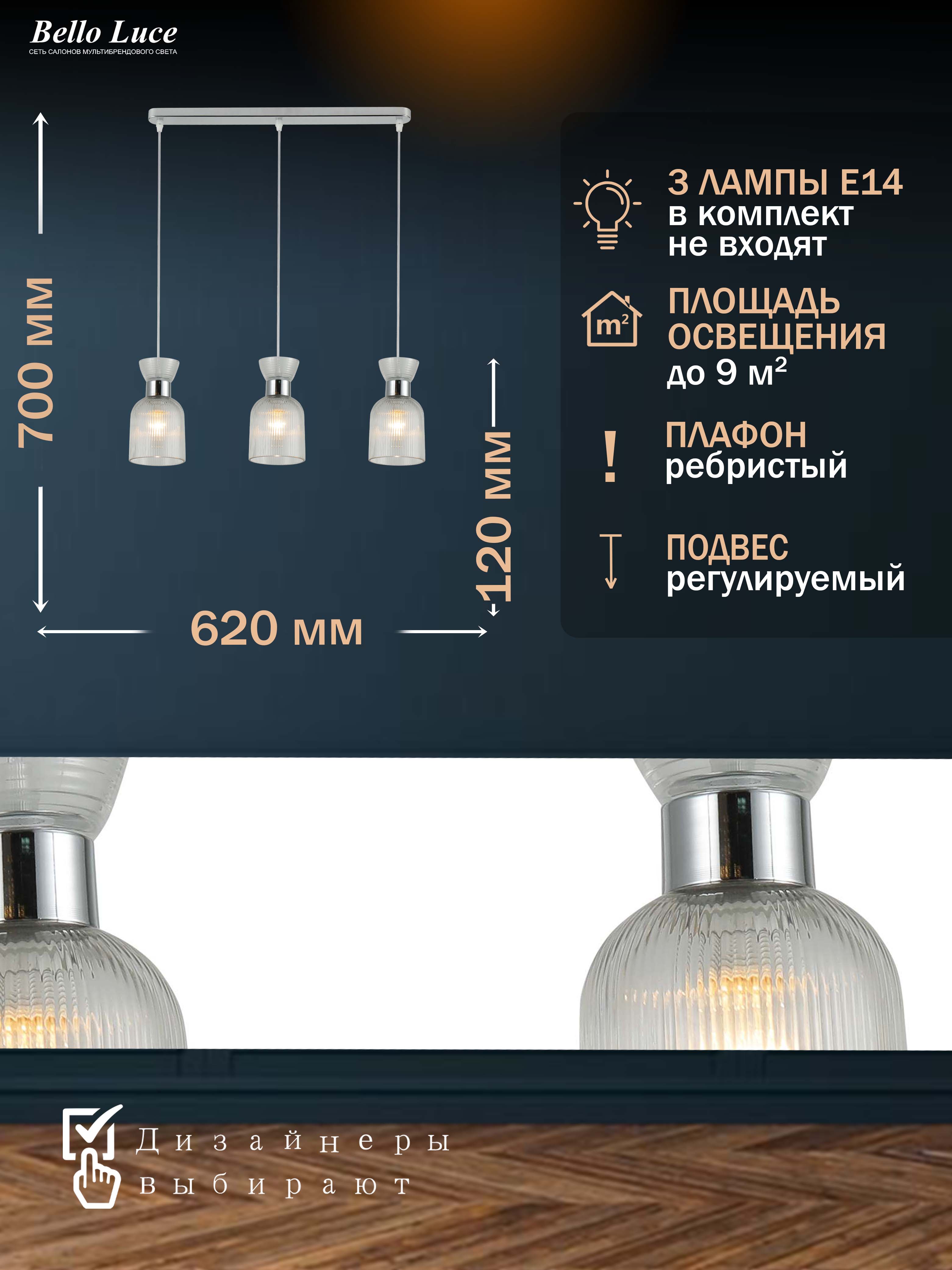 Компания Мегасвет предлагает вам оптом и в розницу Люстра подвесная хром с прозрачным плафоном на 3 лампы E14, регулировка по высоте по цене 3421 рублей.