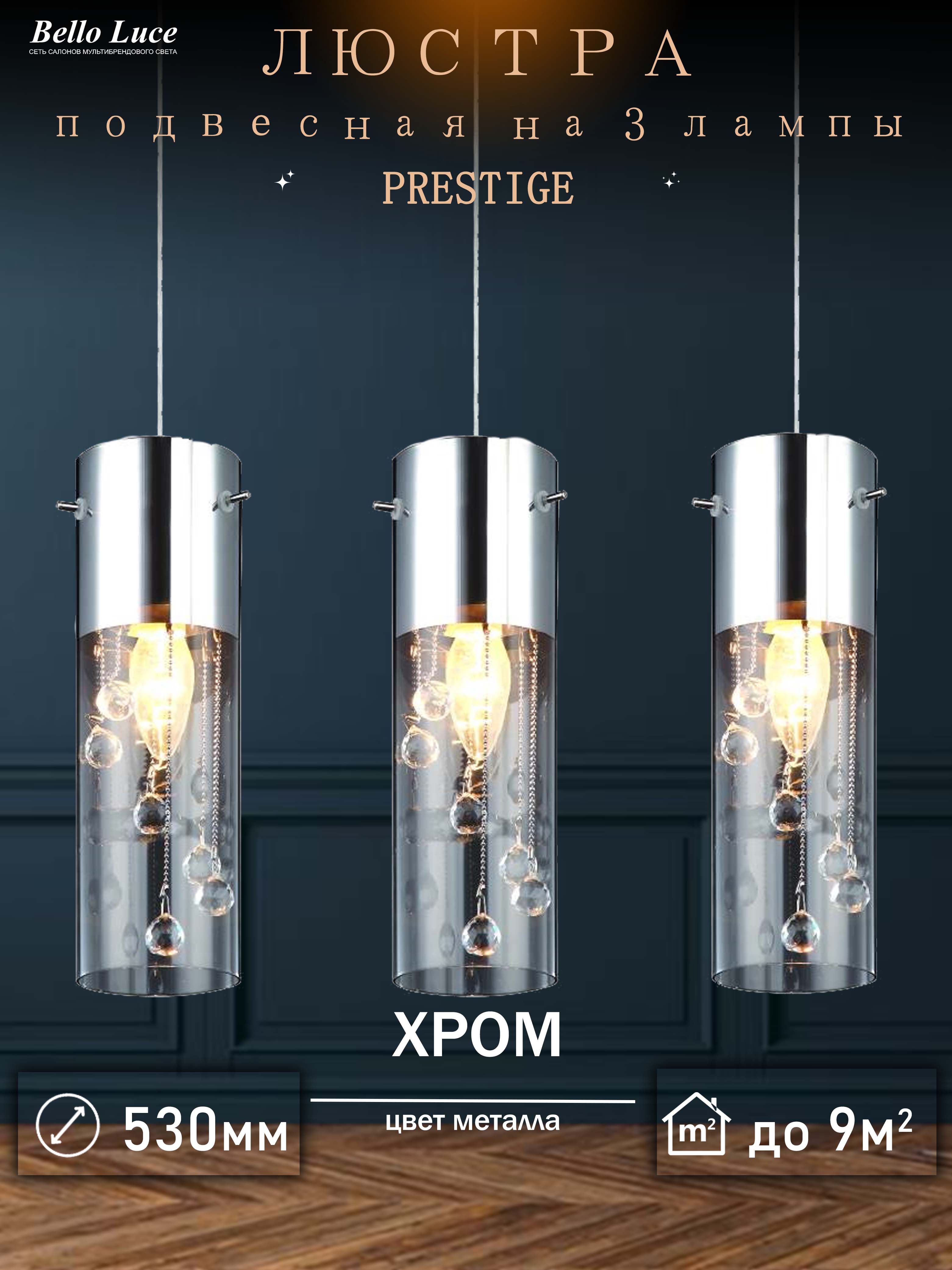 Компания Мегасвет предлагает вам оптом и в розницу Люстра Престиж хром подвесная с прозрачными плафонами и хрустальными подвесками на 3 лампы E14, регулировка по высоте по цене 8505 рублей.