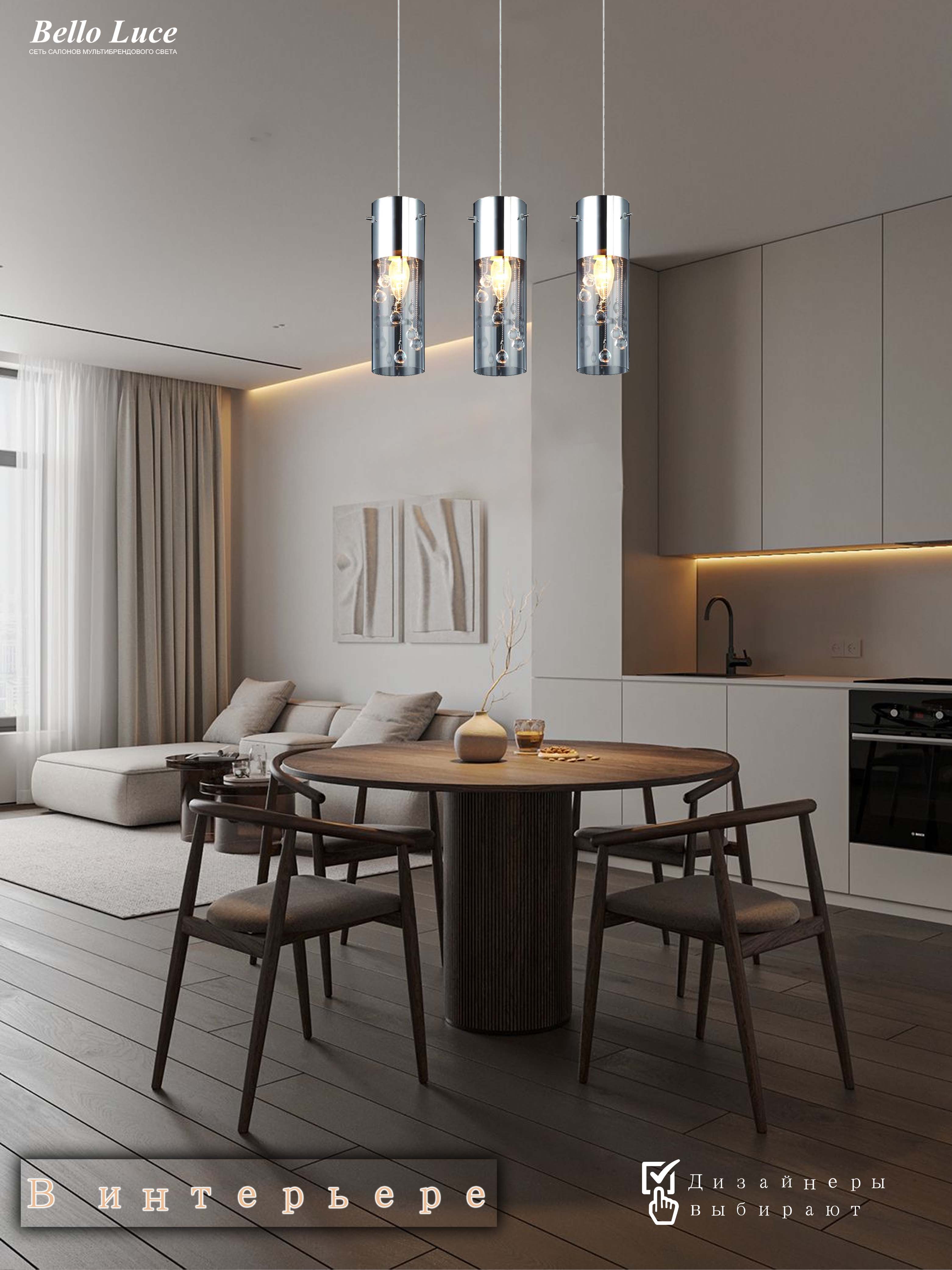 Основная особенность этого светильника — возможность регулировки по высоте, что позволяет адаптировать его под ваши индивидуальные предпочтения и особенности пространства. Вы сможете создать идеальное освещение в вашей комнате, будь то кухня, гостиная или столовая.