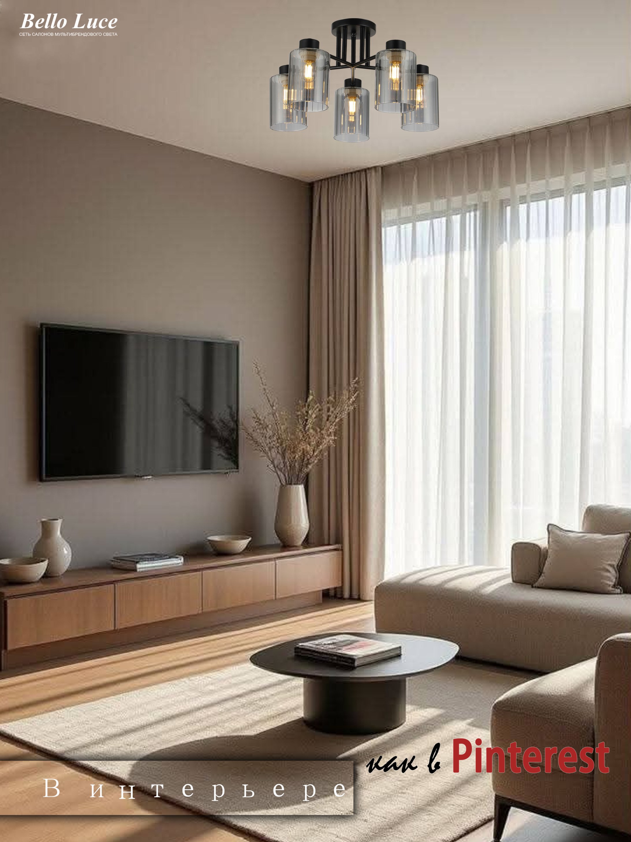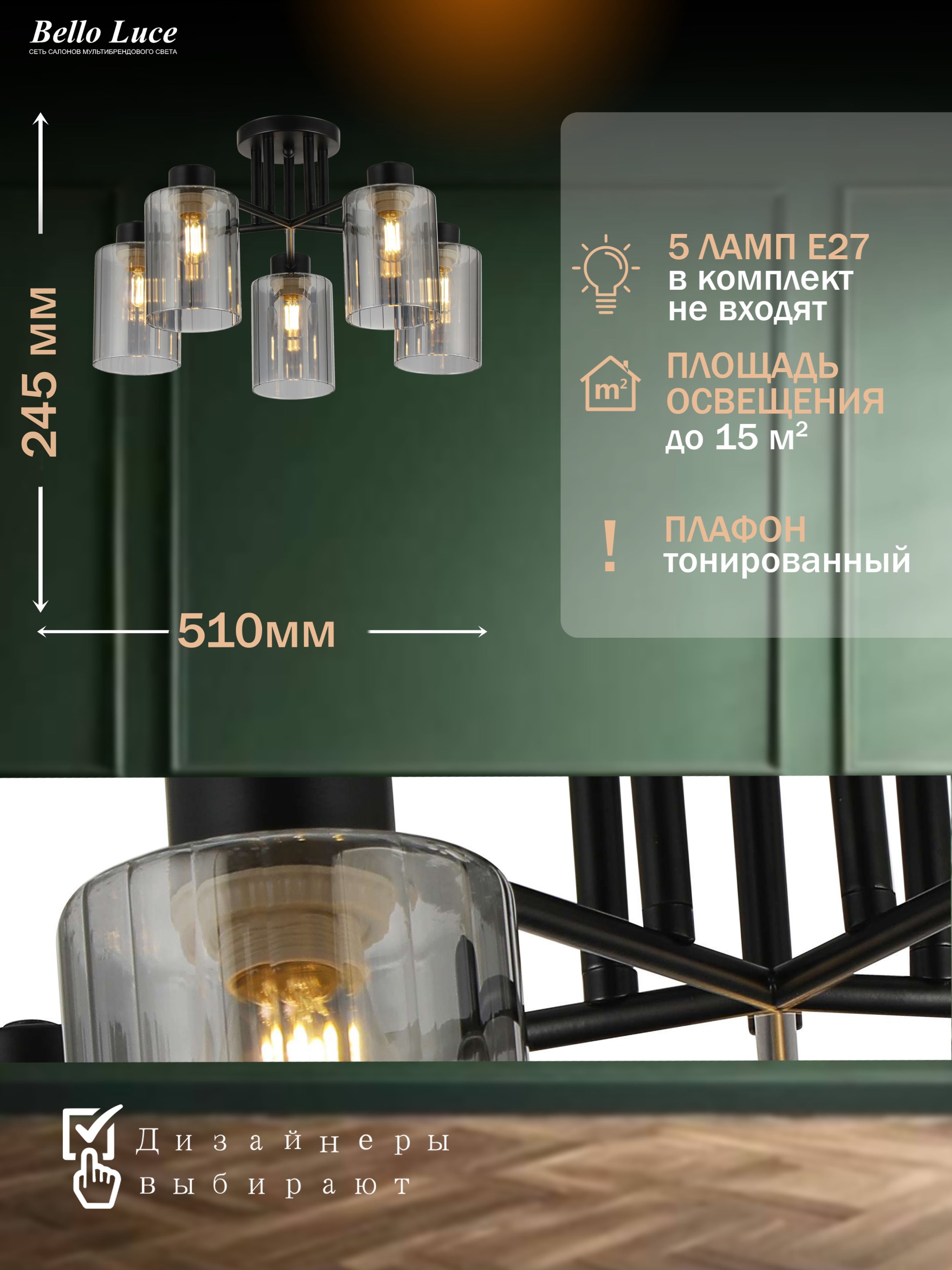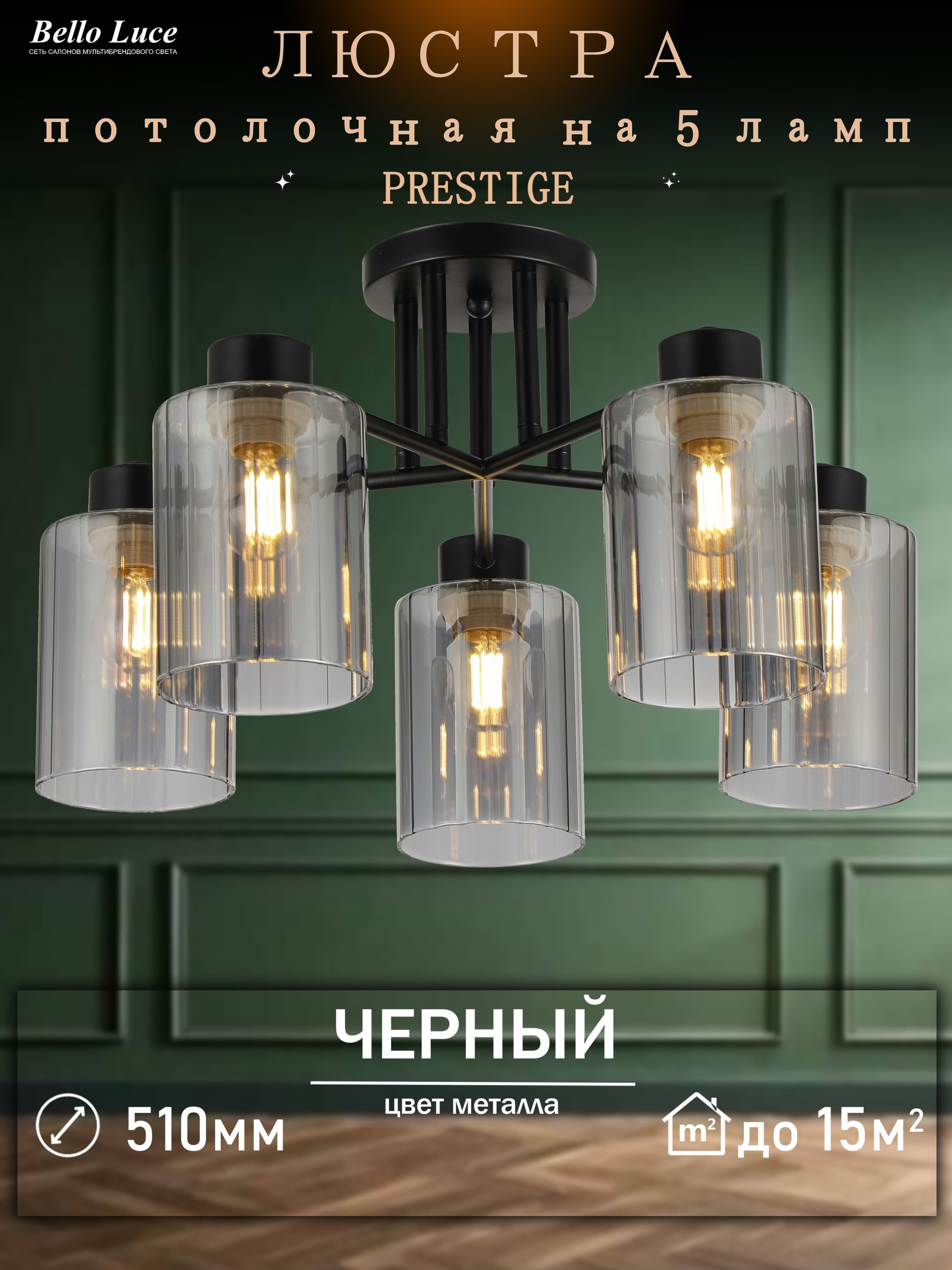 Компания Мегасвет предлагает вам оптом и в розницу Люстра потолочная Престиж черная с рифлеными тонированными плафонами на 5 лампы E27 по цене 6920 рублей.