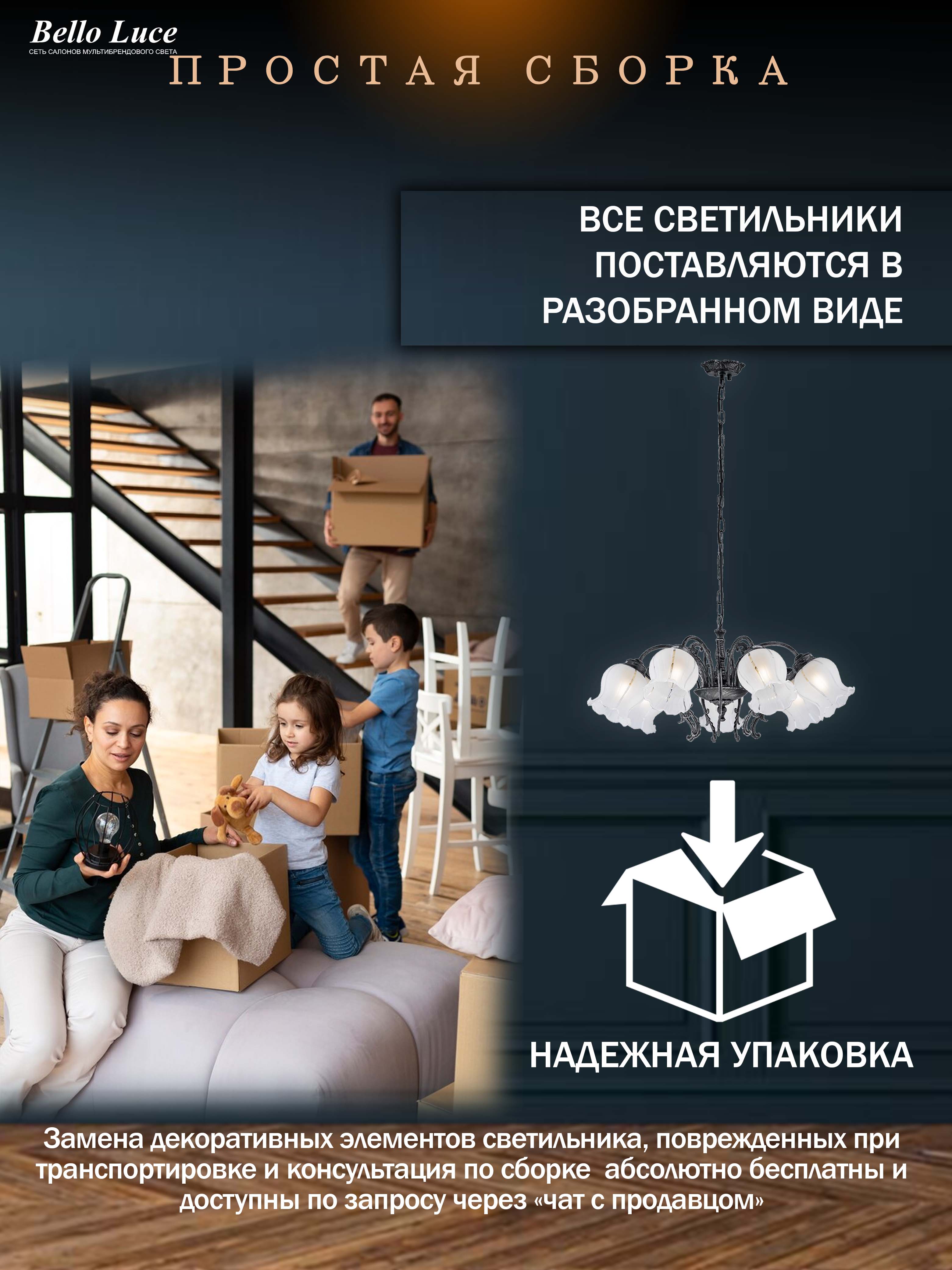 Конструкция люстры очень надежная, что гарантирует долгий срок службы. Кроме того, она легко устанавливается и не требует особых навыков для полного подключения и начала эксплуатации. Эстетика и функциональность сделают ее отличным выбором для тех, кто ценит качест