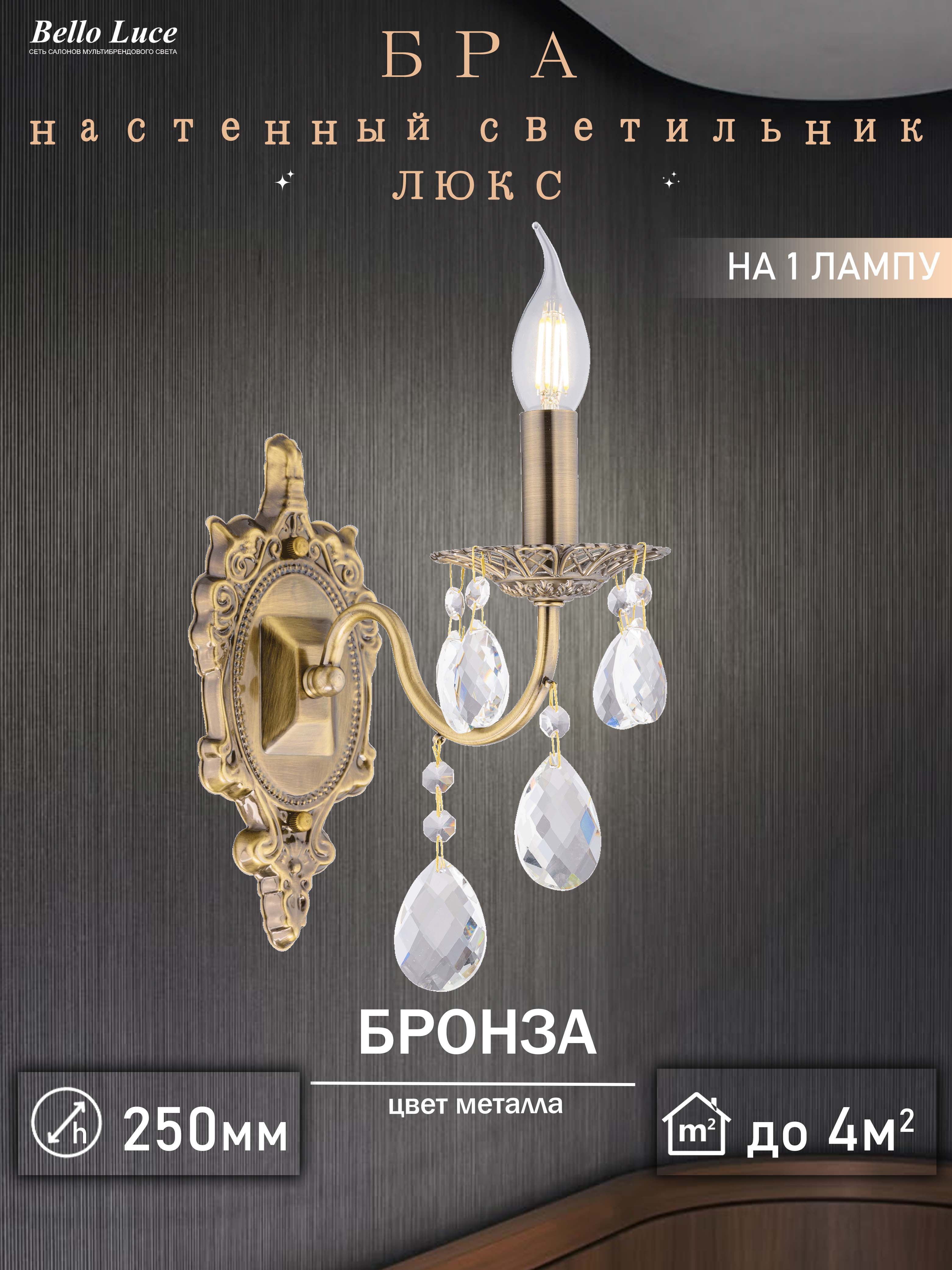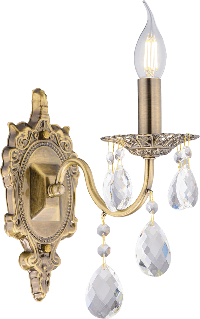 Компания Мегасвет предлагает вам оптом и в розницу Светильник настенный, бра Классика античная бронза с прозрачными хрустальными подвесками на 1 лампу E14 по цене 1773 рублей.