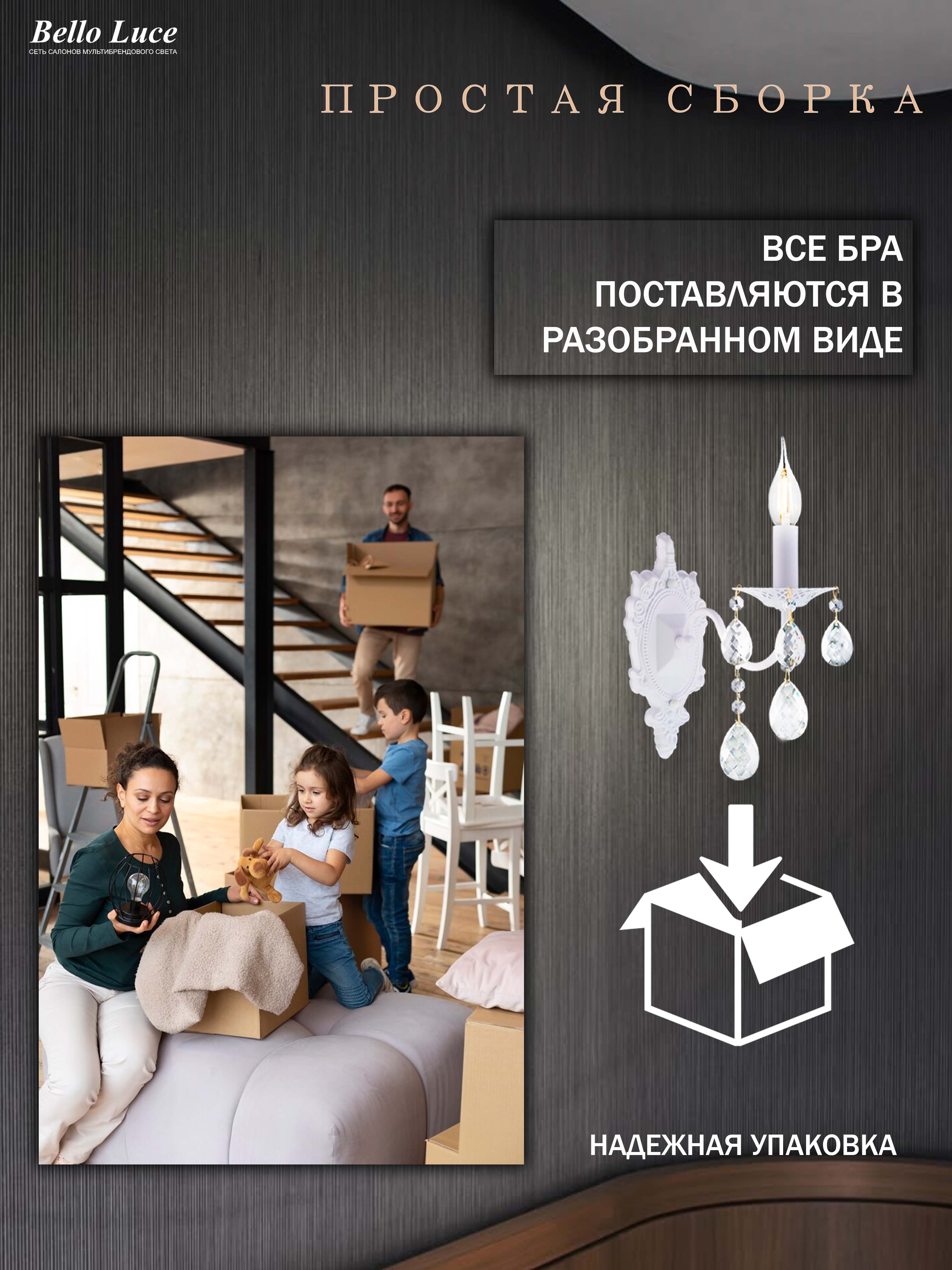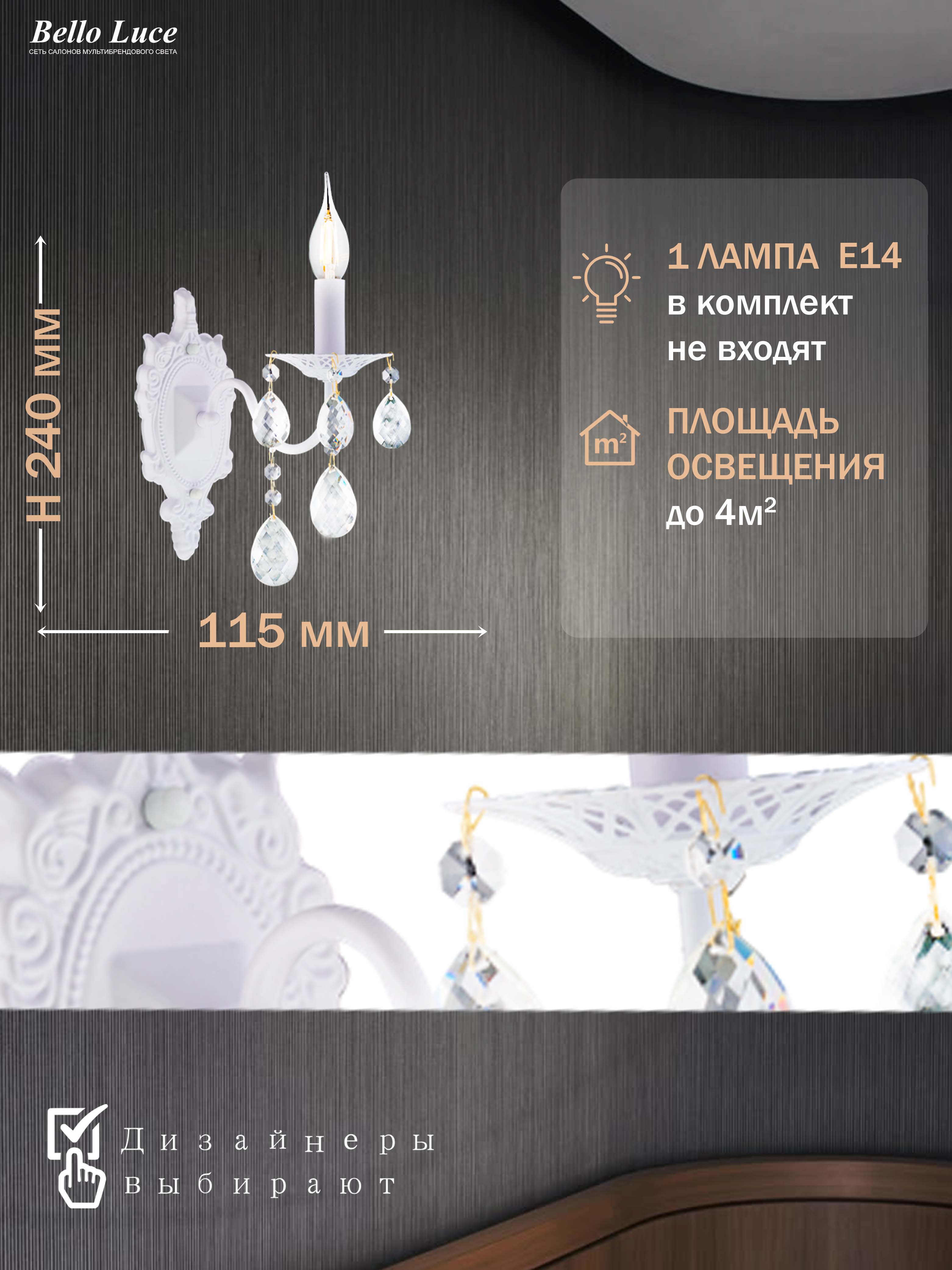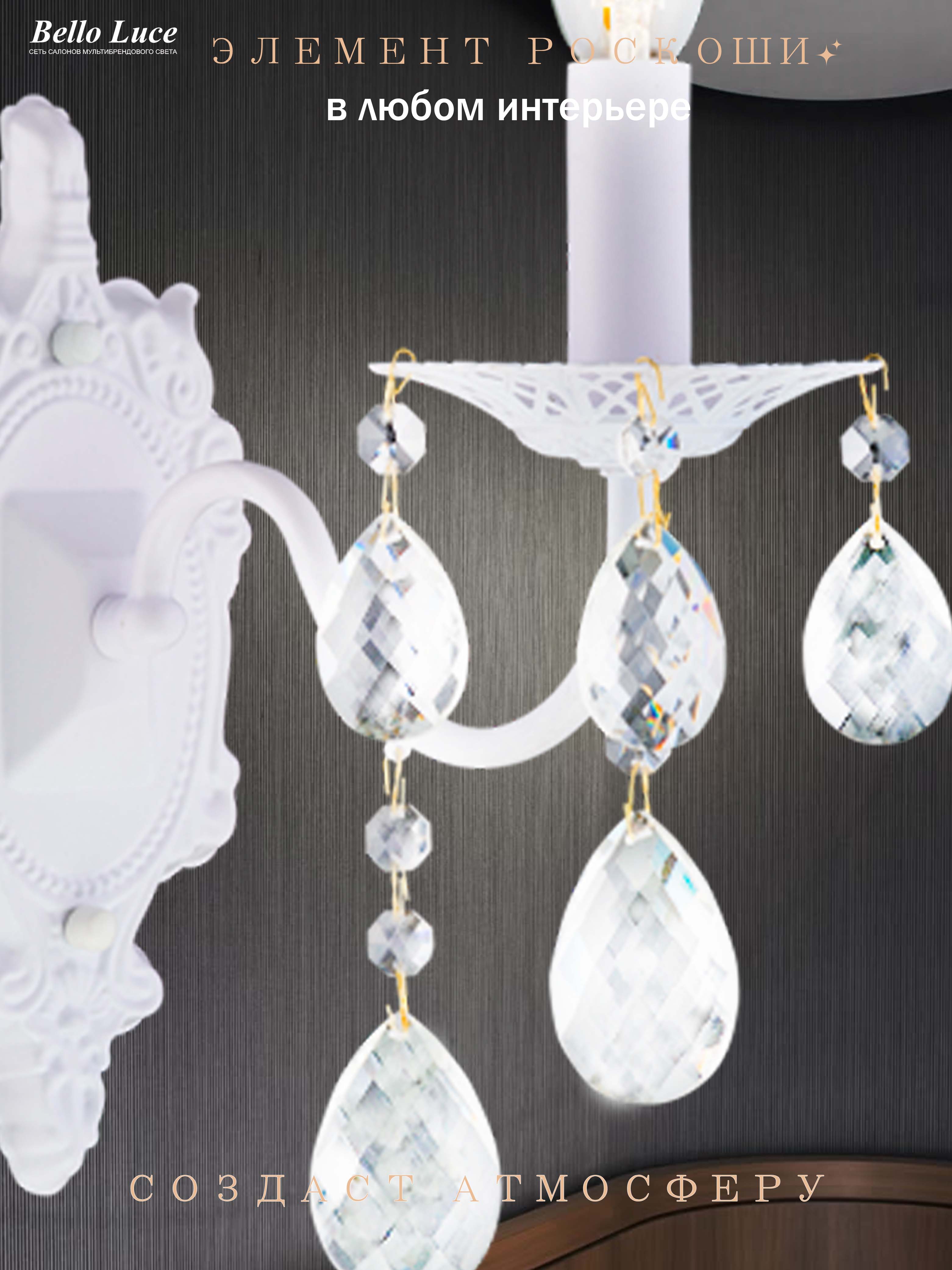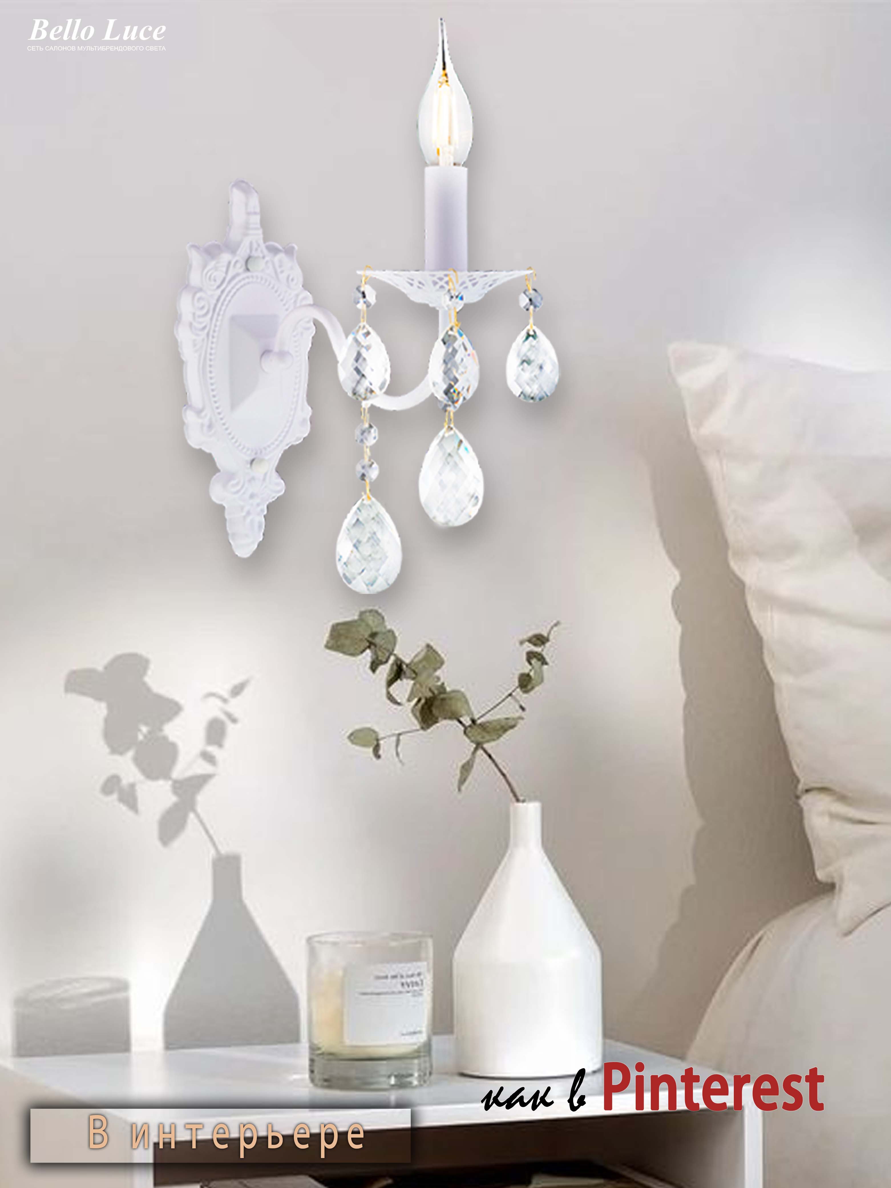 Компания Мегасвет предлагает вам оптом и в розницу Светильник настенный, бра Классика белая с прозрачными хрустальными подвесками на 1 лампу E14 по цене 1755 рублей.