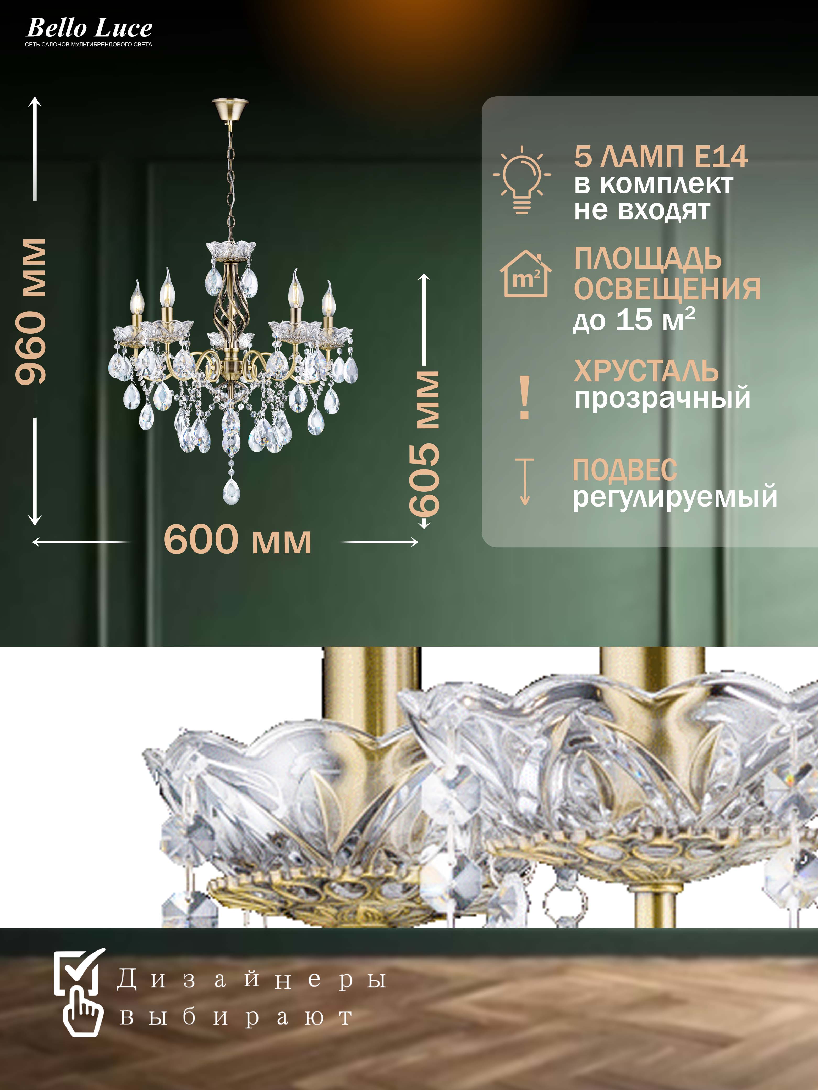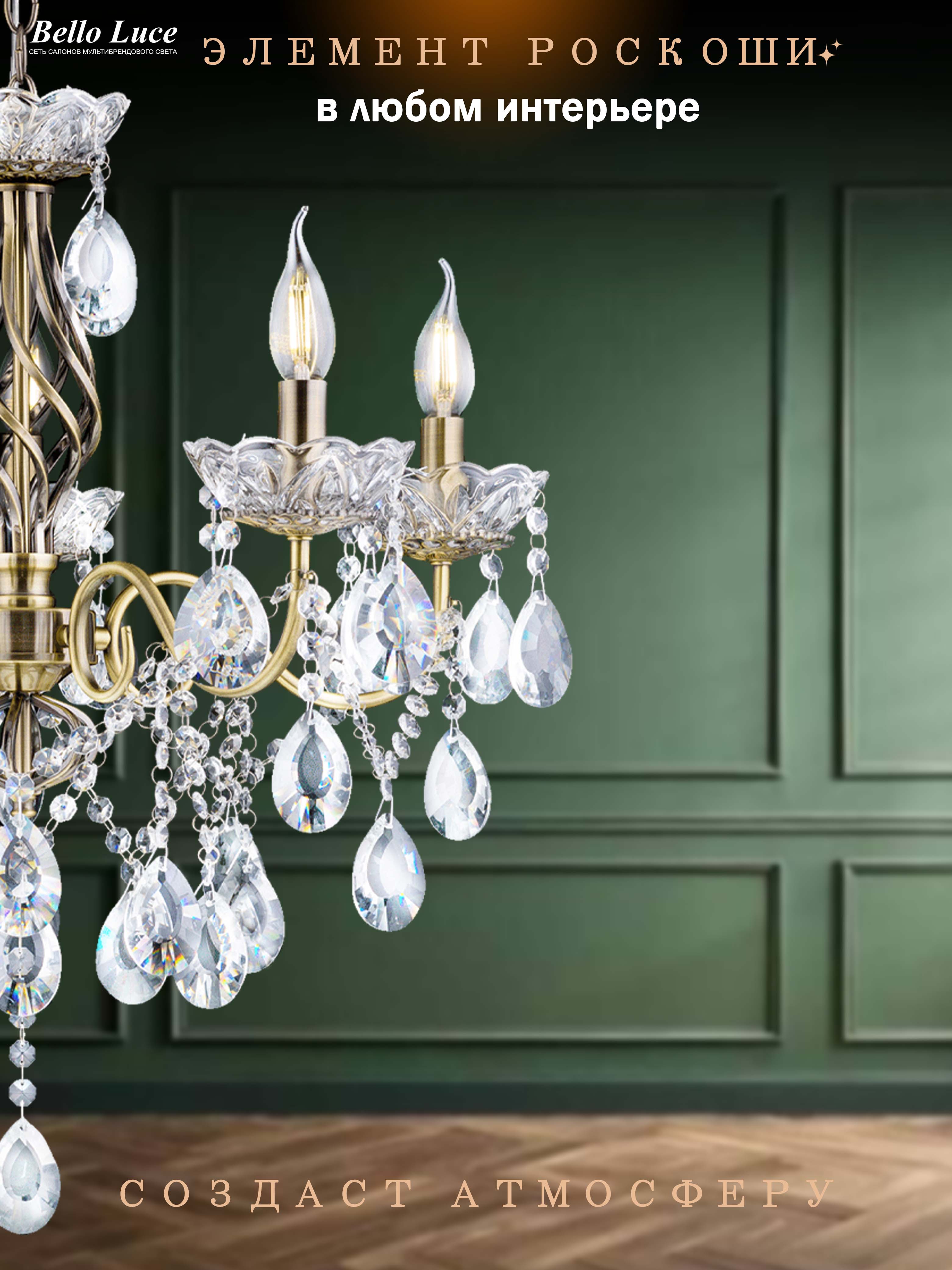 Она идеально подходит для установки в гостиной, столовой или спальне, привнося в атмосферу уют и стиль. Хрустальные элементы не только орошают пространство светом, но и создают потрясающие игры теней, которые добавят глубины и привлекательности вашему интерьеру.