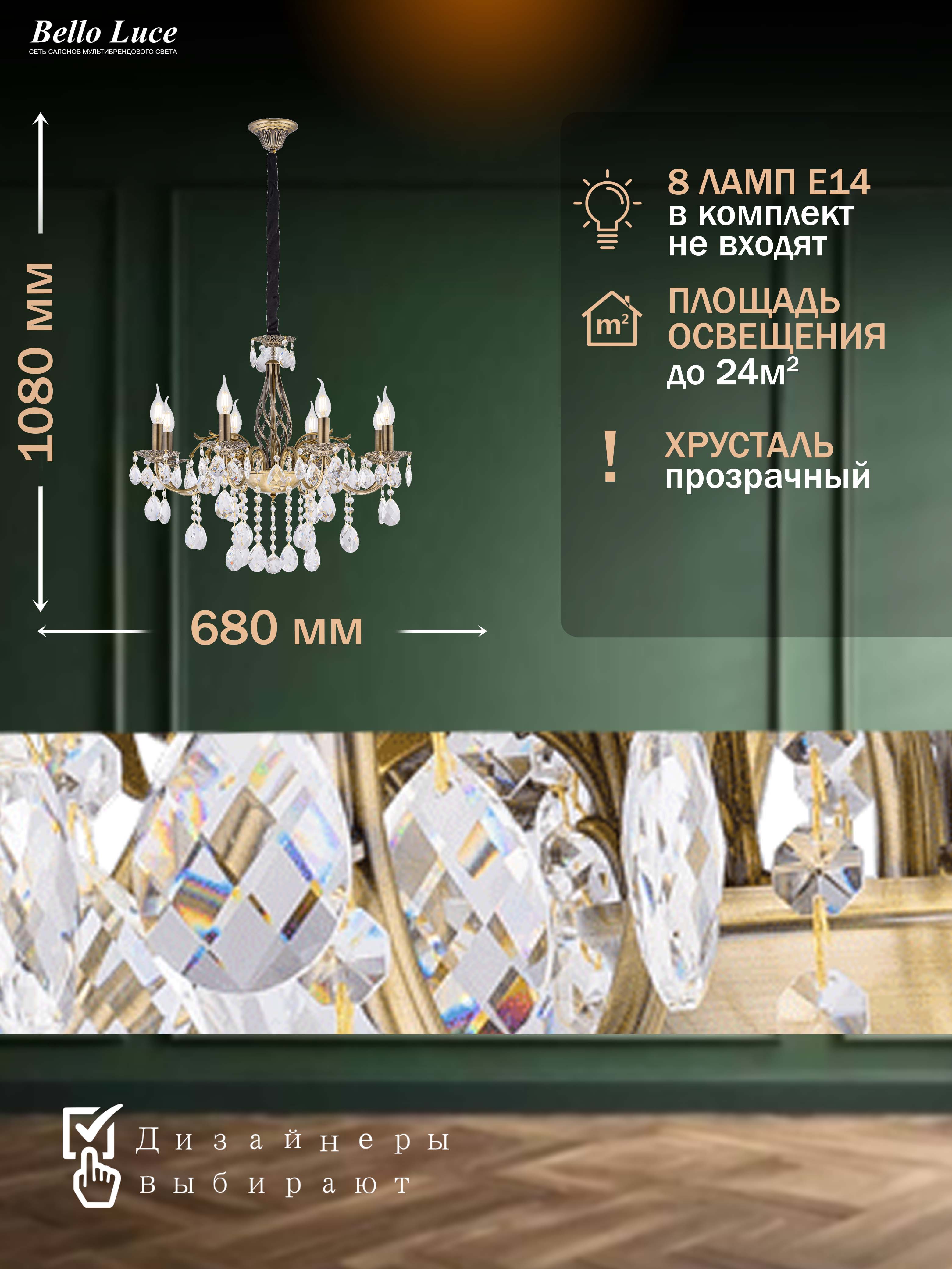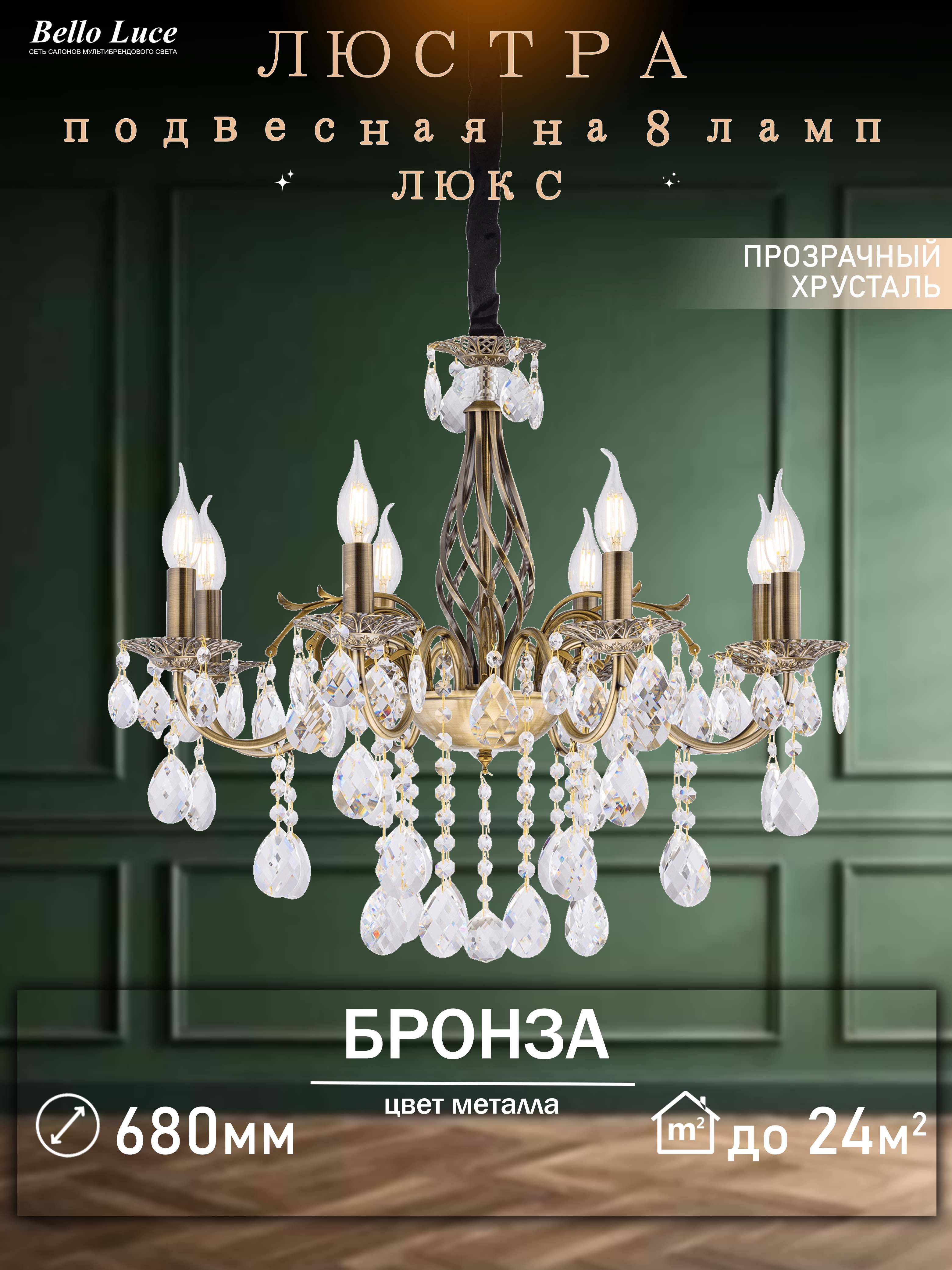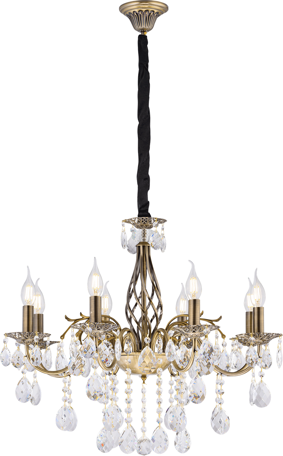 Компания Мегасвет предлагает вам оптом и в розницу Люстра хрустальная Классика античная бронза подвесная с прозрачными хрустальными подвесками на 8 ламп E14, регулировка по высоте по цене 7161 рублей.