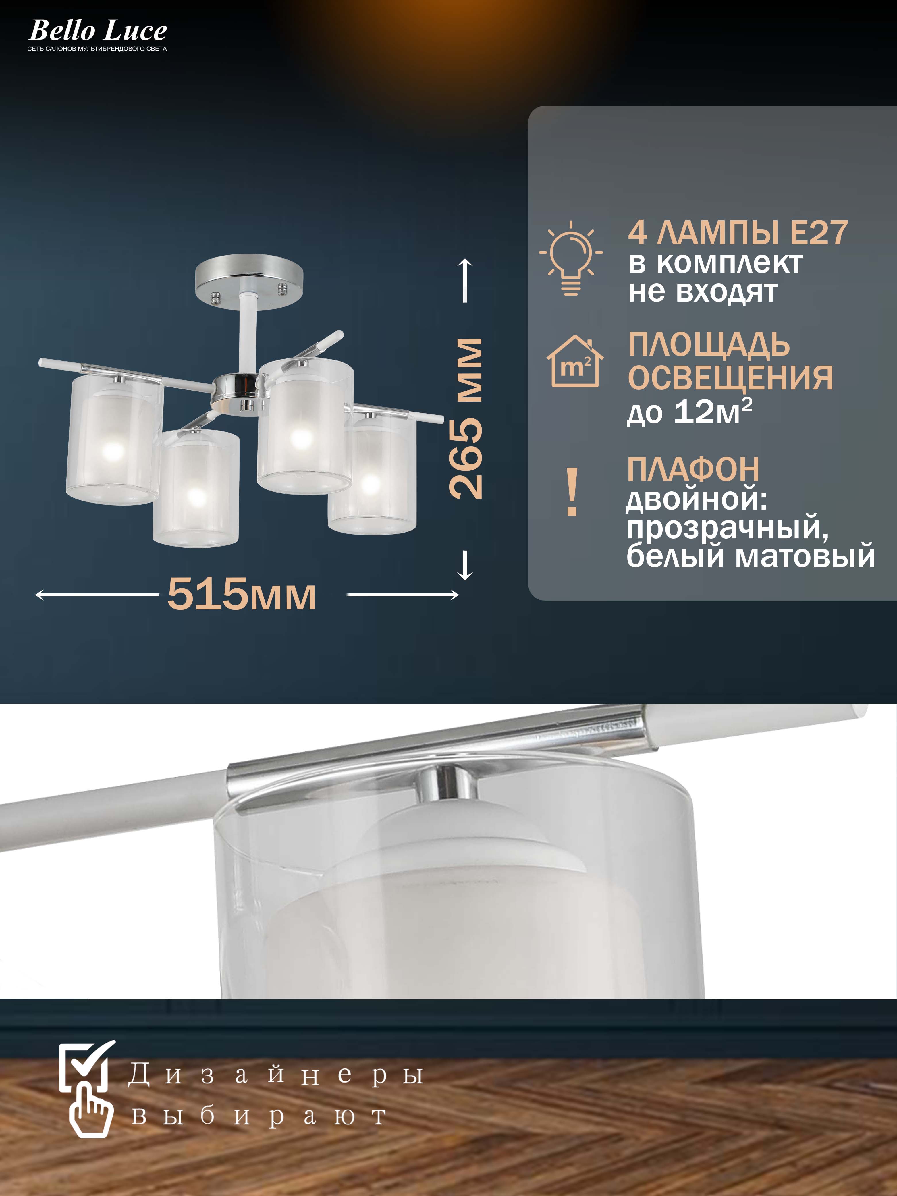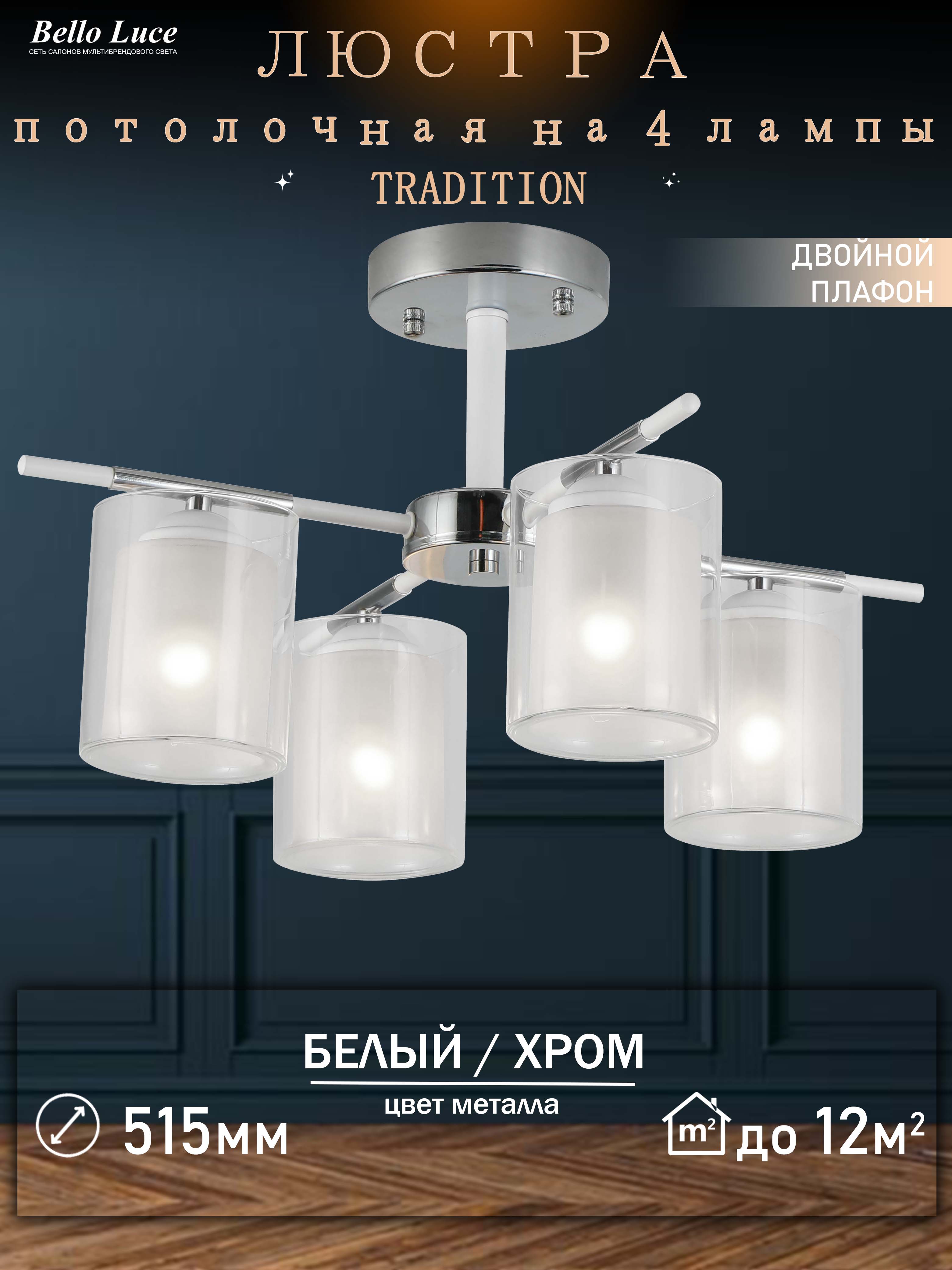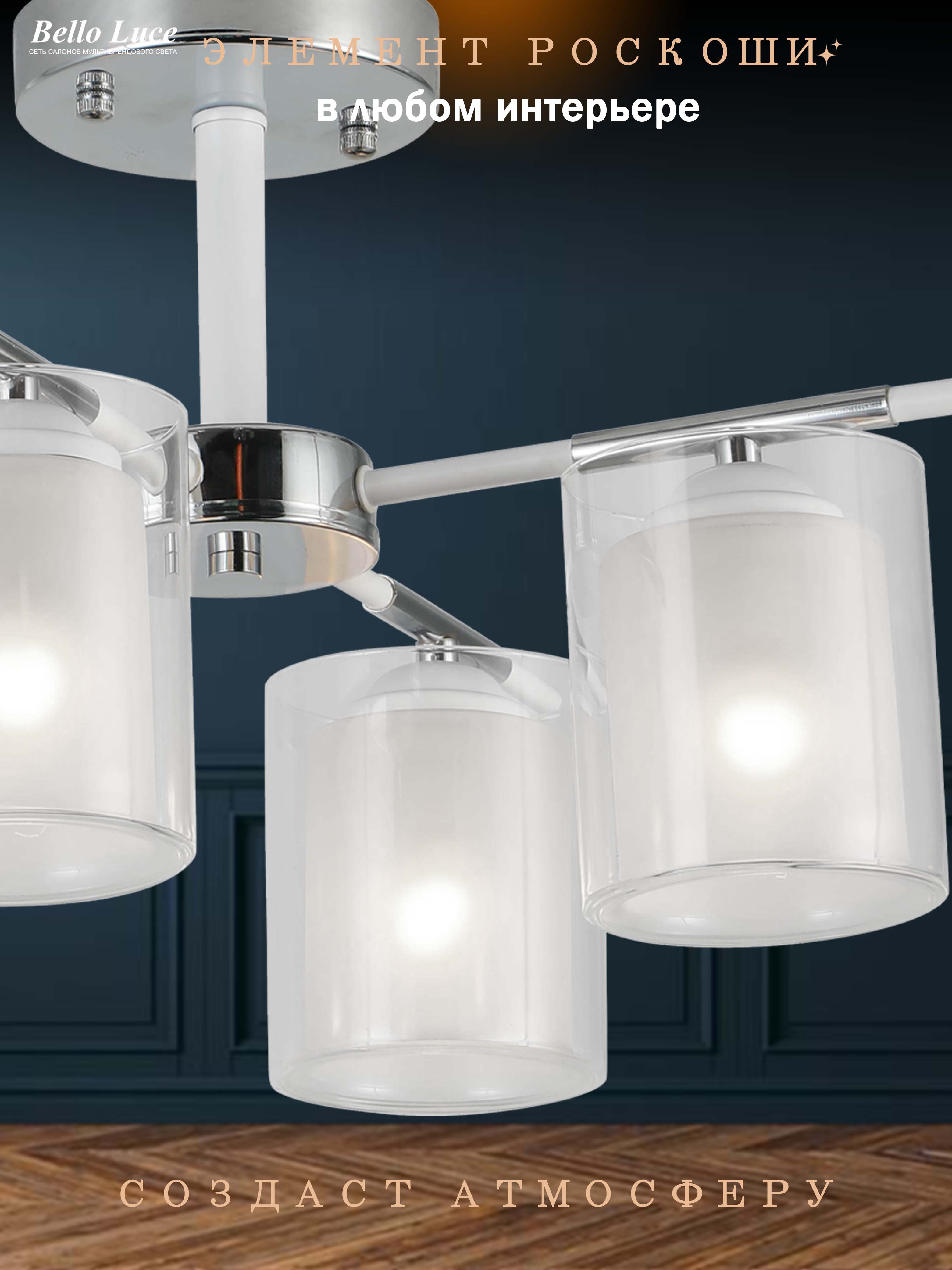 Компания Мегасвет предлагает вам оптом и в розницу Люстра хром/белая потолочная на 4 лампы E27 по цене 5370 рублей.