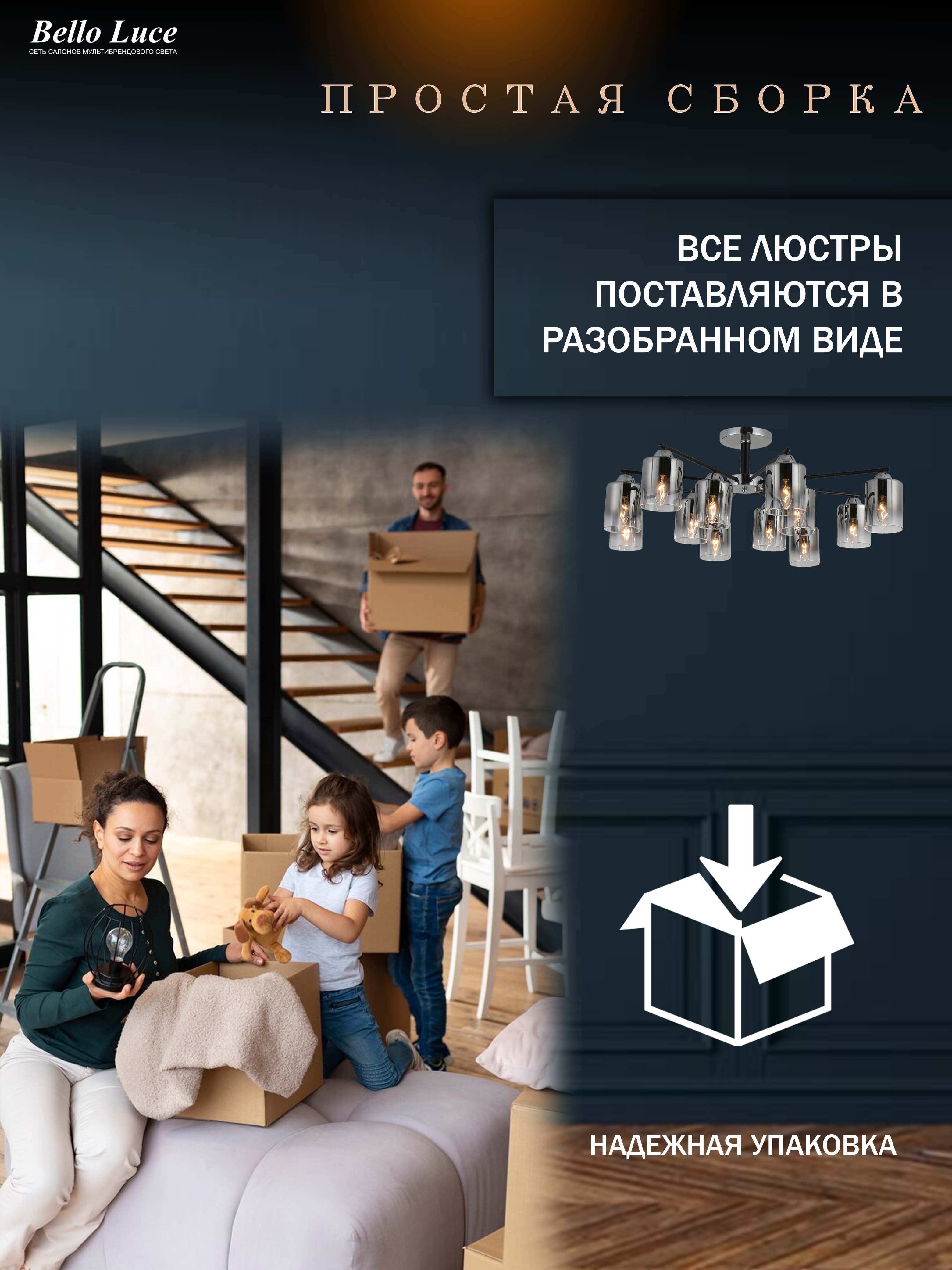 Люстра обеспечивает достаточно света для просторных помещений, делая их более комфортными и привлекательными. Настройте уровень освещения под свои предпочтения, выбрав подходящие лампы с нужной яркостью.