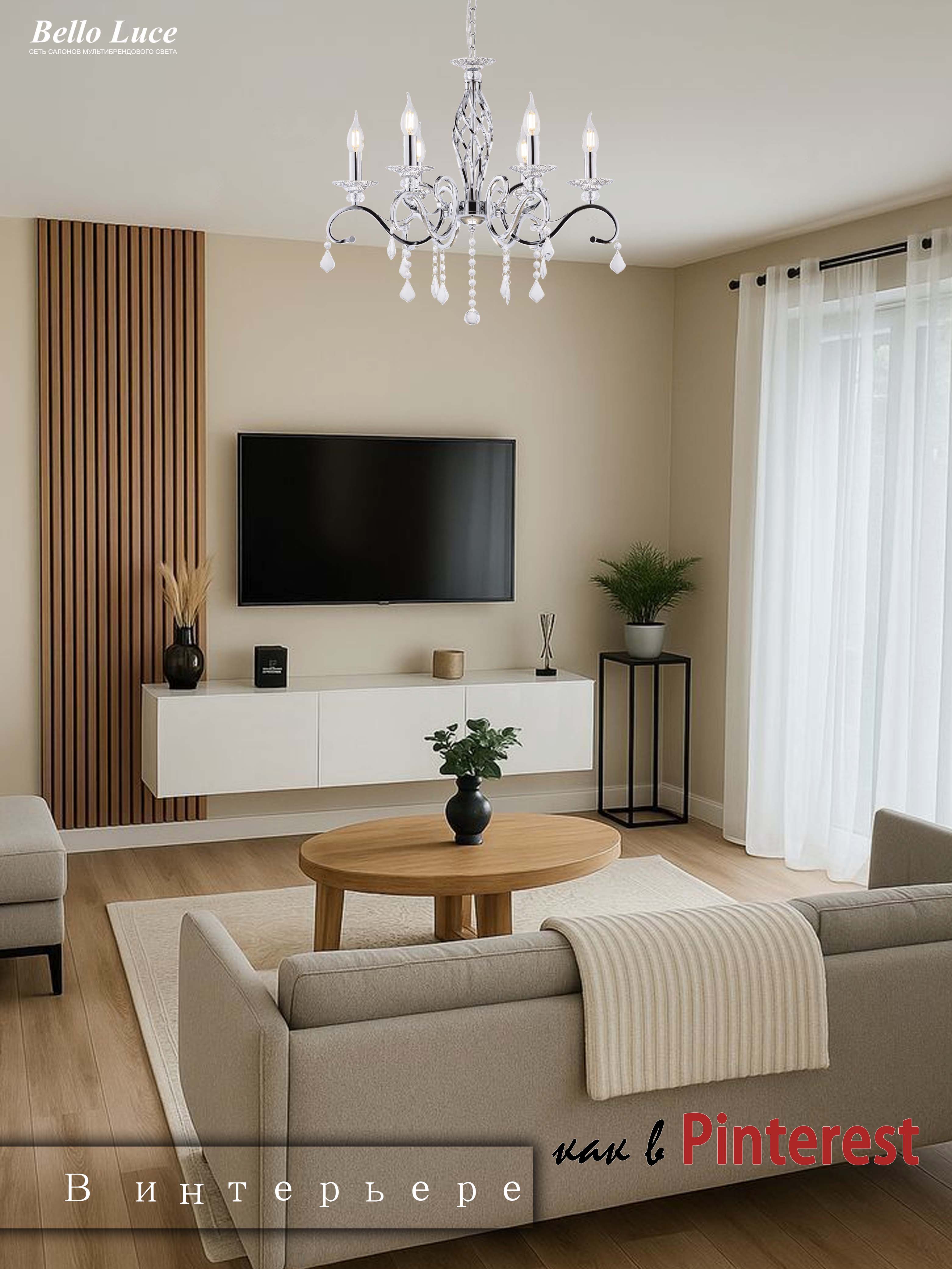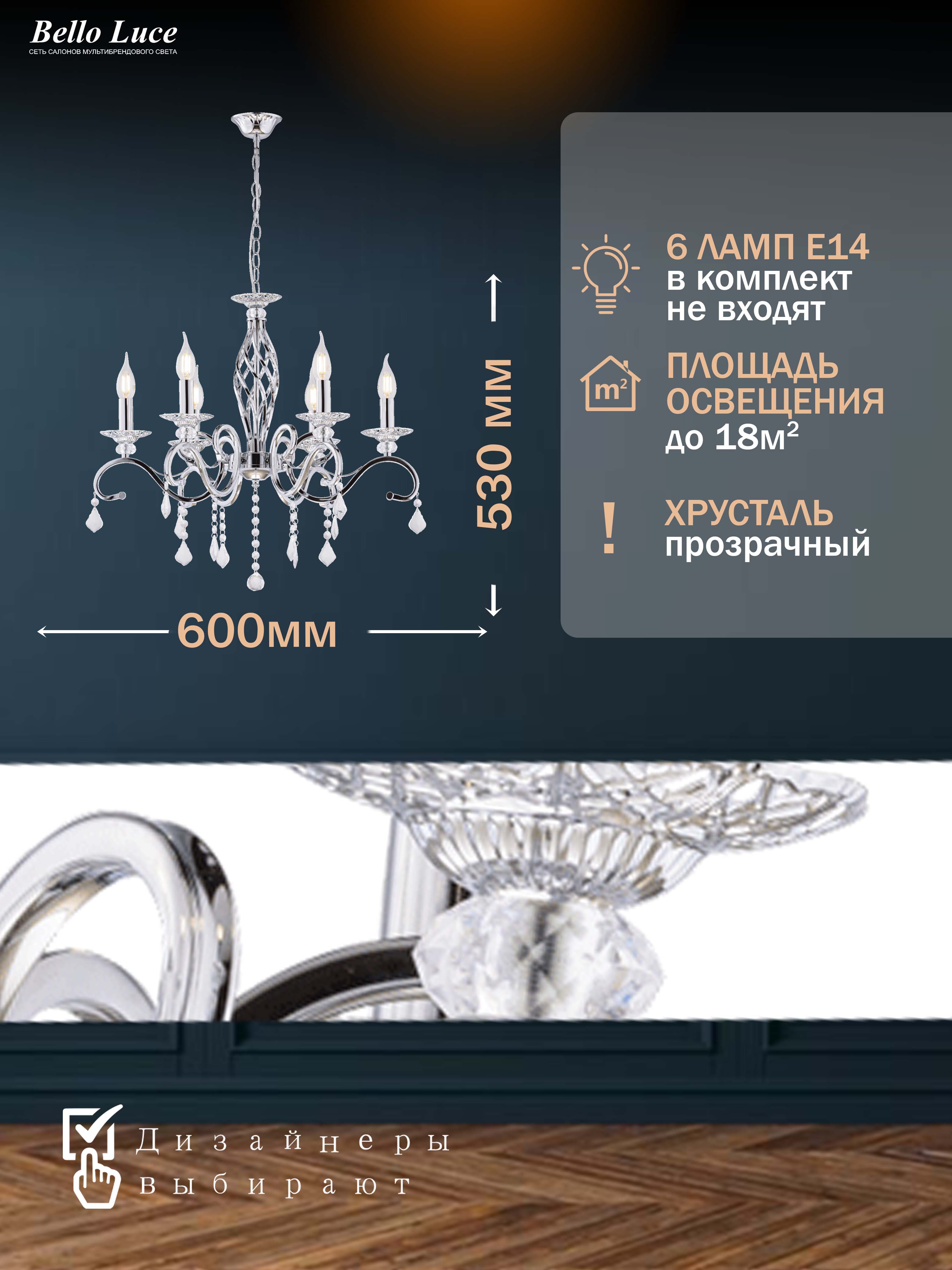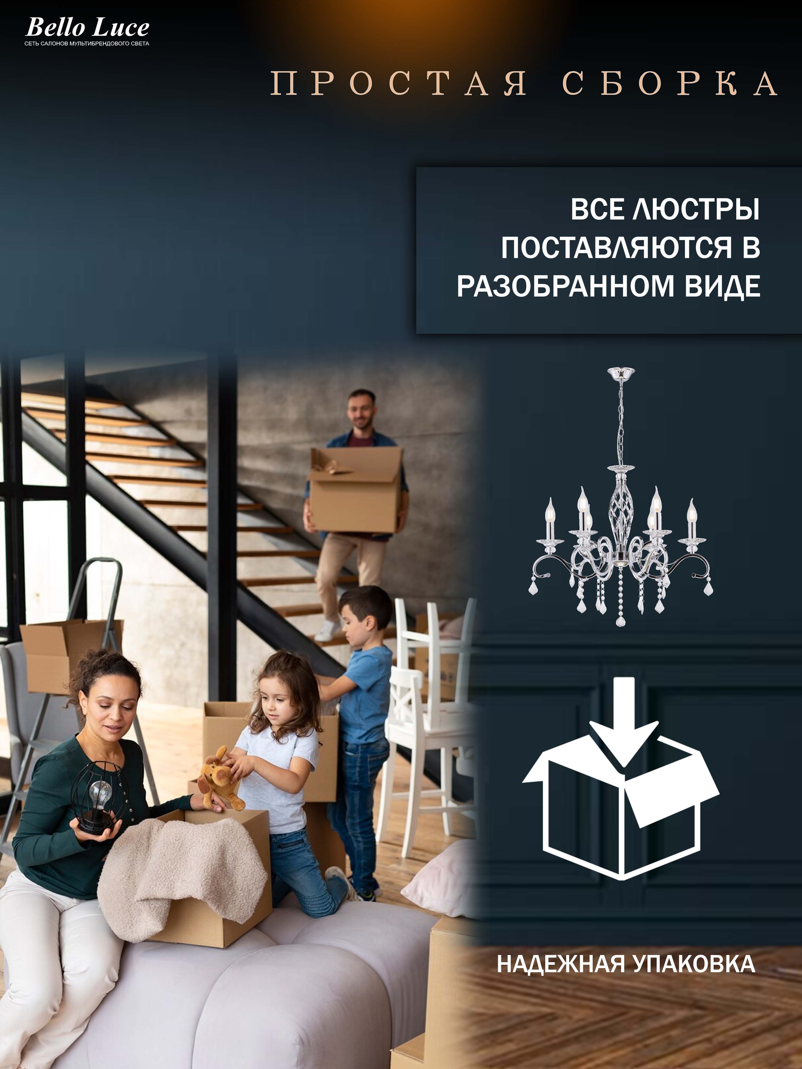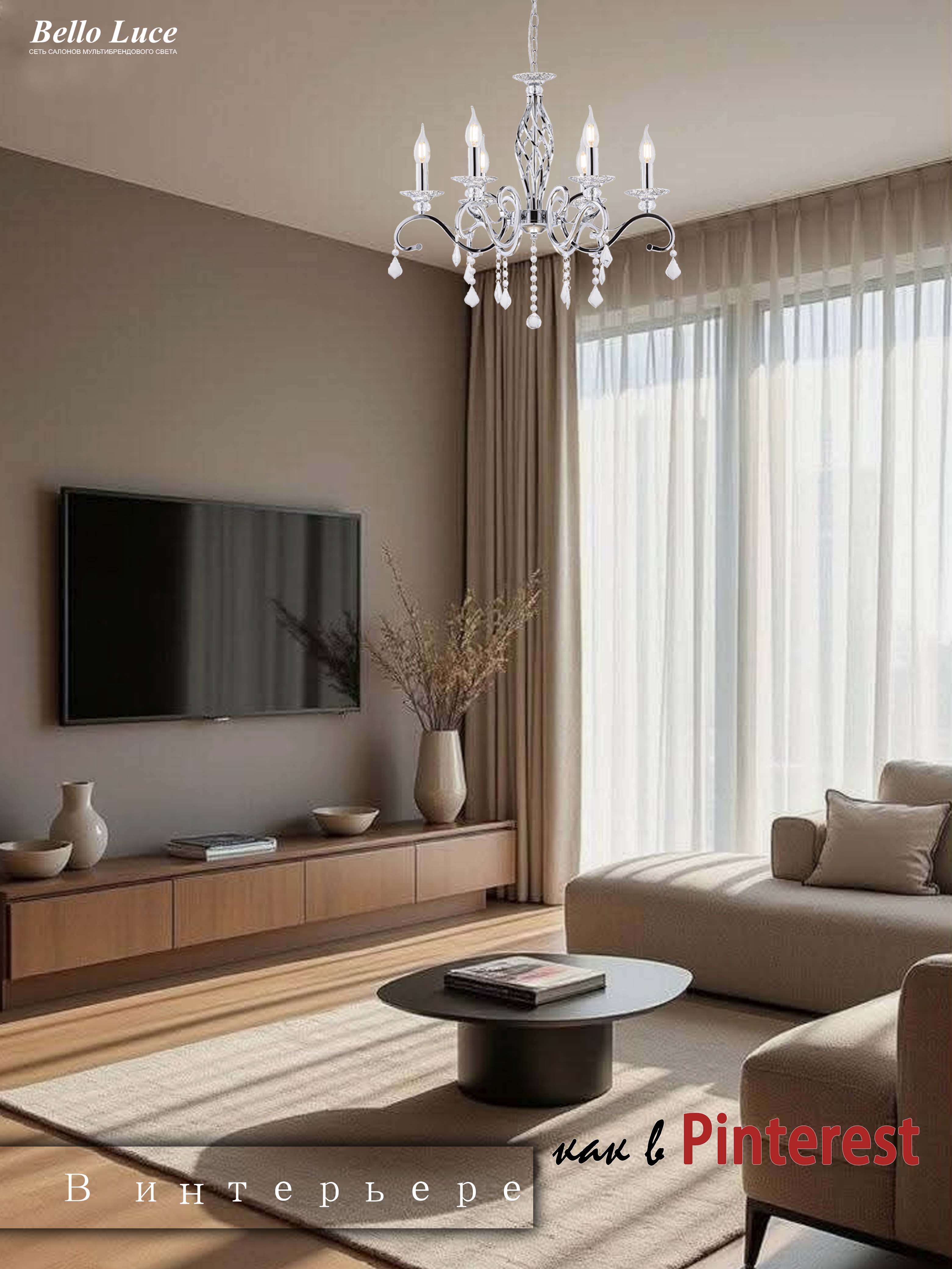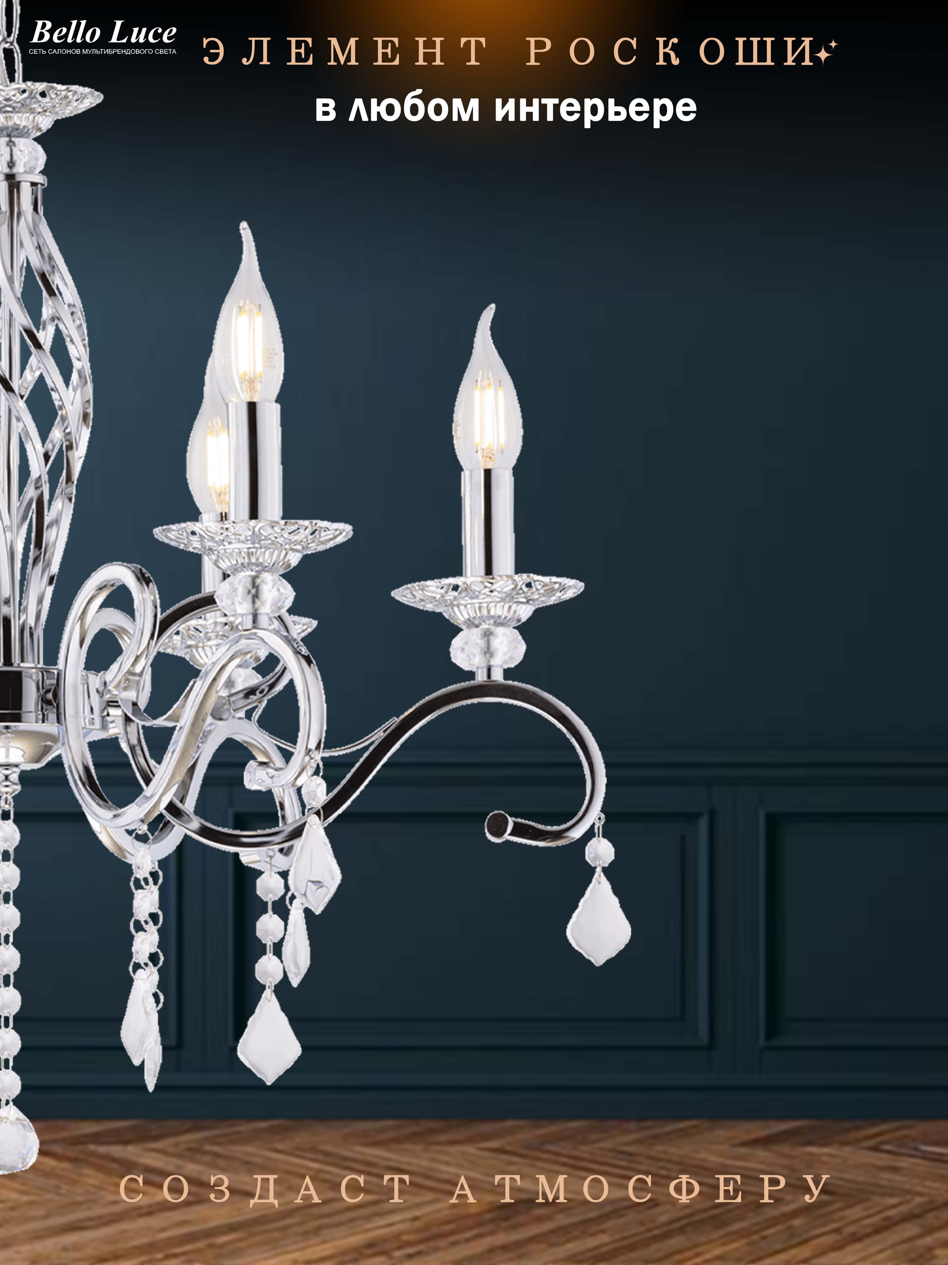 Она идеально впишется в разные интерьеры, будь то гостиная, спальня или обеденная зона. Хрустальные элементы добавляют изысканности и утонченности, а классический дизайн делает эту люстру универсальным выбором для разнообразных стилей — от традиционного до современного.