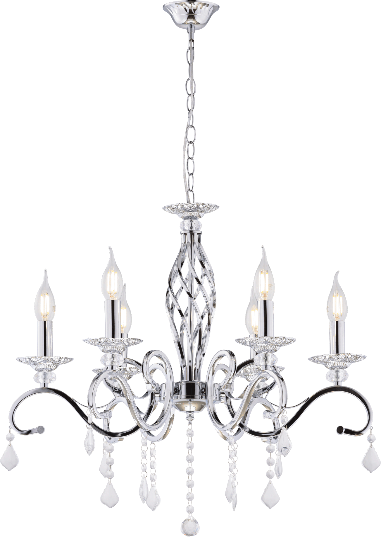 Компания Мегасвет предлагает вам оптом и в розницу Люстра Классика подвесная хром с прозрачными хрустальными подвесками на 6 ламп E14, регулировка по высоте по цене 6800 рублей.