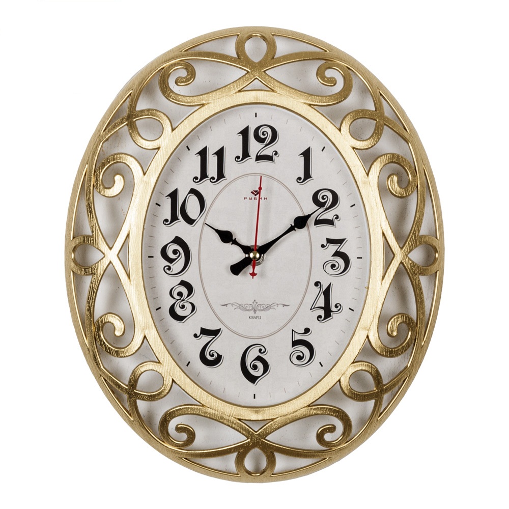 Компания Мегасвет предлагает вам оптом и в розницу Часы настенные "Классика" овал витой, золото 31х26 см по цене 870 рублей.