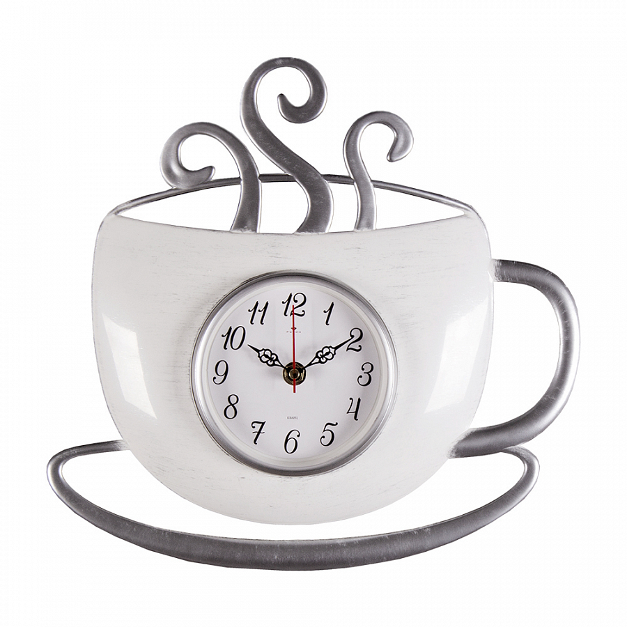 Компания Мегасвет предлагает вам оптом и в розницу Часы настенные, "Классика", чашка с дымком, белый с серебром, 31,5 х30,5 см по цене 1040 рублей.