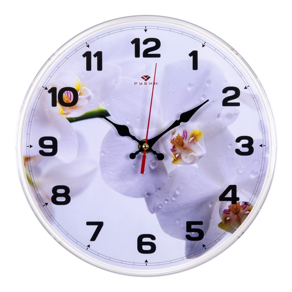 Компания Мегасвет предлагает вам оптом и в розницу Часы настенные "Орхидея белая" круг, белый d250mm по цене 684 рублей.