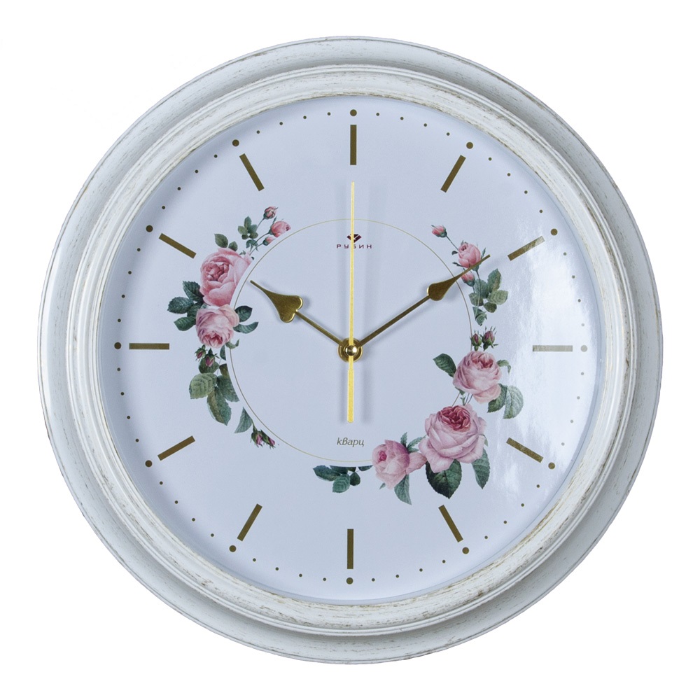 Компания Мегасвет предлагает вам оптом и в розницу Часы настенные "Летний венок" круг, белый с золотом d350mm по цене 972 рублей.