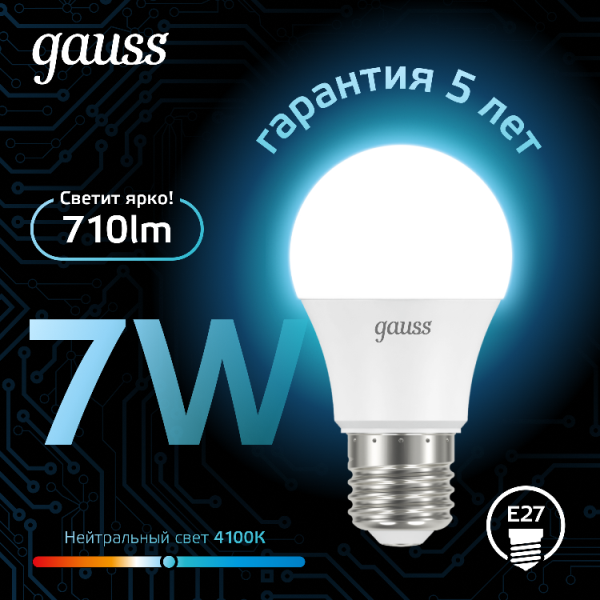 Компания Мегасвет предлагает вам оптом и в розницу Лампочка светодиодная Е27 A60 7W 710lm 4100K УПАКОВКА 10 шт. по цене 239 рублей.