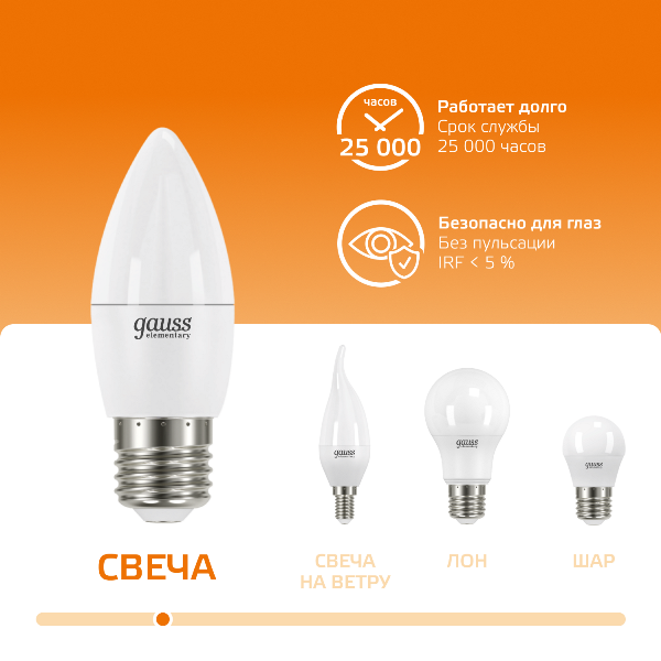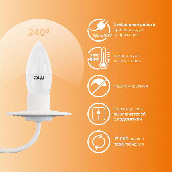 В данной линейке представлены модели различных форм, высоких мощностей и размеров, что позволяет подобрать идеальный вариант для любого помещения. Светодиодная лампа в форме "Свеча" и теплым мягким светом 3000К идеально подходит для создания уютной и комфортной атмосферы в Вашем доме. Она излучает мягкий свет, который создает атмосферу спокойствия и расслабления, отлично подходя для вечерних посиделок или романтических ужинов. Эта лампа станет прекрасным дополнением для светильников в гостиных, спальнях и столовых. Ее теплый свет усиливает уютный эффект интерьеров, подчеркивает текстуры и цвета отделки, а также прекрасно подходит для использования в декоративных осветительных приборах, таких как бра и торшеры. Лампочки экономичны в использовании, имеют длительный срок службы и надежны в эксплуатации.