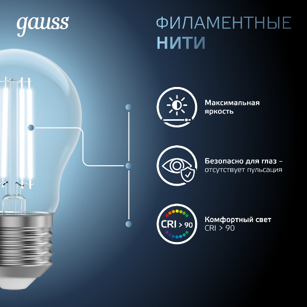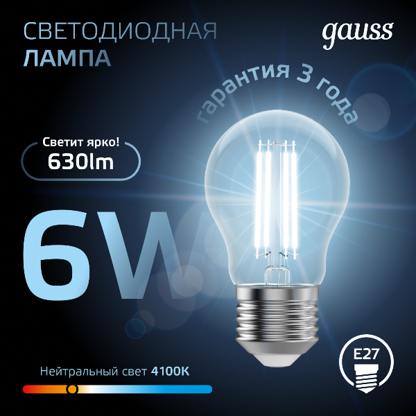 Светодиодные филаментные лампы с цоколем Е27 - идеальное решение для различных интерьеров и освещения. Нейтральный дневной свет создает комфортные условия для работы и повседневной активности, снижая утомление глаз и способствуя повышению продуктивности. Лампа излучает яркий и равномерный свет, что делает её идеальной для освещения различных помещений. Лампы сочетают в себе превосходное качество и стильный дизайн, идеально подходящий для использования в хрустальных люстрах и открытых светильниках.