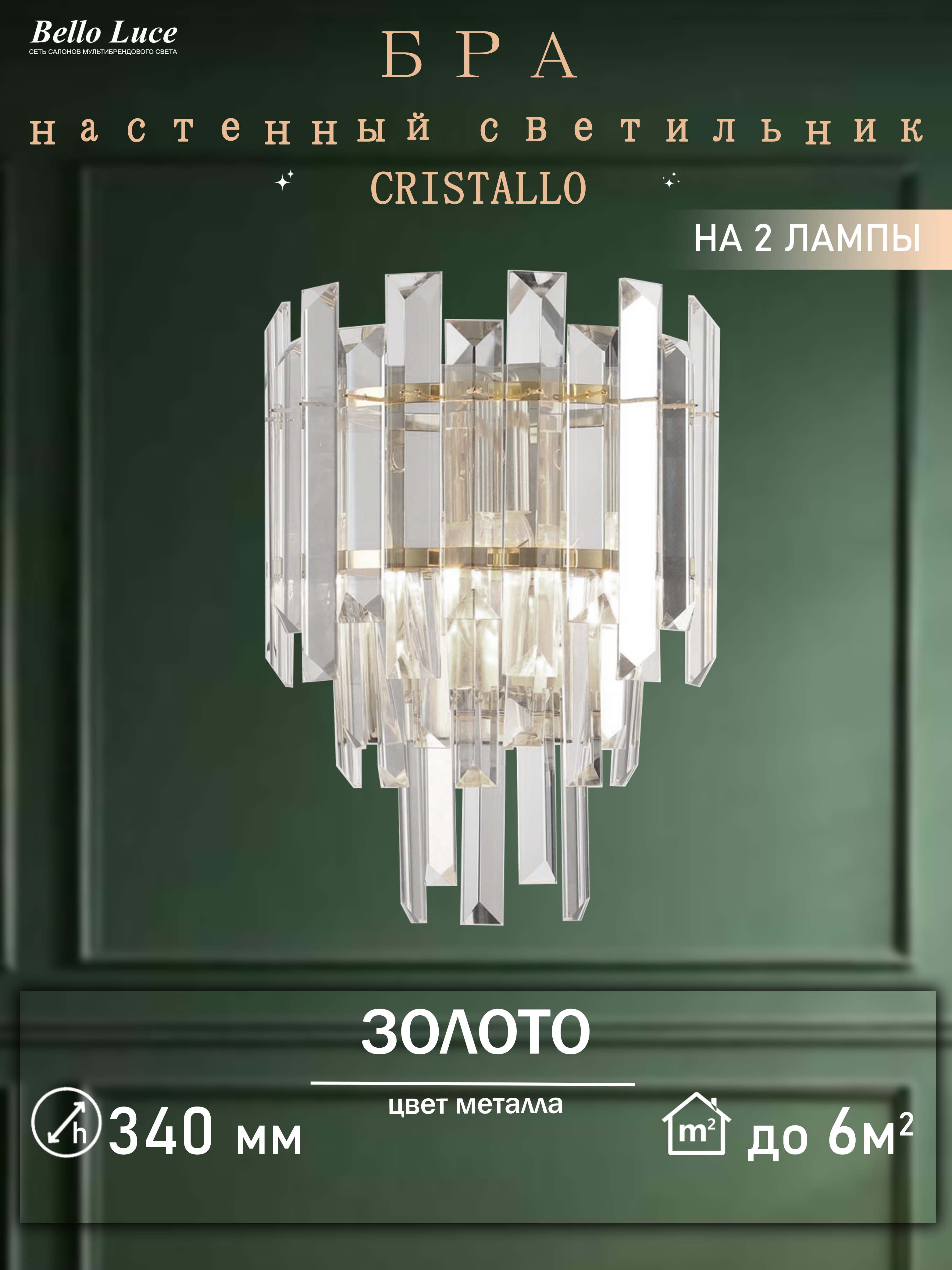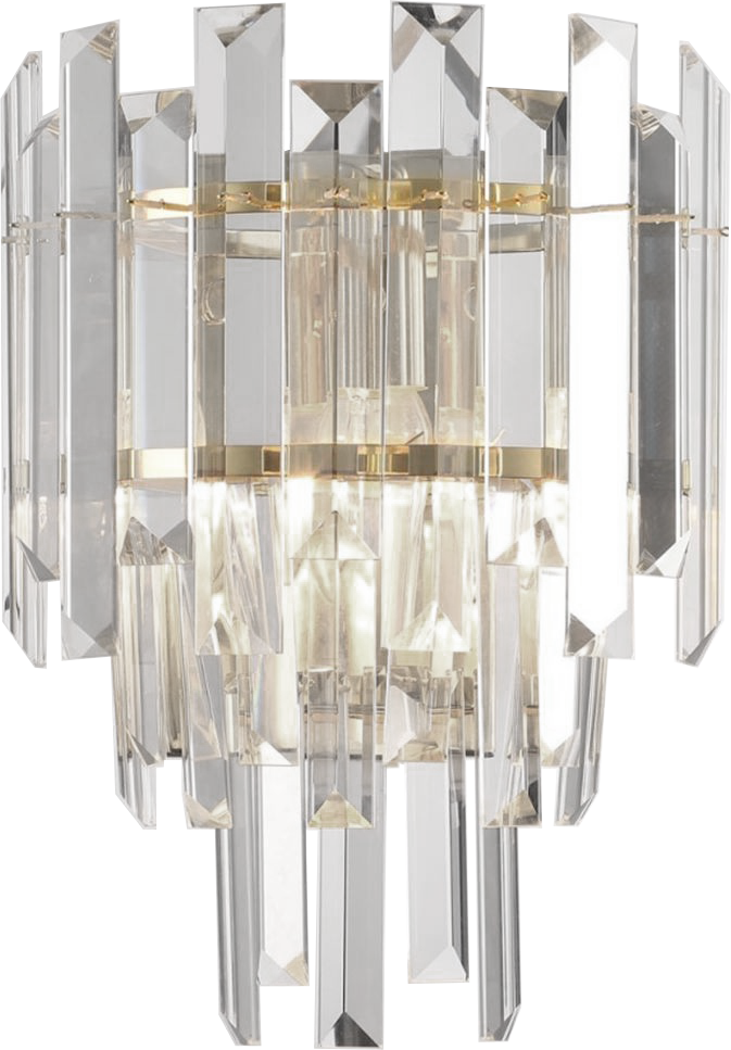 Компания Мегасвет предлагает вам оптом и в розницу Светильник настенный Cristallo золото с прозрачными хрустальными подвесками, бра на 2 лампы E14 по цене 4070 рублей.