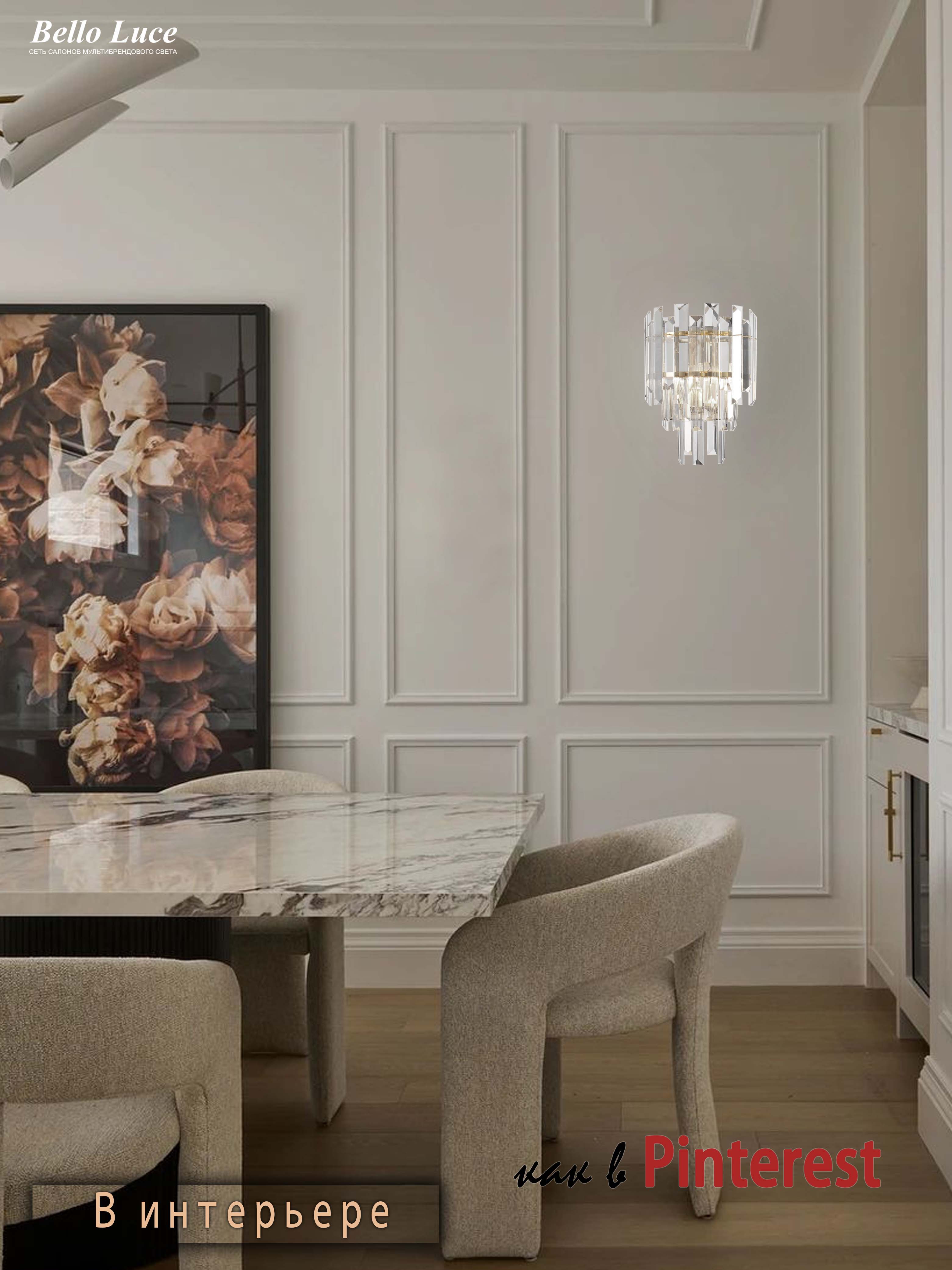 Настенный светильник станет отличным решением для создания уютной атмосферы в вашем интерьере. Изумительный хрусталь и элегантная отделка придают элементам роскоши и изысканности, делая его привлекательным акцентом любого помещения.
