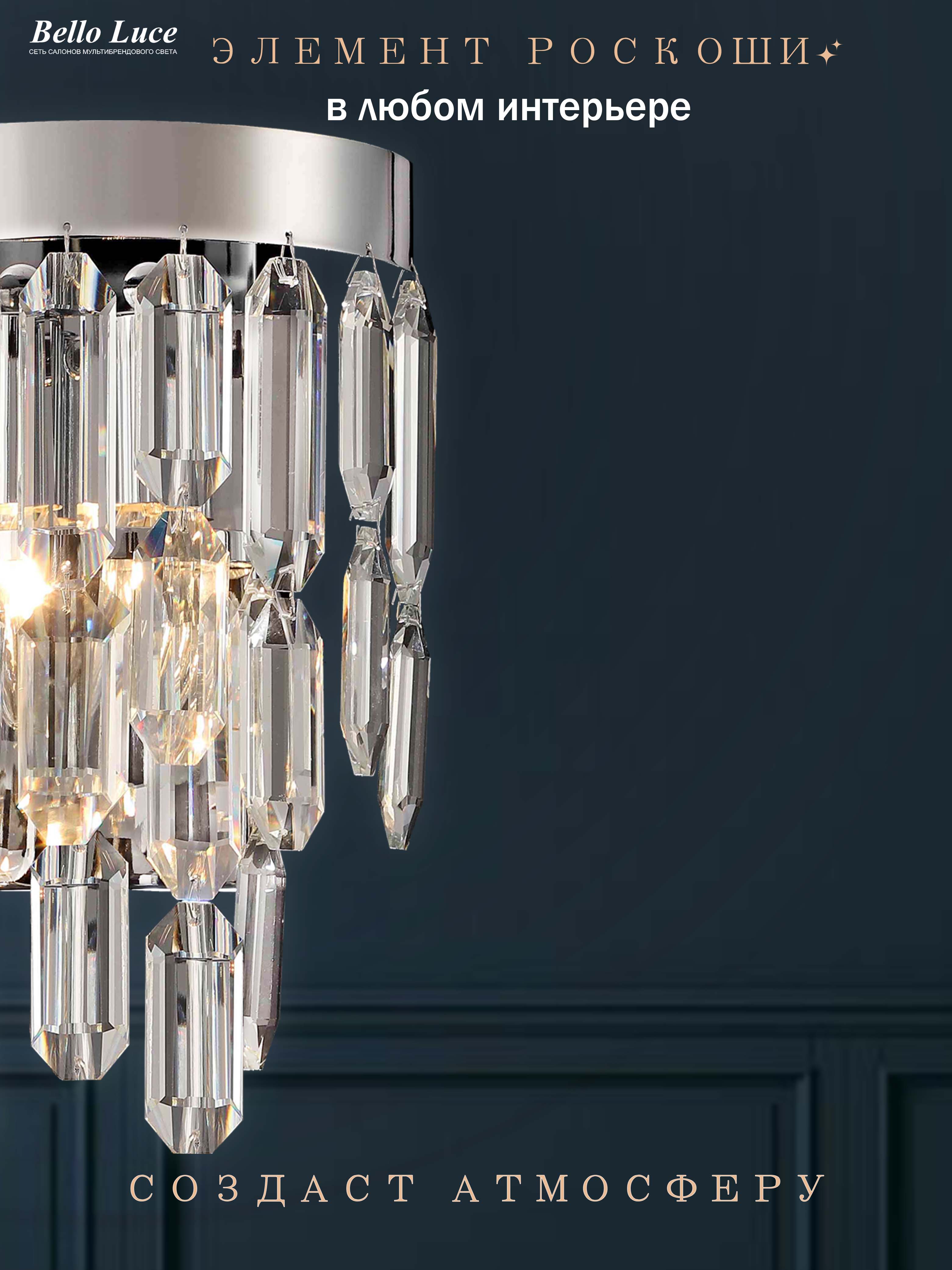 Светильник обеспечивает равномерное и мягкое освещение, что позволяет использовать его как для общего освещения, так и для создания акцентного света. Хрустальные элементы красиво рассеивают свет, создавая завораживающую игру света и теней. Обратите внимание на качество материалов и выполнения прибора — они делают его надежным и долговечным.