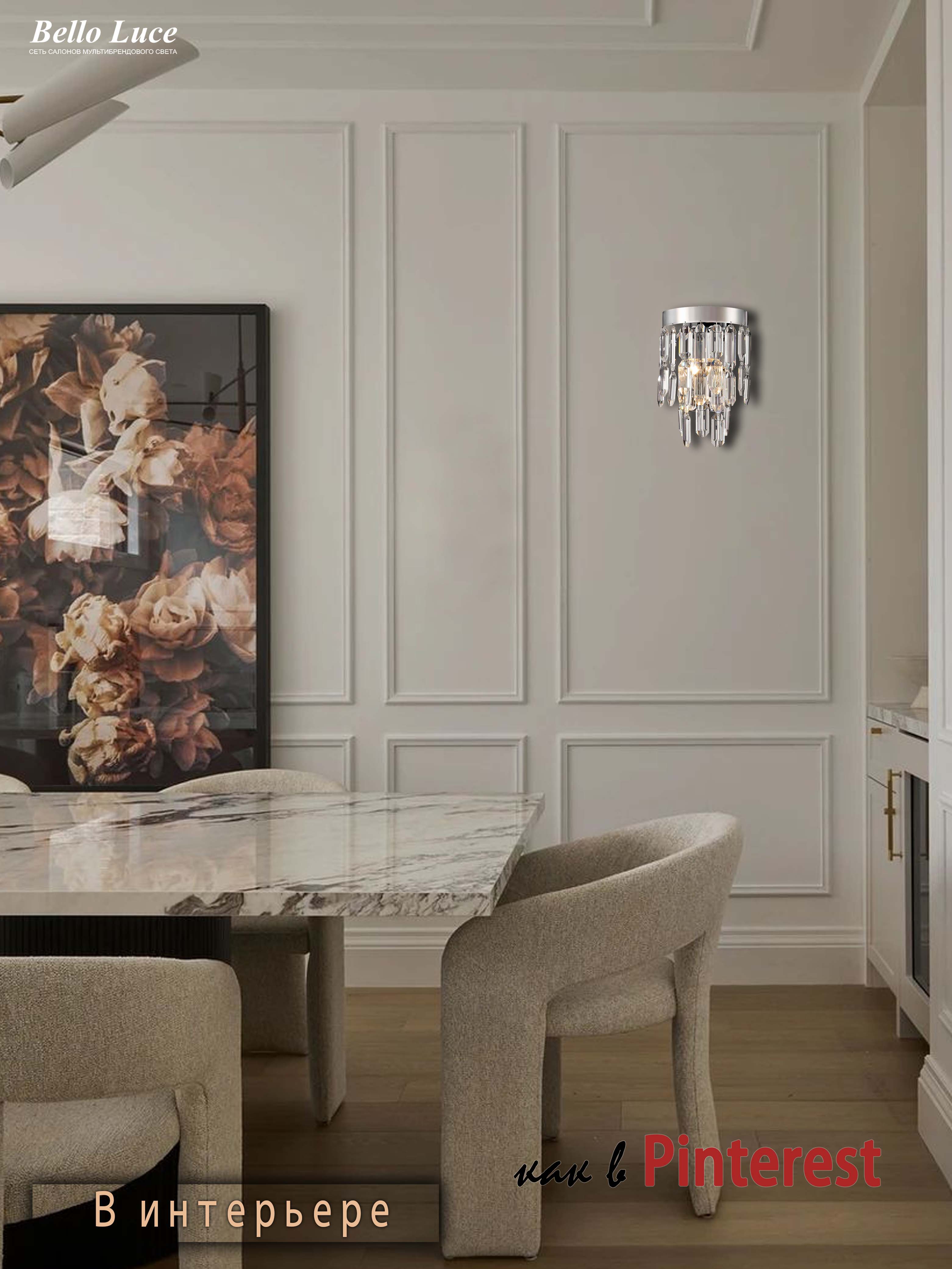 Настенный светильник станет отличным решением для создания уютной атмосферы в вашем интерьере. Изумительный хрусталь и элегантная отделка придают элементам роскоши и изысканности, делая его привлекательным акцентом любого помещения.