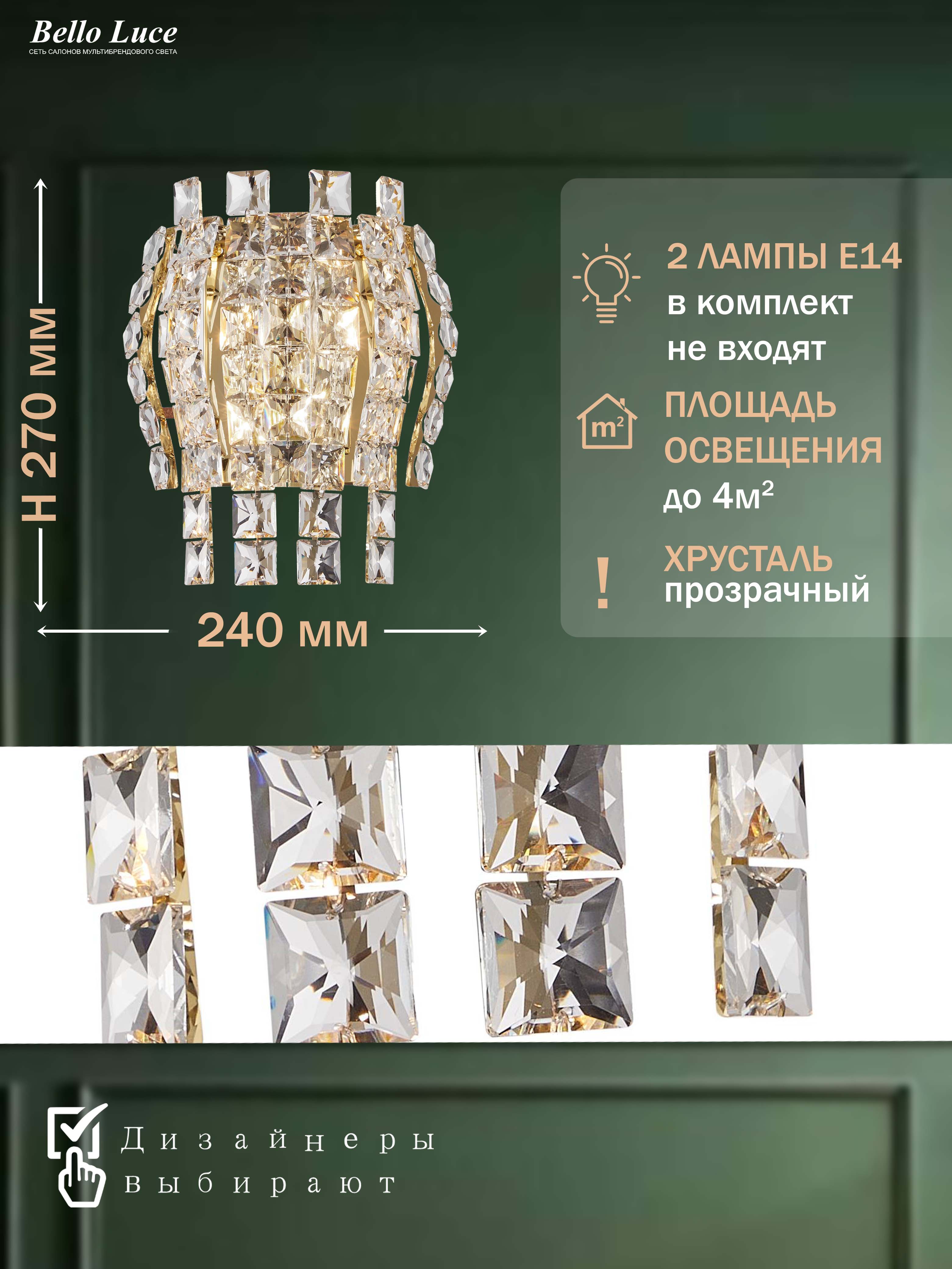 Представляем вашему вниманию элегантный хрустальный настенный светильник, это идеальный выбор для тех, кто ценит современный и стильный дизайн в интерьере. Изумительный хрусталь и элегантная отделка придают элементам роскоши и изысканности, делая его привлекательным акцентом любого помещения.