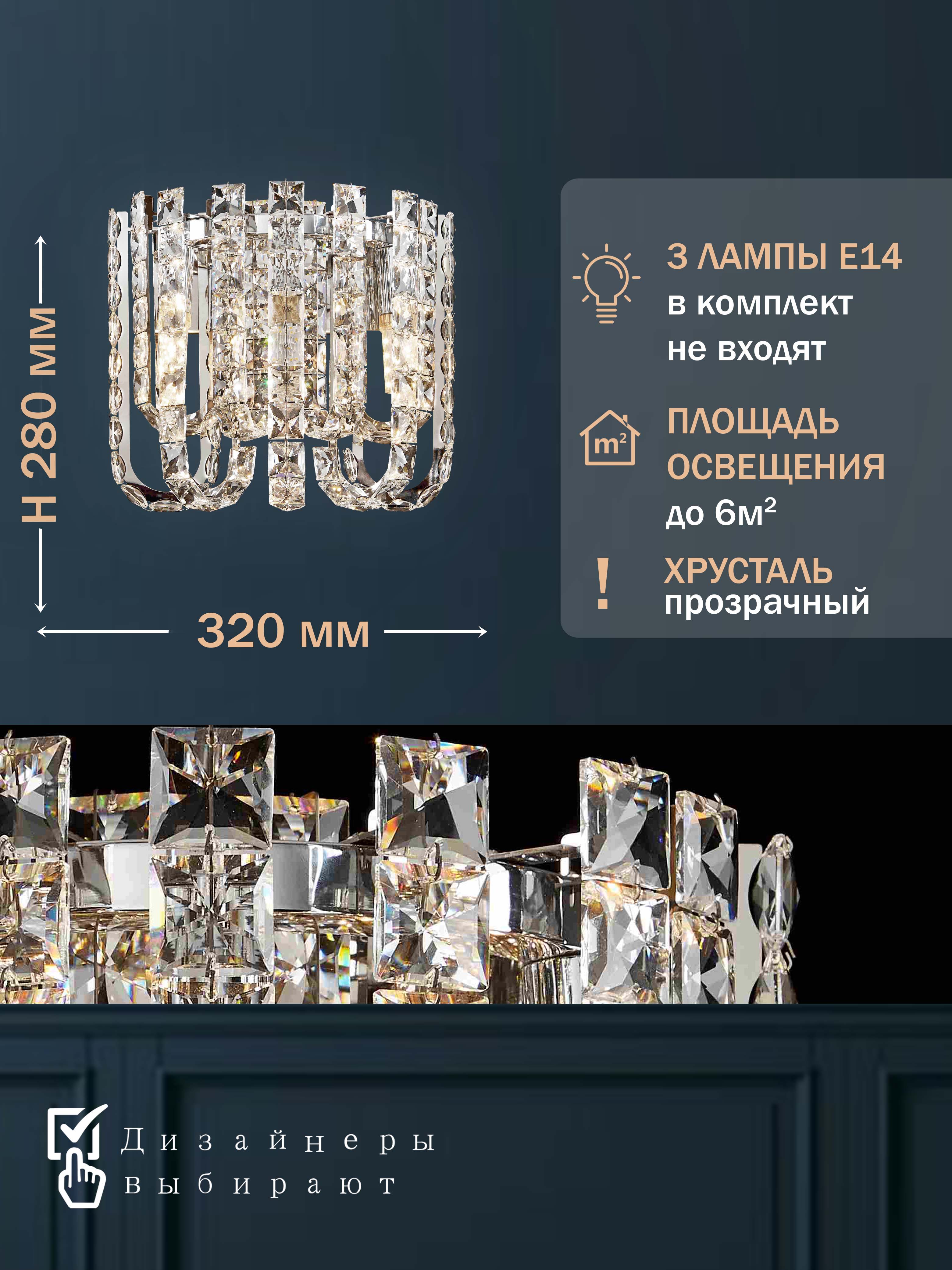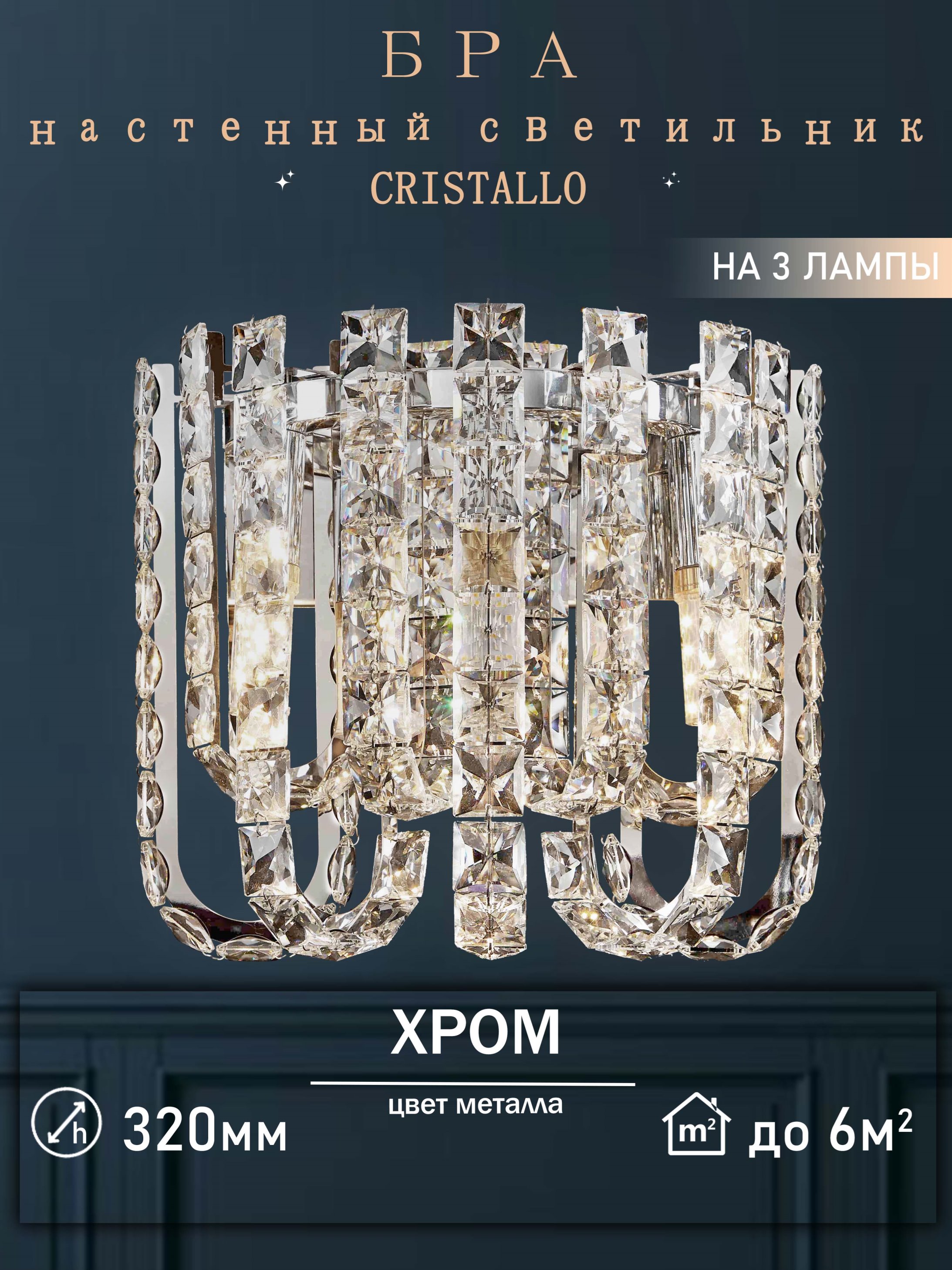 Компания Мегасвет предлагает вам оптом и в розницу Светильник Cristallo хрустальный хром настенный с прозрачным хрустальным декором бра на 2 лампы E14 по цене 8910 рублей.
