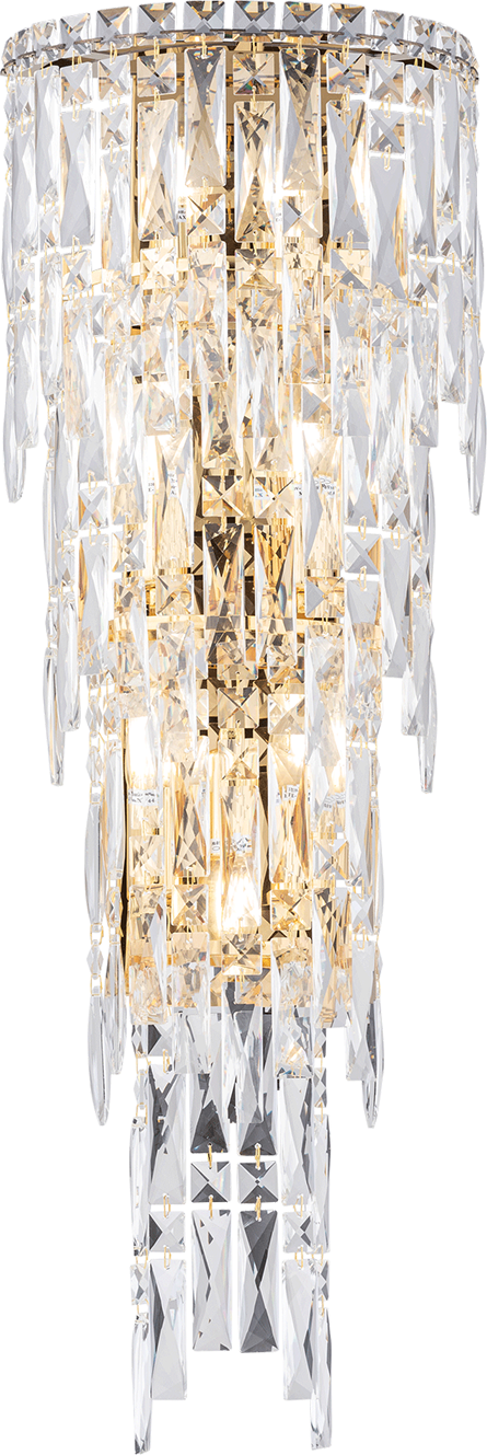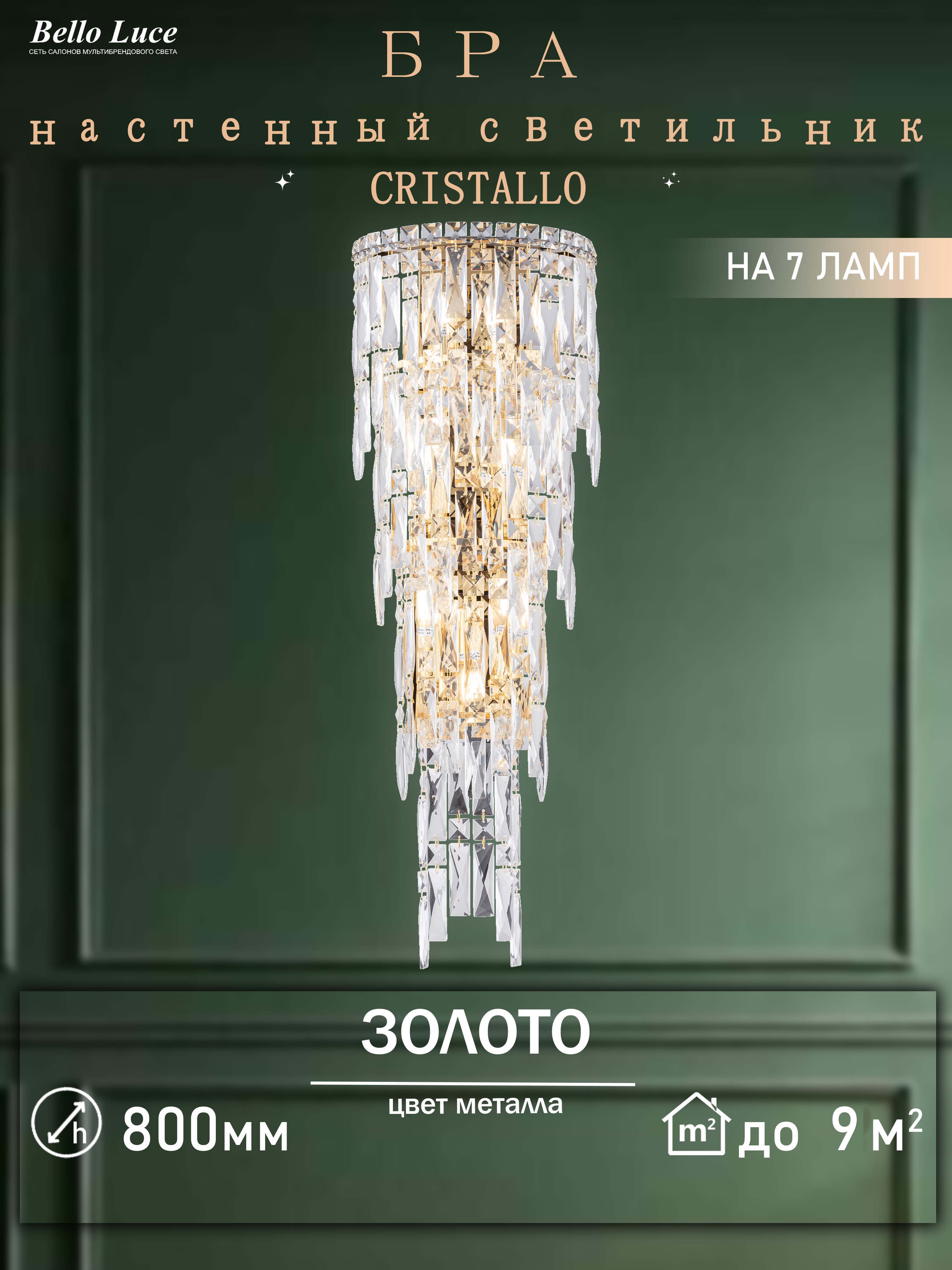 Компания Мегасвет предлагает вам оптом и в розницу Светильник Cristallo хрустальный золото настенный с прозрачными хрустальными подвесками бра на 7 ламп E14 по цене 9515 рублей.
