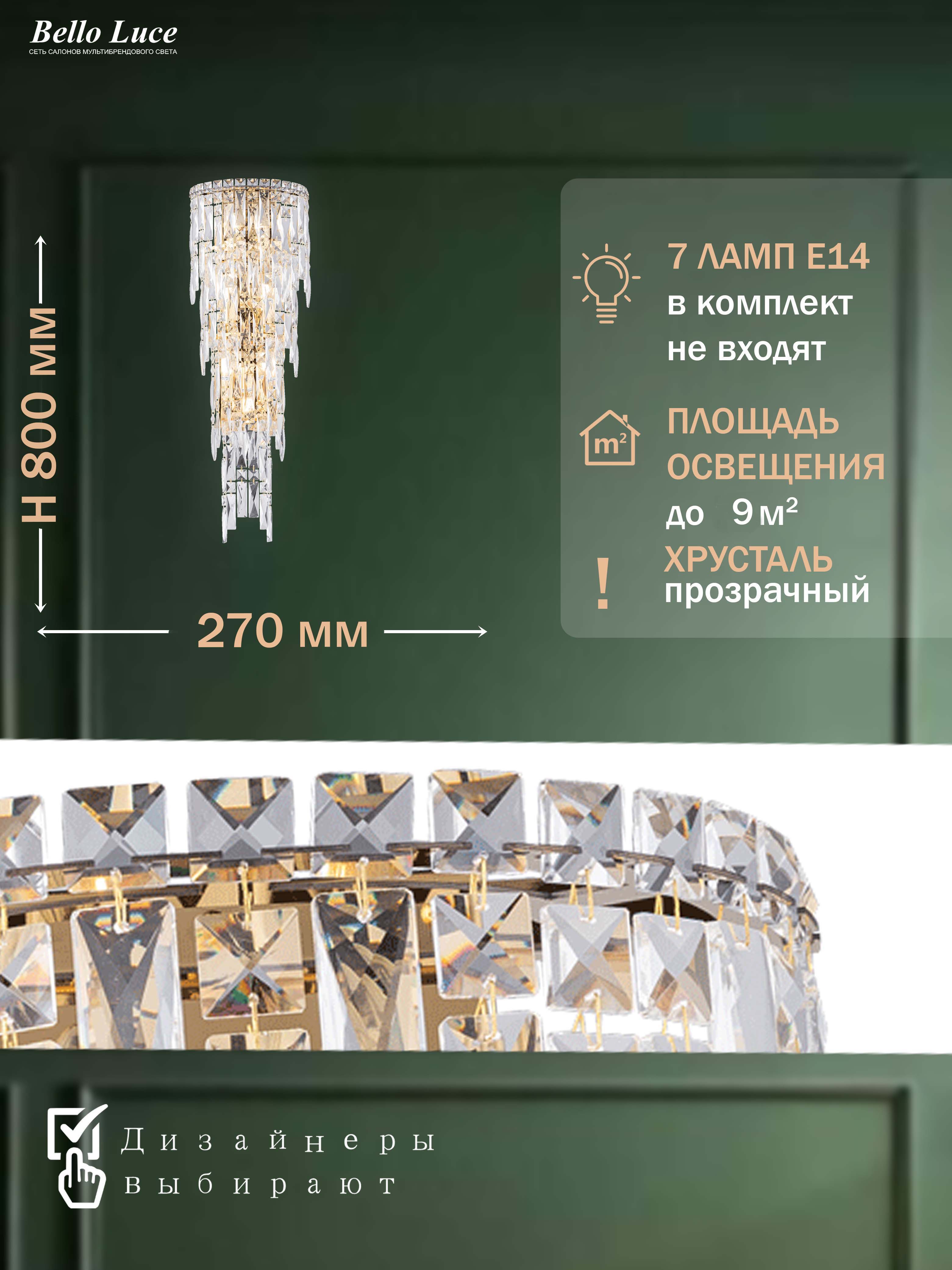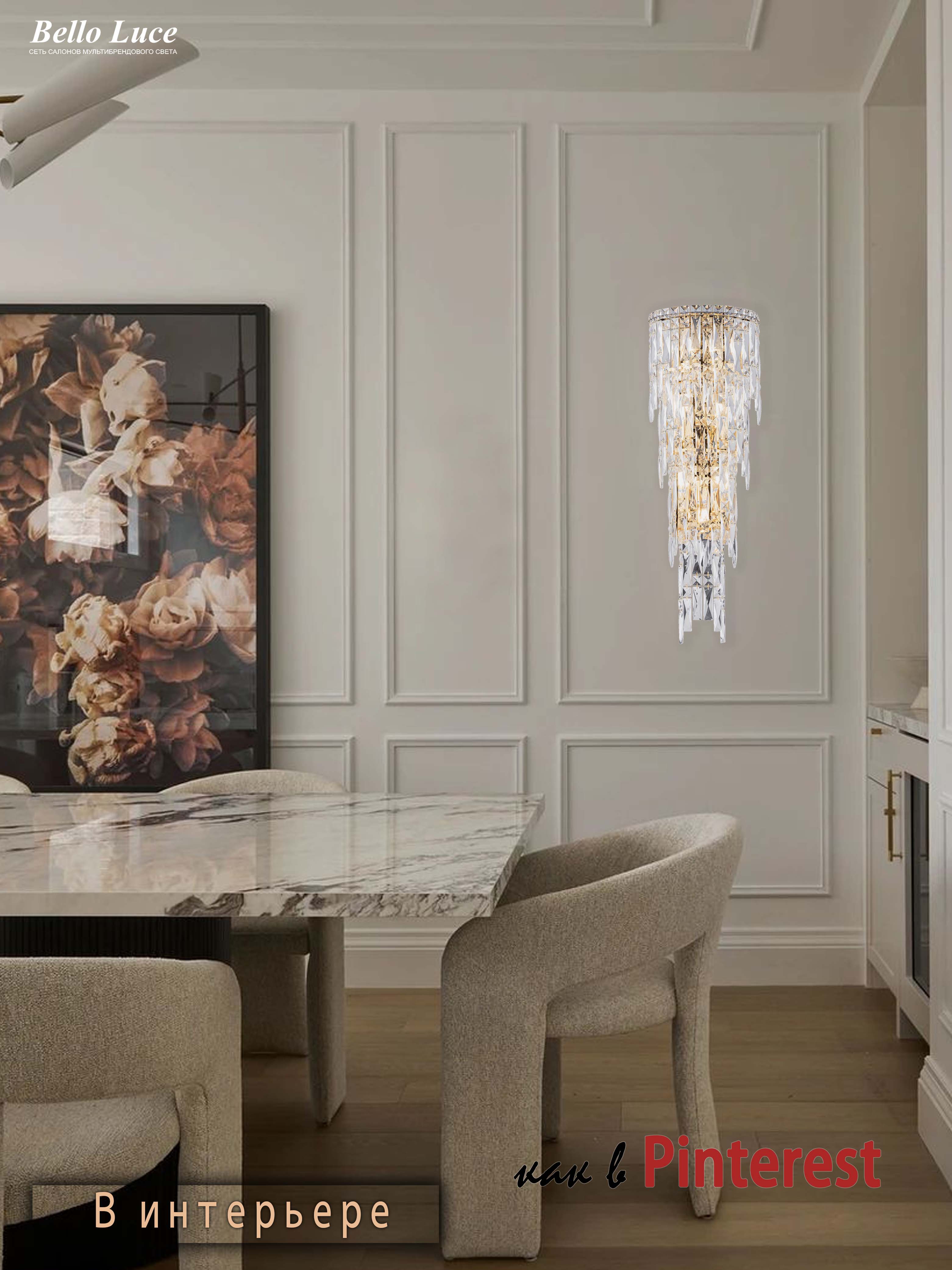 Представляем вашему вниманию элегантный хрустальный настенный светильник, это идеальный выбор для тех, кто ценит современный и стильный дизайн в интерьере. Изумительный хрусталь и элегантная отделка придают элементам роскоши и изысканности, делая его привлекательным акцентом любого помещения.