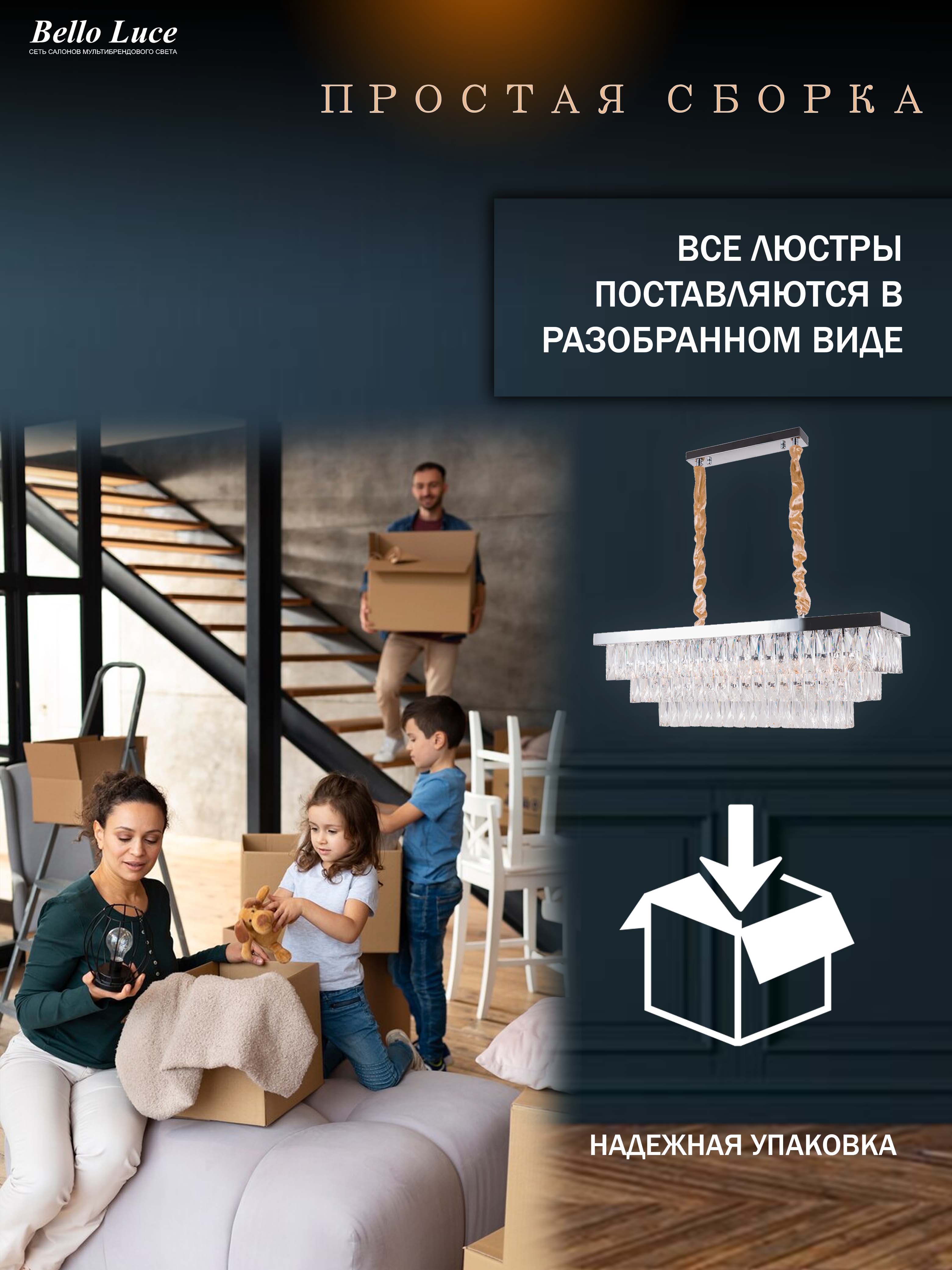 Благодаря своему лаконичному дизайну, люстра будет прекрасно смотреться как в гостиной, так и в спальне или кухне. Она не только освещает пространство, но и выступает в роли художественного элемента, способного преобразить любой уголок вашего дома. Она станет отличным дополнением к современному интерьеру, придавая ему завершенность.