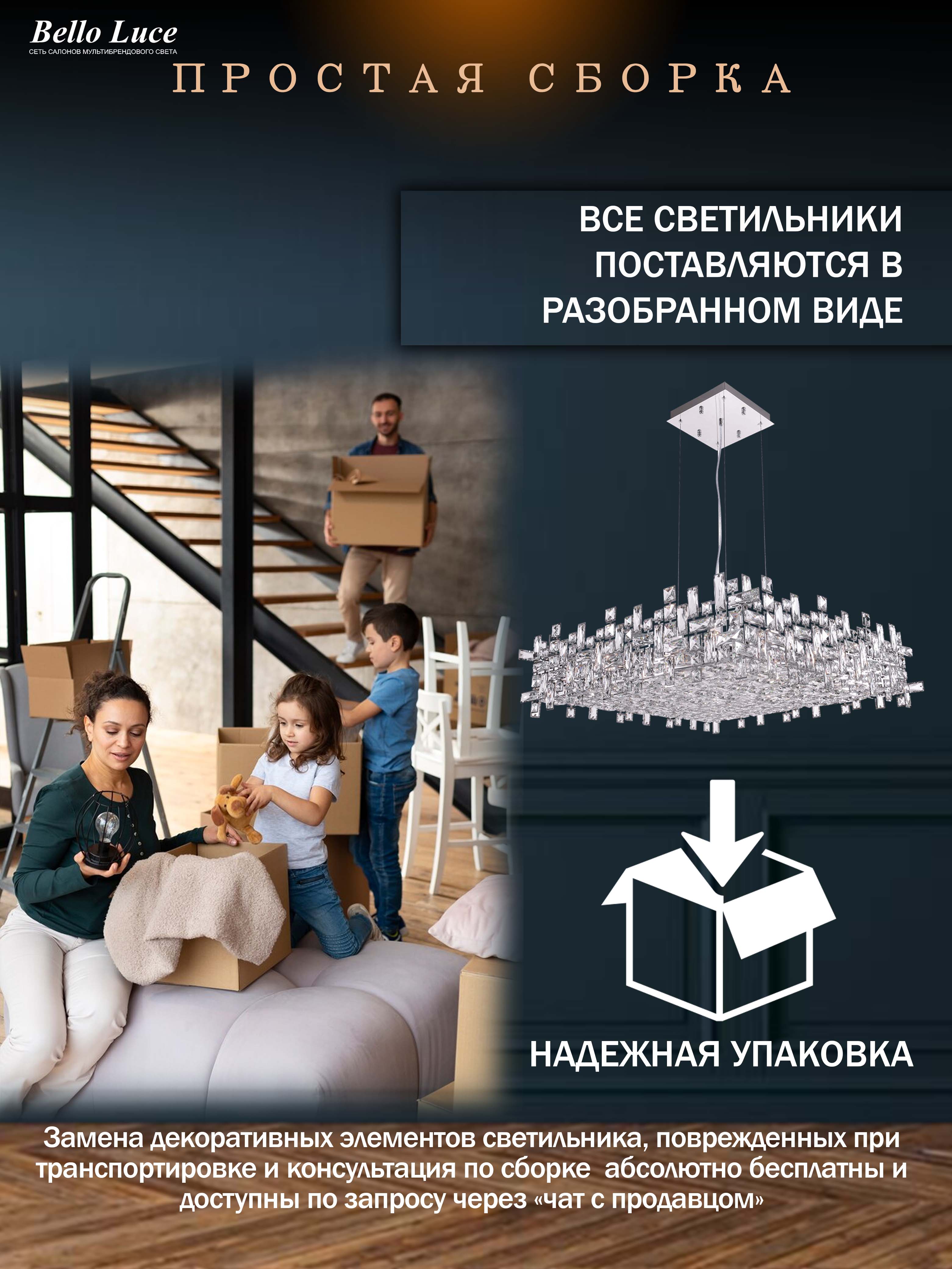 Благодаря своему лаконичному дизайну, люстра будет прекрасно смотреться как в гостиной, так и в спальне или кухне. Она не только освещает пространство, но и выступает в роли художественного элемента, способного преобразить любой уголок вашего дома. Она станет отличным дополнением к современному интерьеру, придавая ему завершенность.