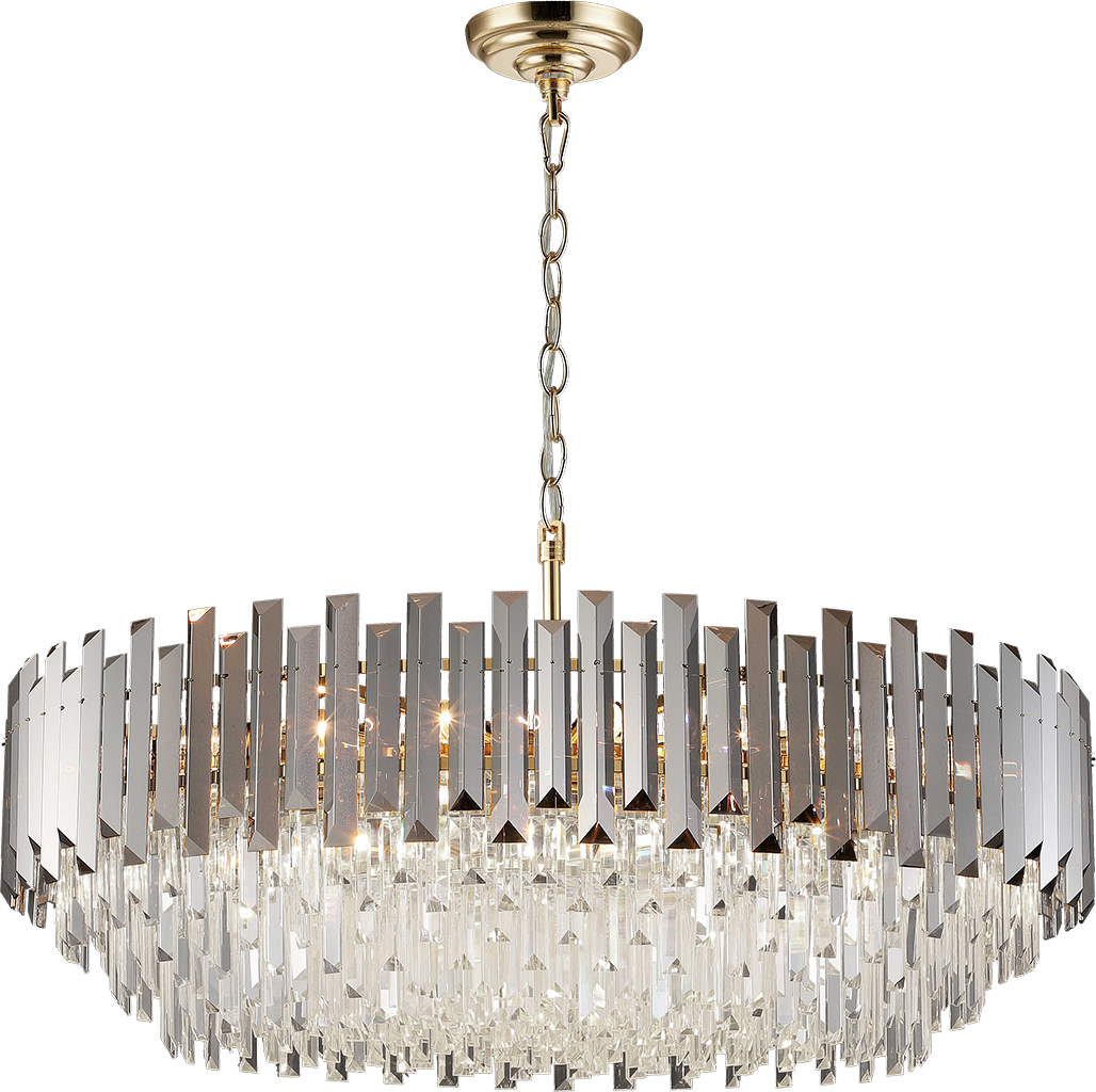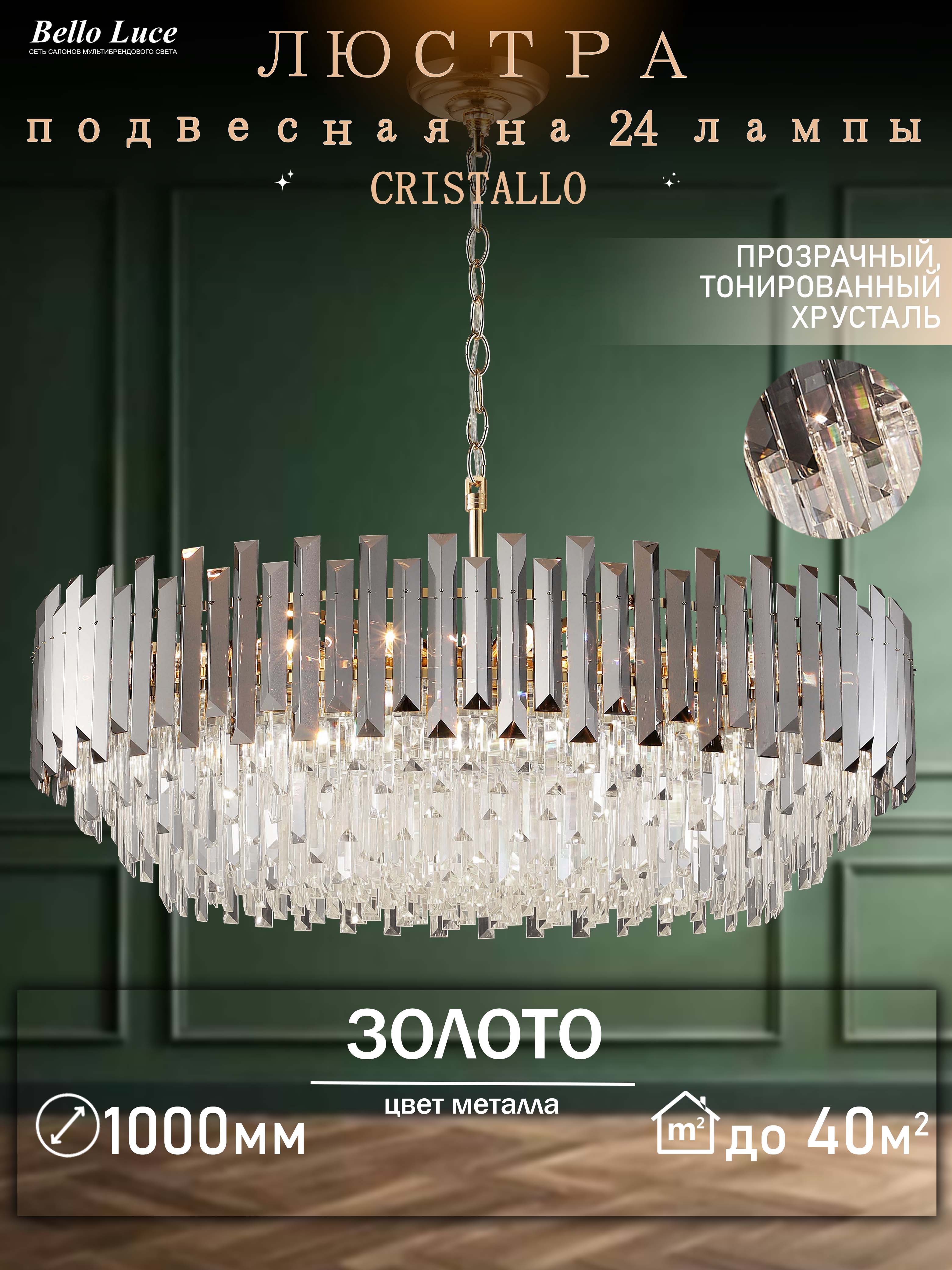 Компания Мегасвет предлагает вам оптом и в розницу Люстра Cristallo хрустальная золото подвесная с прозрачными хрустальными подвесками на 24 ламп E14, регулировка по высоте по цене 56188 рублей.