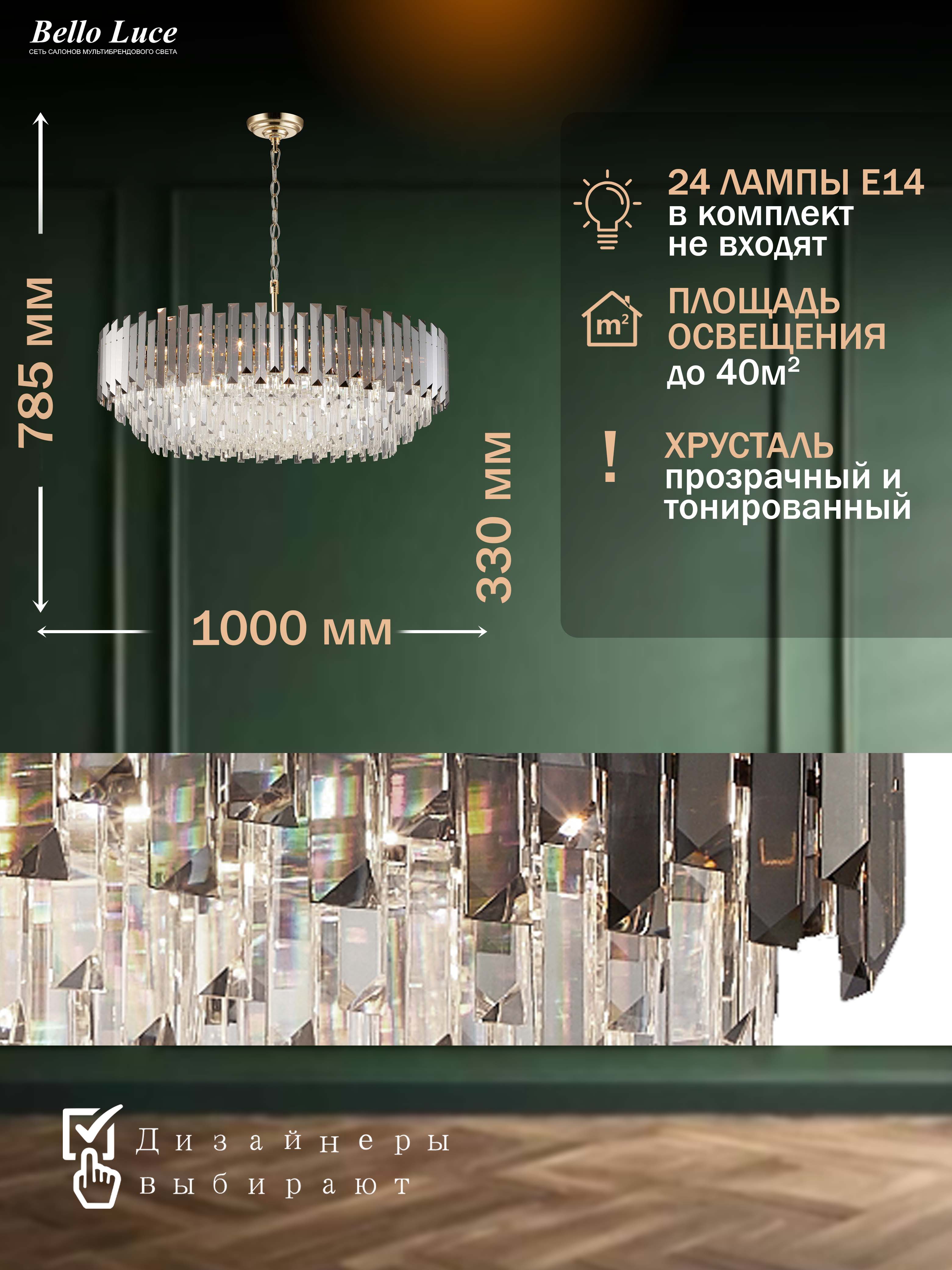 | Материал плафона / абажура | Хрусталь |