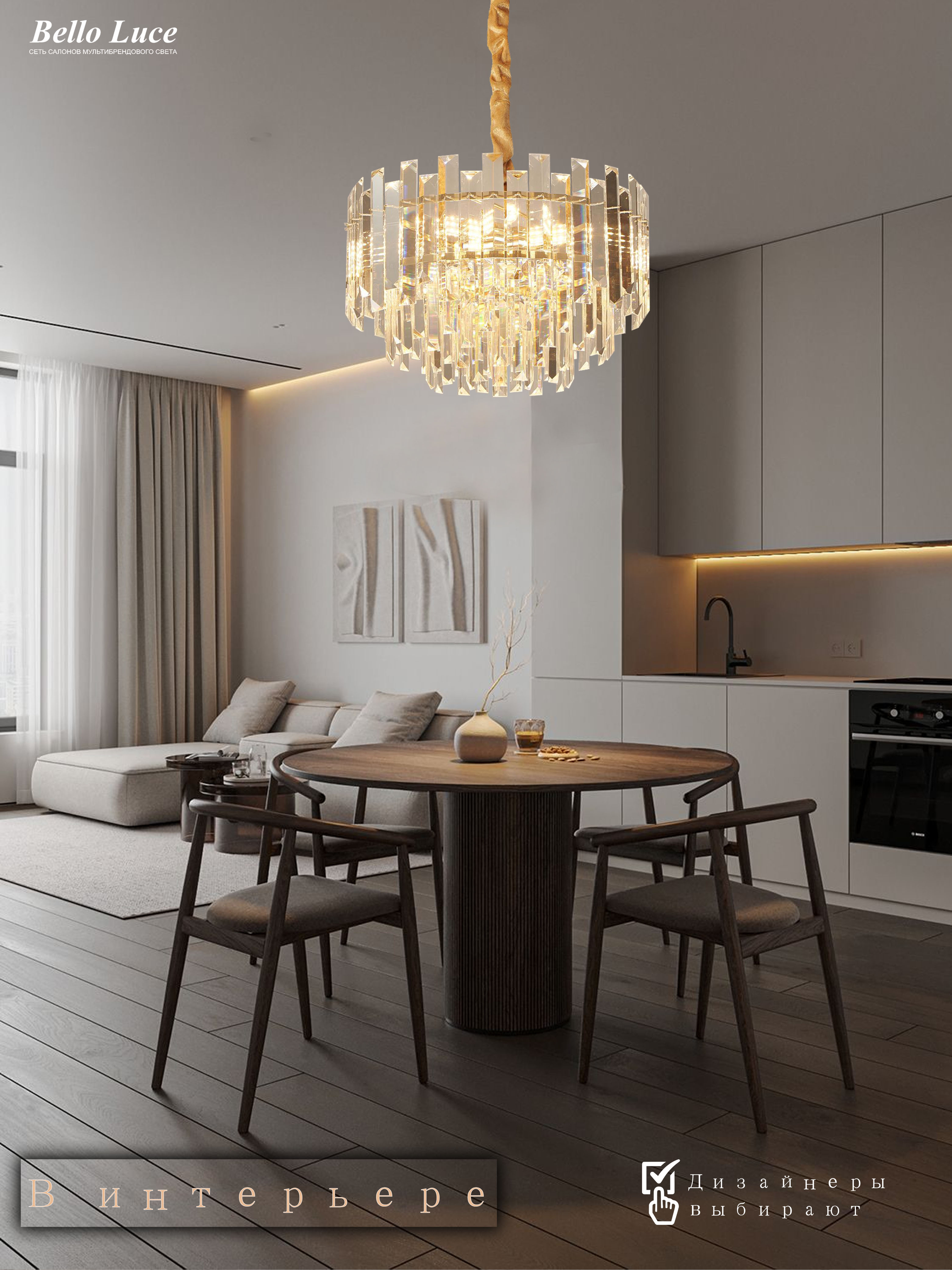 Благодаря своему лаконичному дизайну, люстра будет прекрасно смотреться как в гостиной, так и в спальне или кухне. Она не только освещает пространство, но и выступает в роли художественного элемента, способного преобразить любой уголок вашего дома. Она станет отличным дополнением к современному интерьеру, придавая ему завершенность.