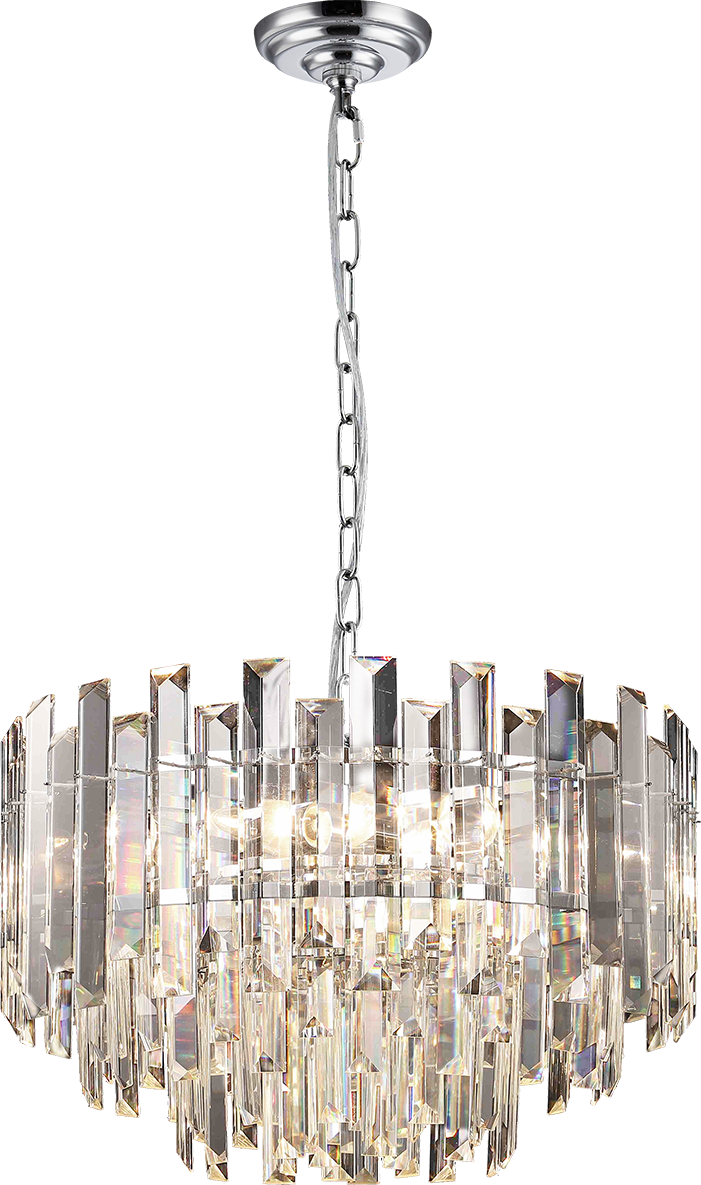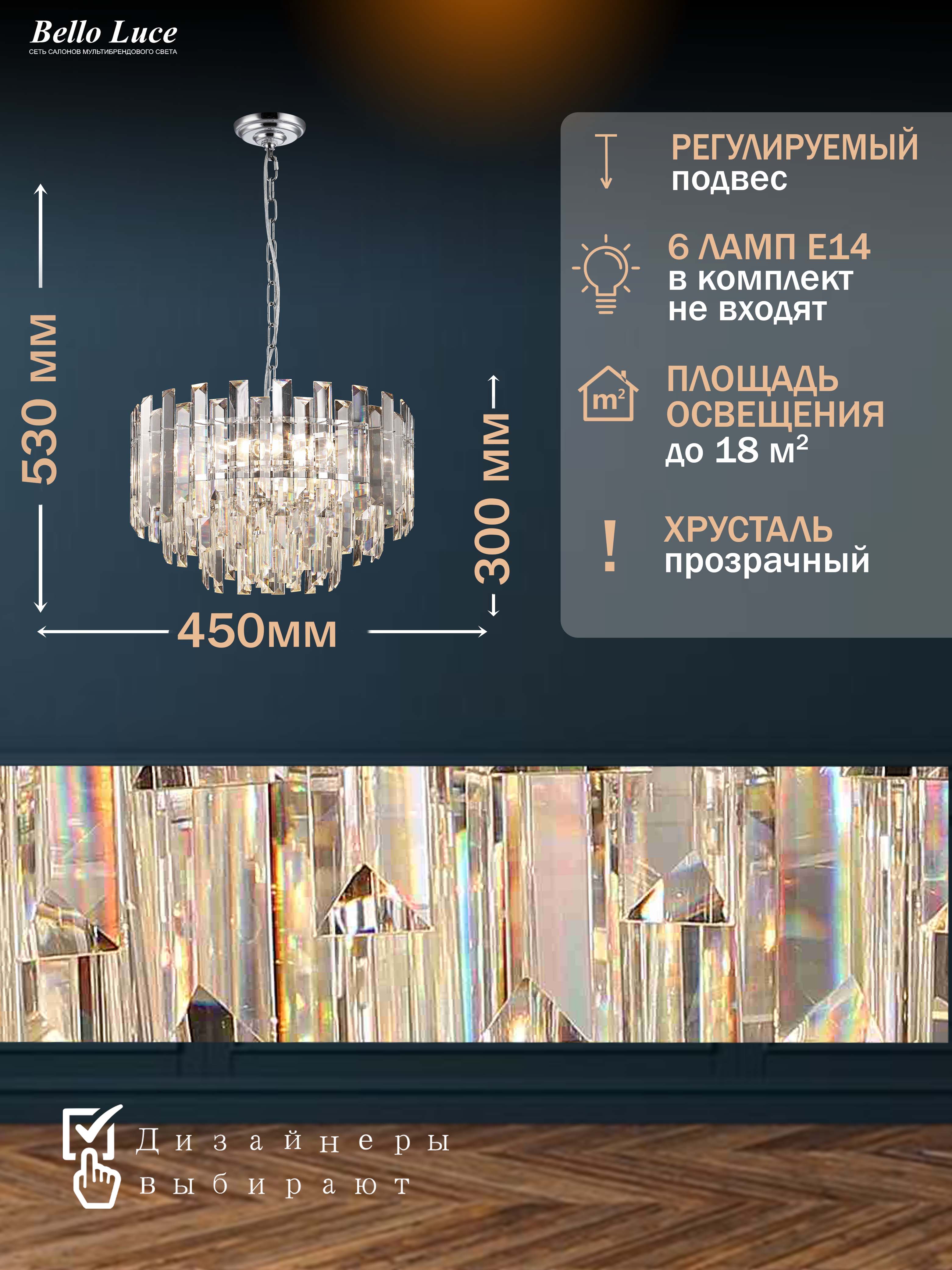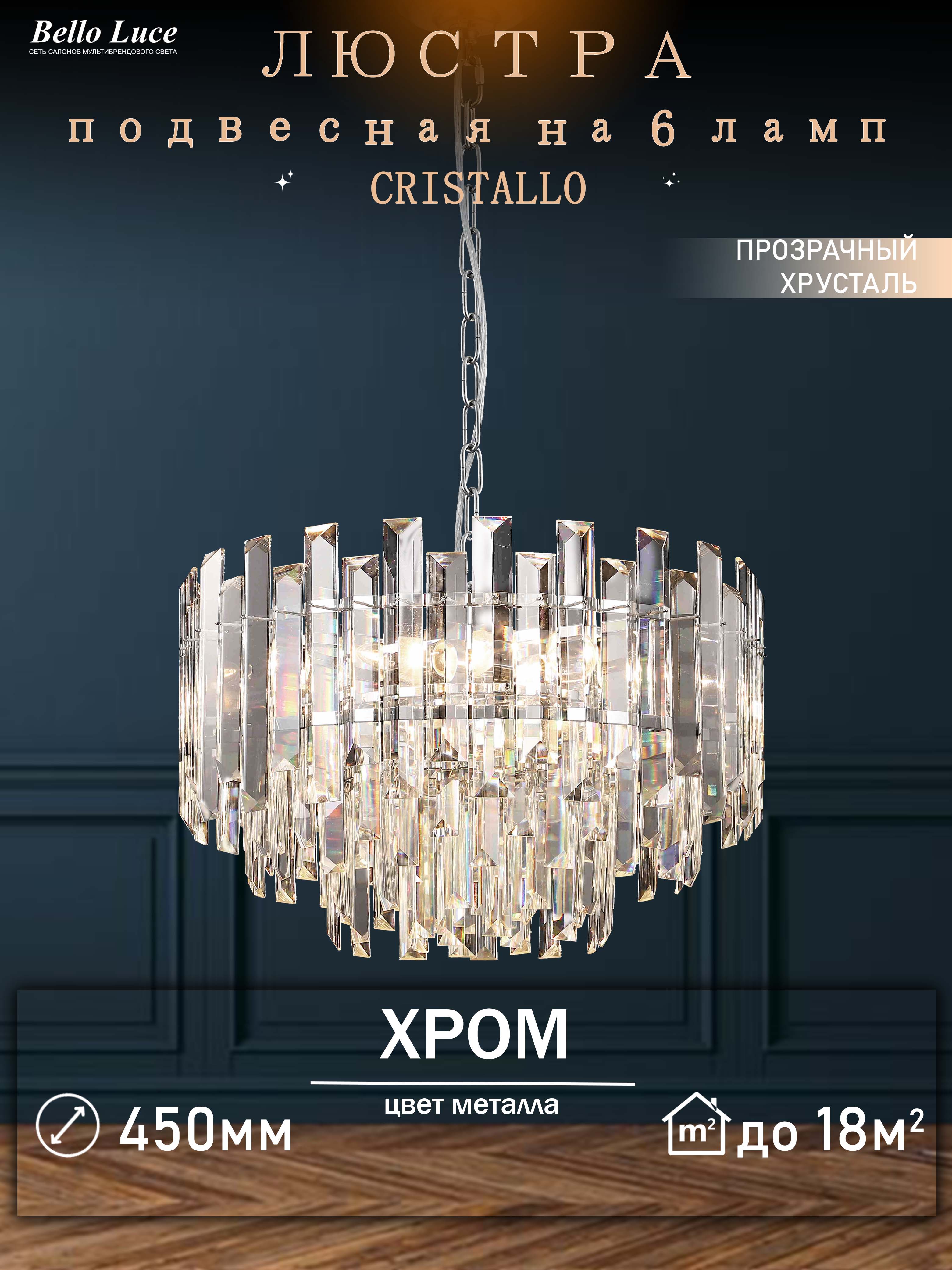 Компания Мегасвет предлагает вам оптом и в розницу Люстра Cristallo хрустальная хром подвесная с прозрачными хрустальными подвесками на 6 ламп E14, регулировка по высоте по цене 18850 рублей.